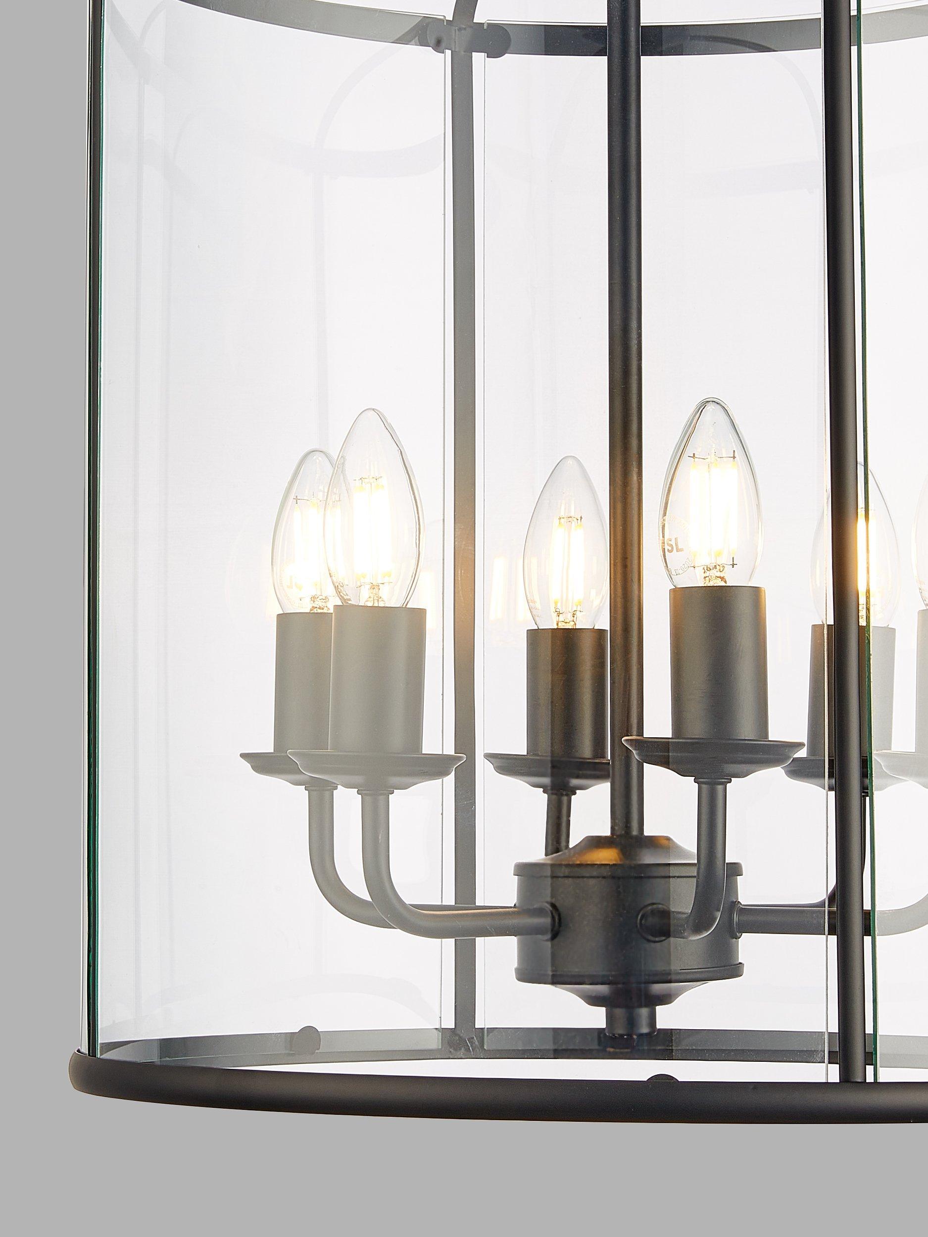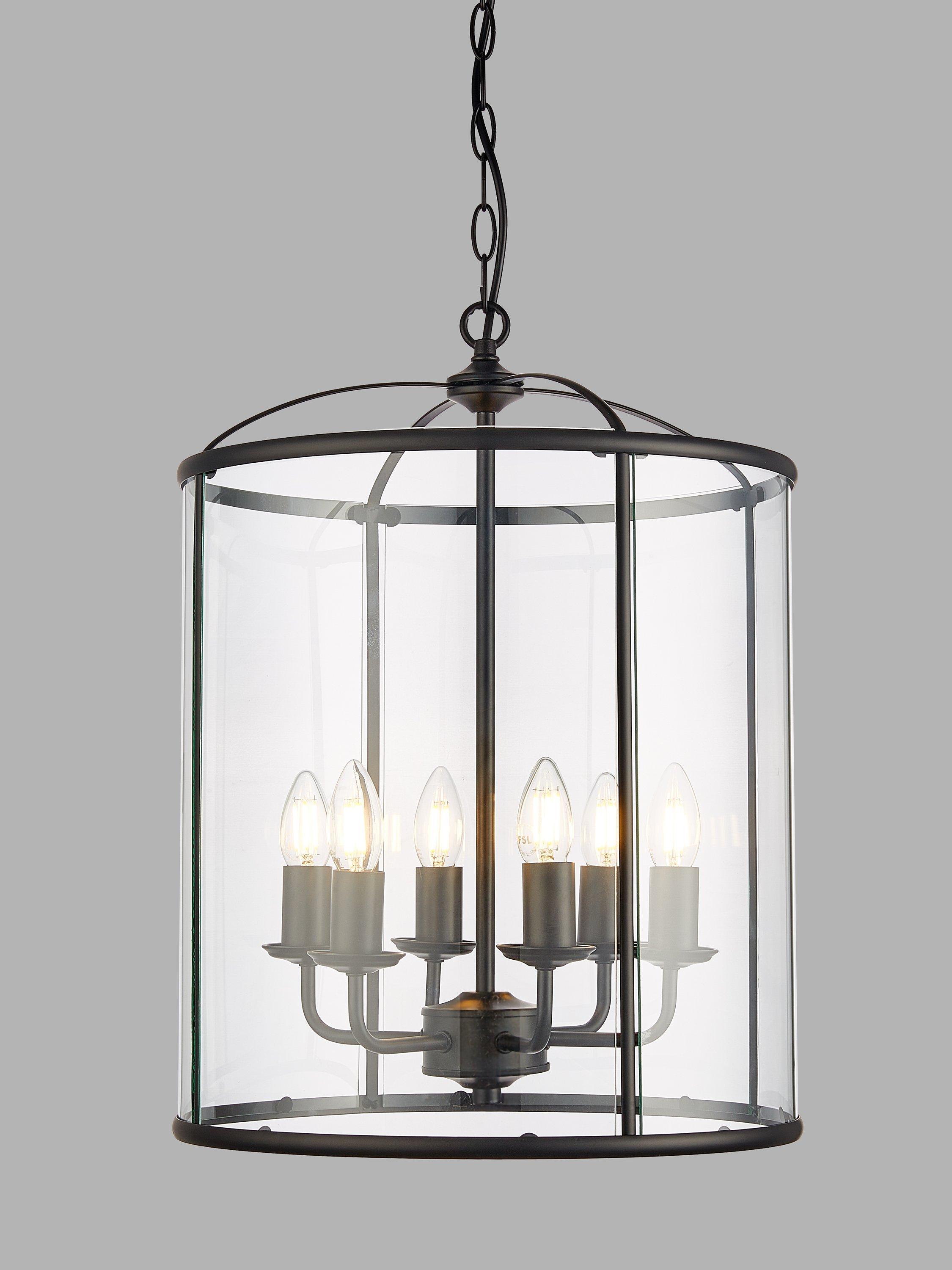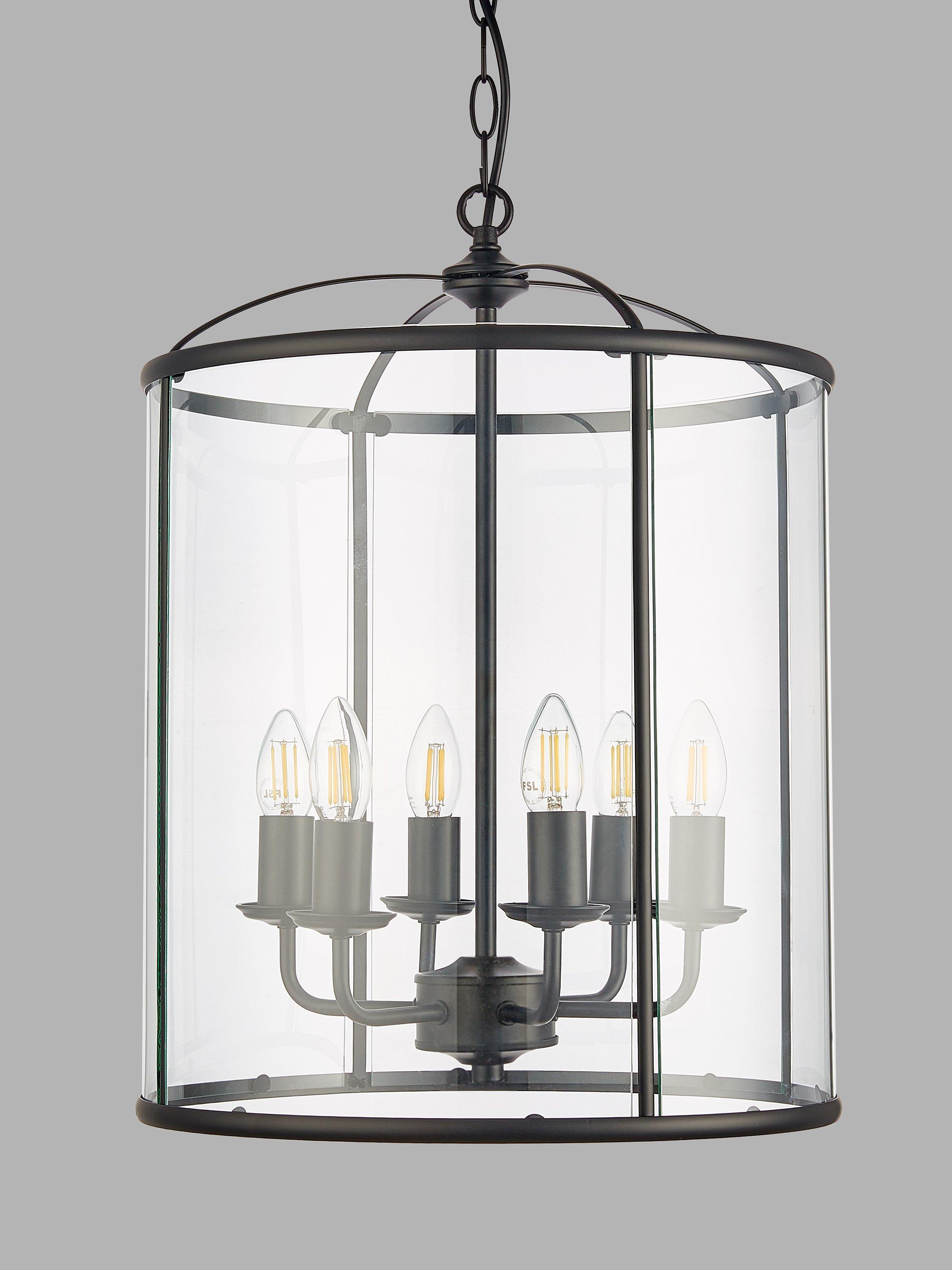 This Victorian style lantern has a decorated hanging assembly that hooks through the main body of the lantern.