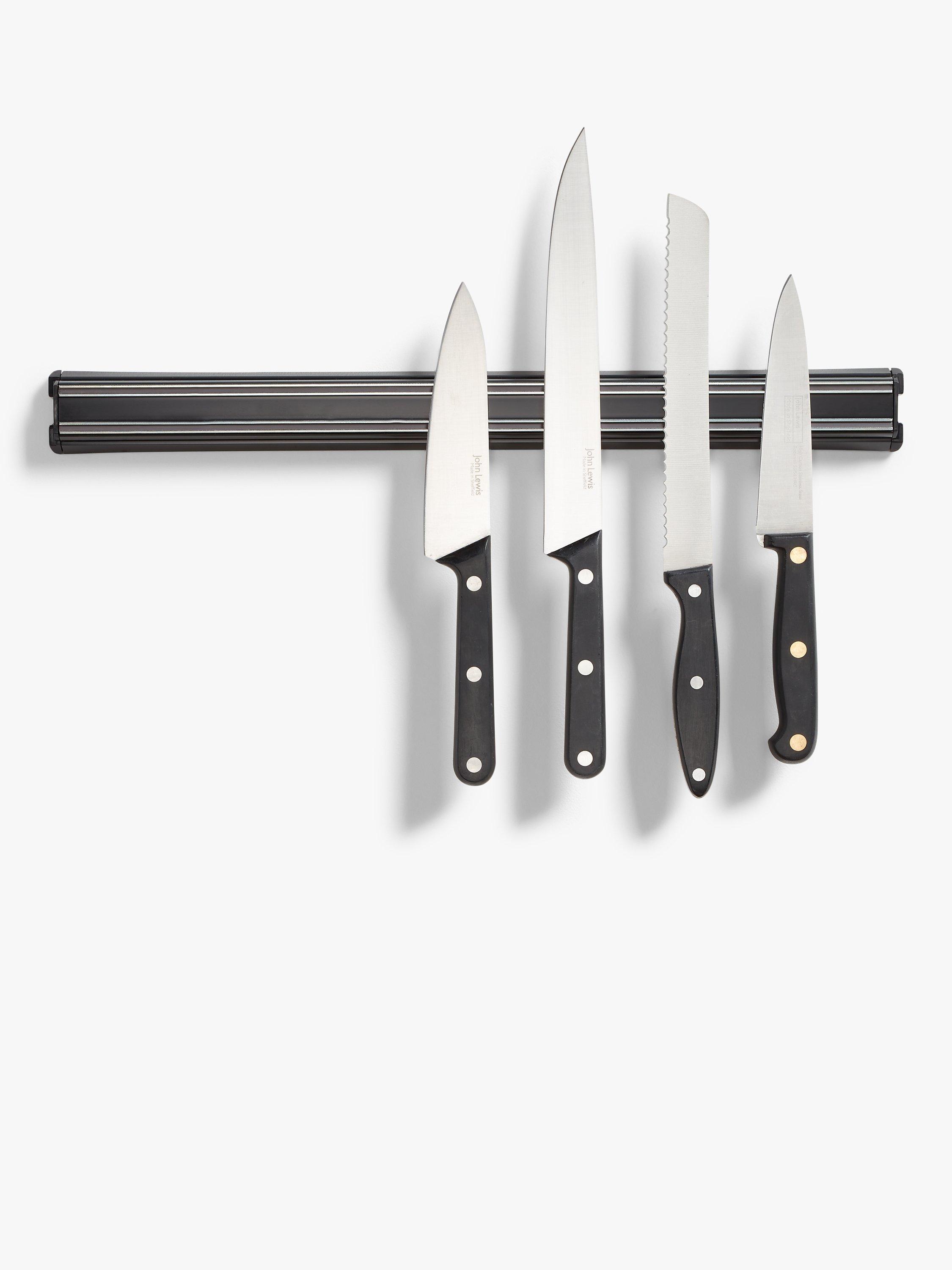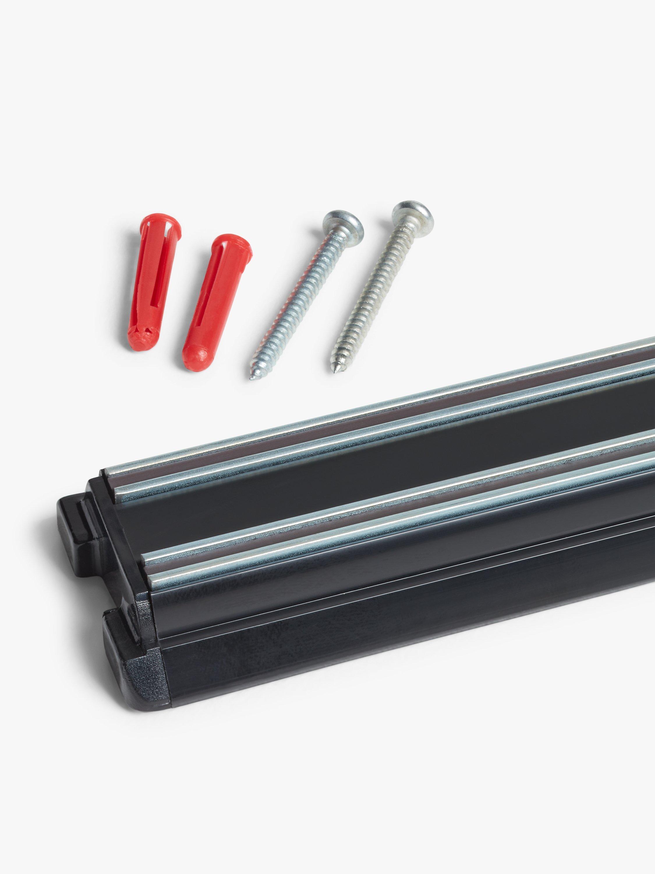 Keeping all your kitchen knives to hand, this rack is magnetised to securely hold them in place. Wall mount it at a safe height, accessible to adults only. Made in the UK, it comes with fixings for easy wall-mounting and can hold several knives.