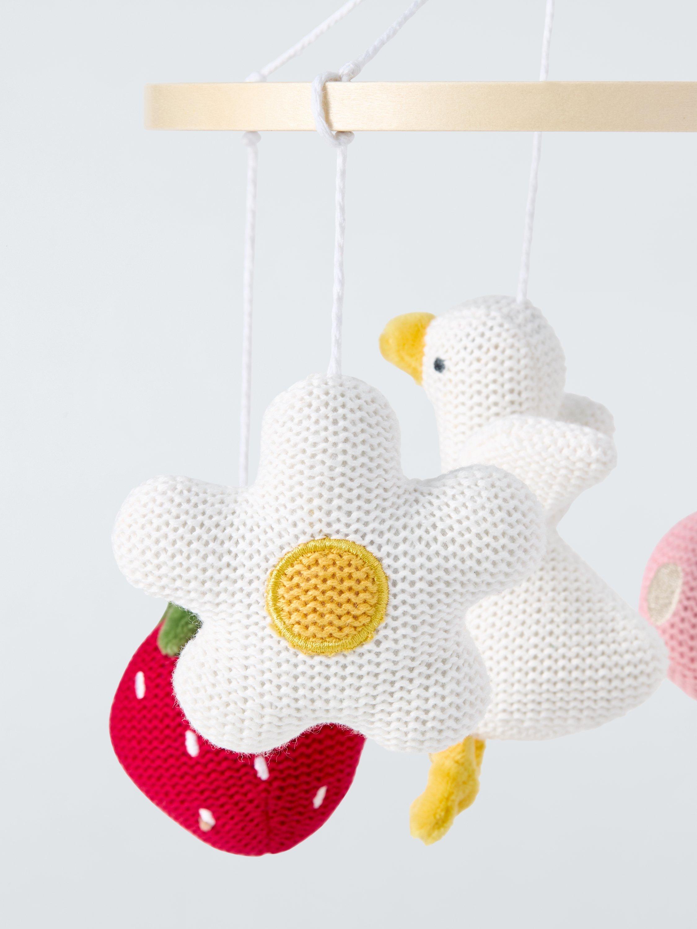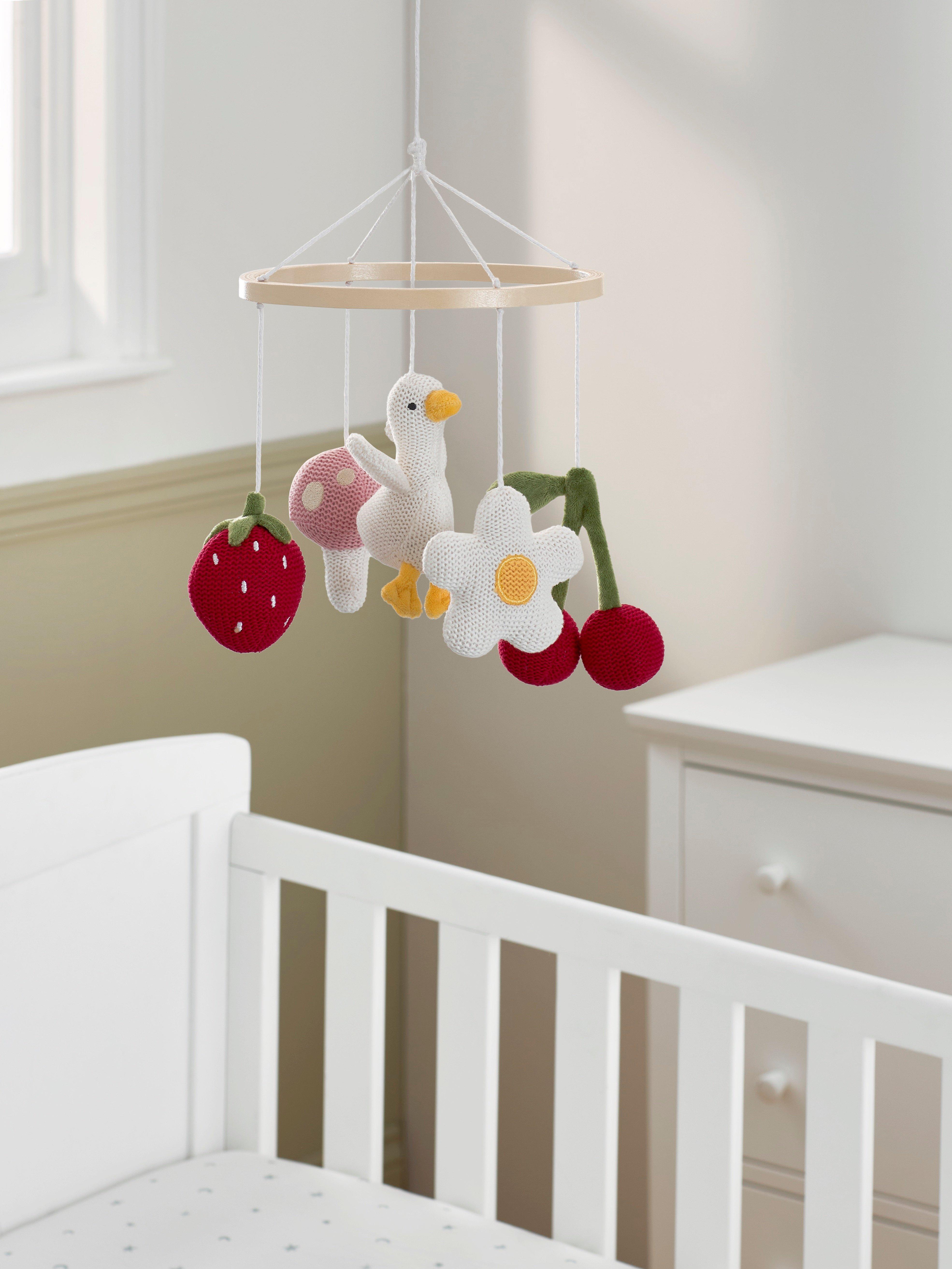 The assortment of knitted characters and motifs on our Wander Goose mobile will capture baby's attention, encouraging visual tracking and focus during quiet moments.