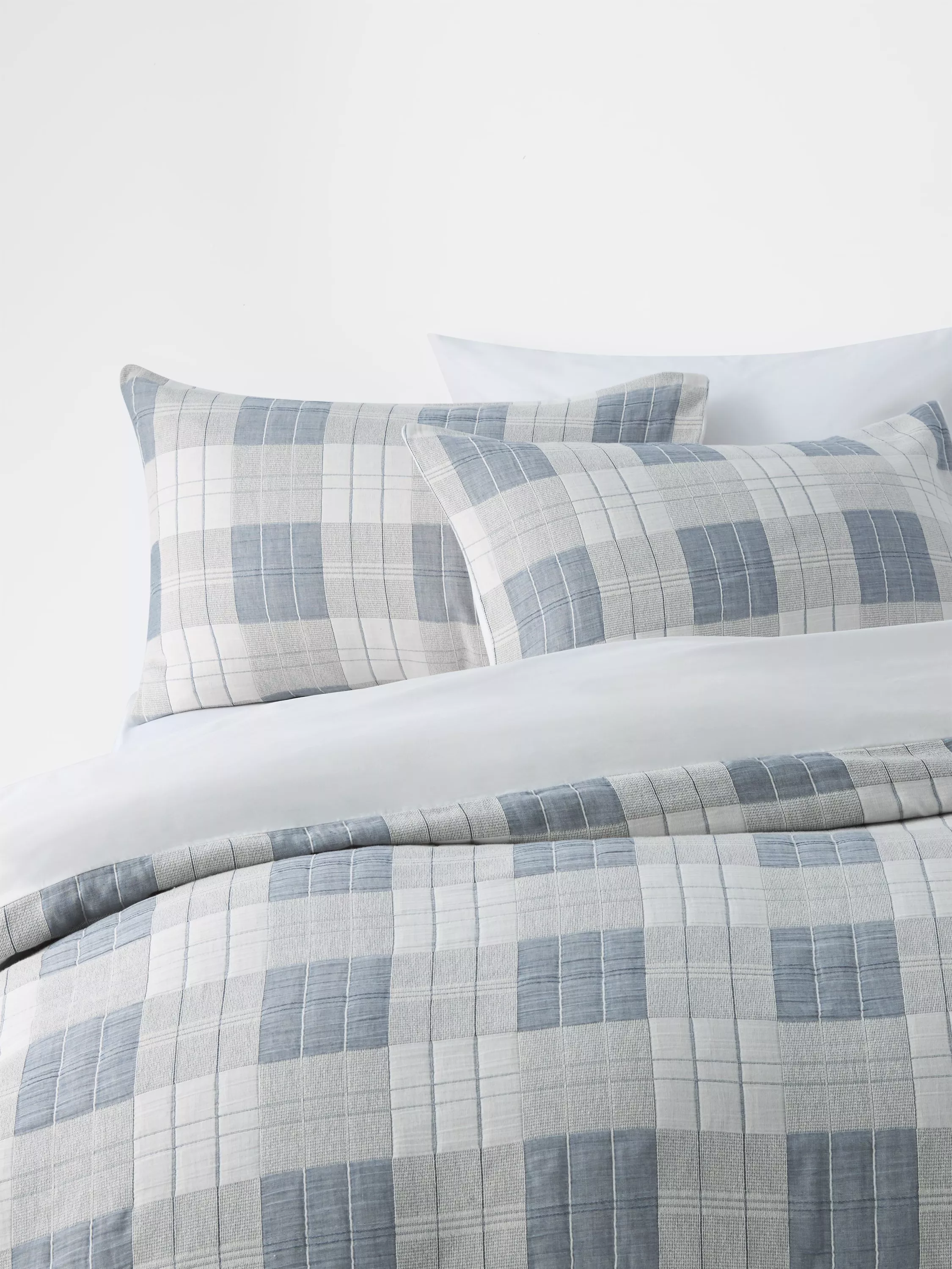 A check jacquard design, woven on gauze fabric to give a lightly quilted look.