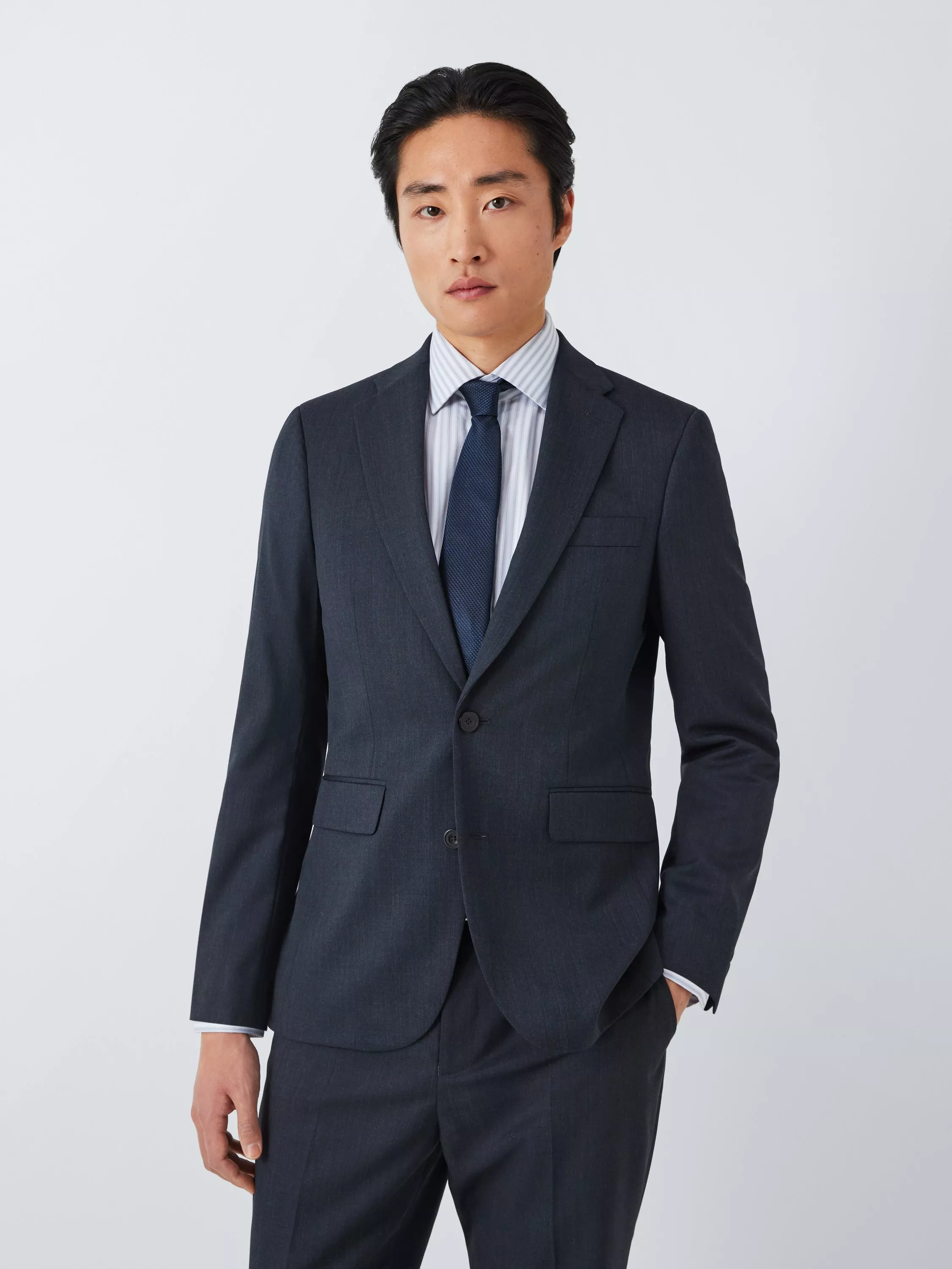 It's finished with mock horn buttons and double vents at the back. Tailored to our regular fit specification, this jacket has a softer shoulder line and is tapered through the waist. Inside, the jacket is straight-faced and fully lined and completed with two internal pockets.