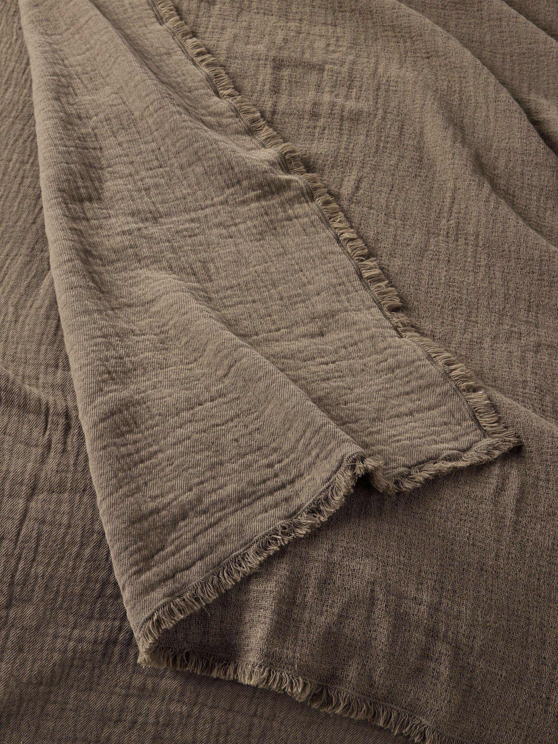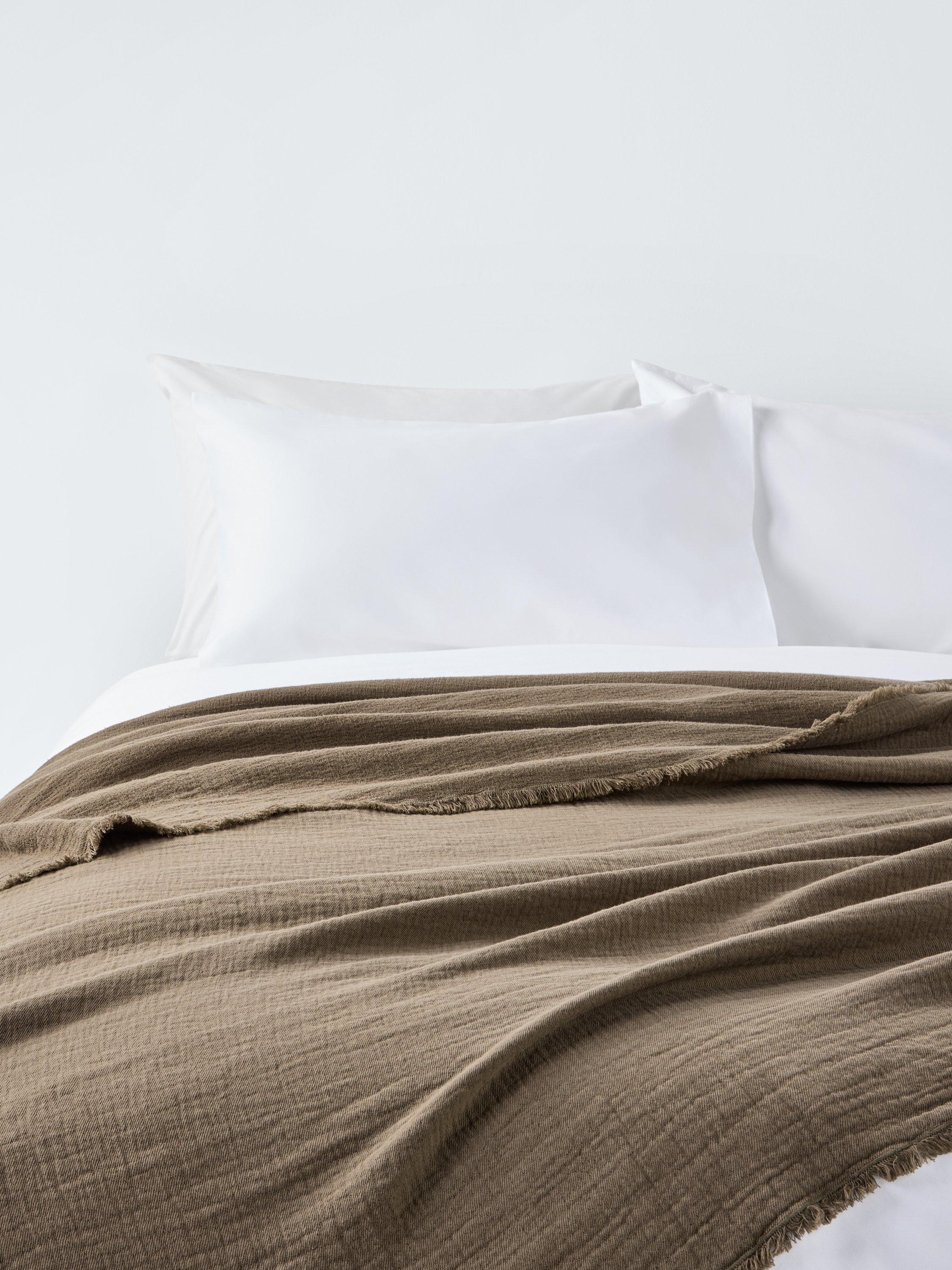 This large yet lightweight bedspread has a crinkled texture for a relaxed look that's great for throwing over duvets and sheets. Back in the factory, we've garment washed and dyed the pure cotton bedspread at the same time to create the pleasingly textured finish. The short fringe adds a softer texture to the edges. Throw it on the bed and you're done.