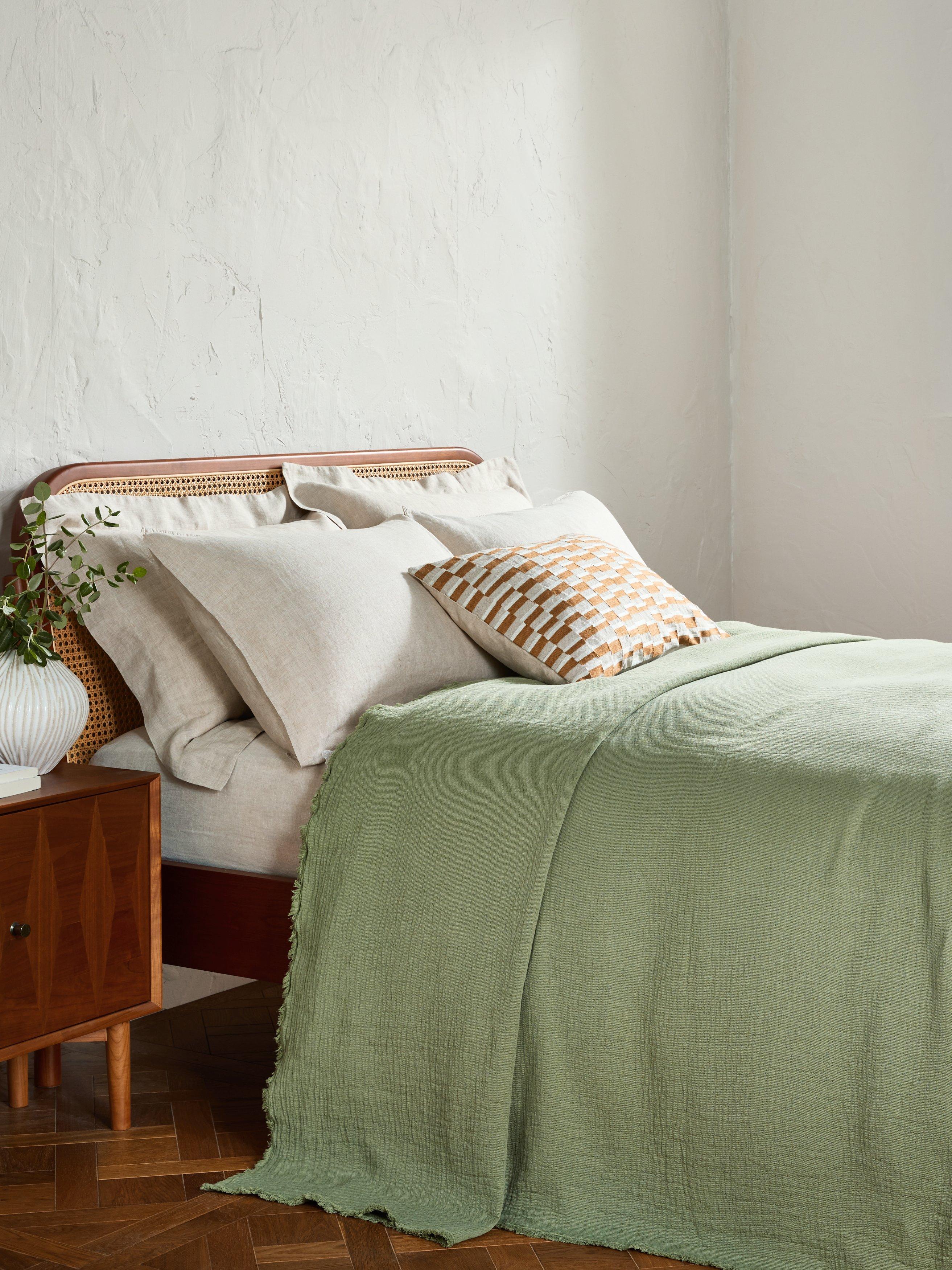 This large yet lightweight bedspread has a crinkled texture for a relaxed look that's great for throwing over duvets and sheets. Back in the factory, we've garment washed and dyed the pure cotton bedspread at the same time to create the pleasingly textured finish. The short fringe adds a softer texture to the edges. Throw it on the bed and you're done.