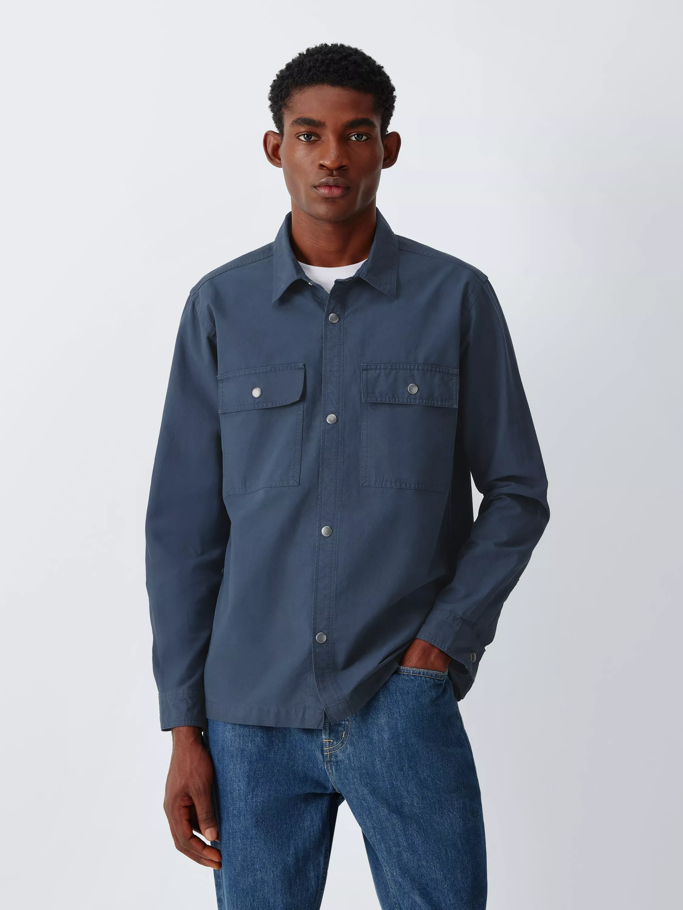 John LewisWashed Cotton Overshirt, Navy