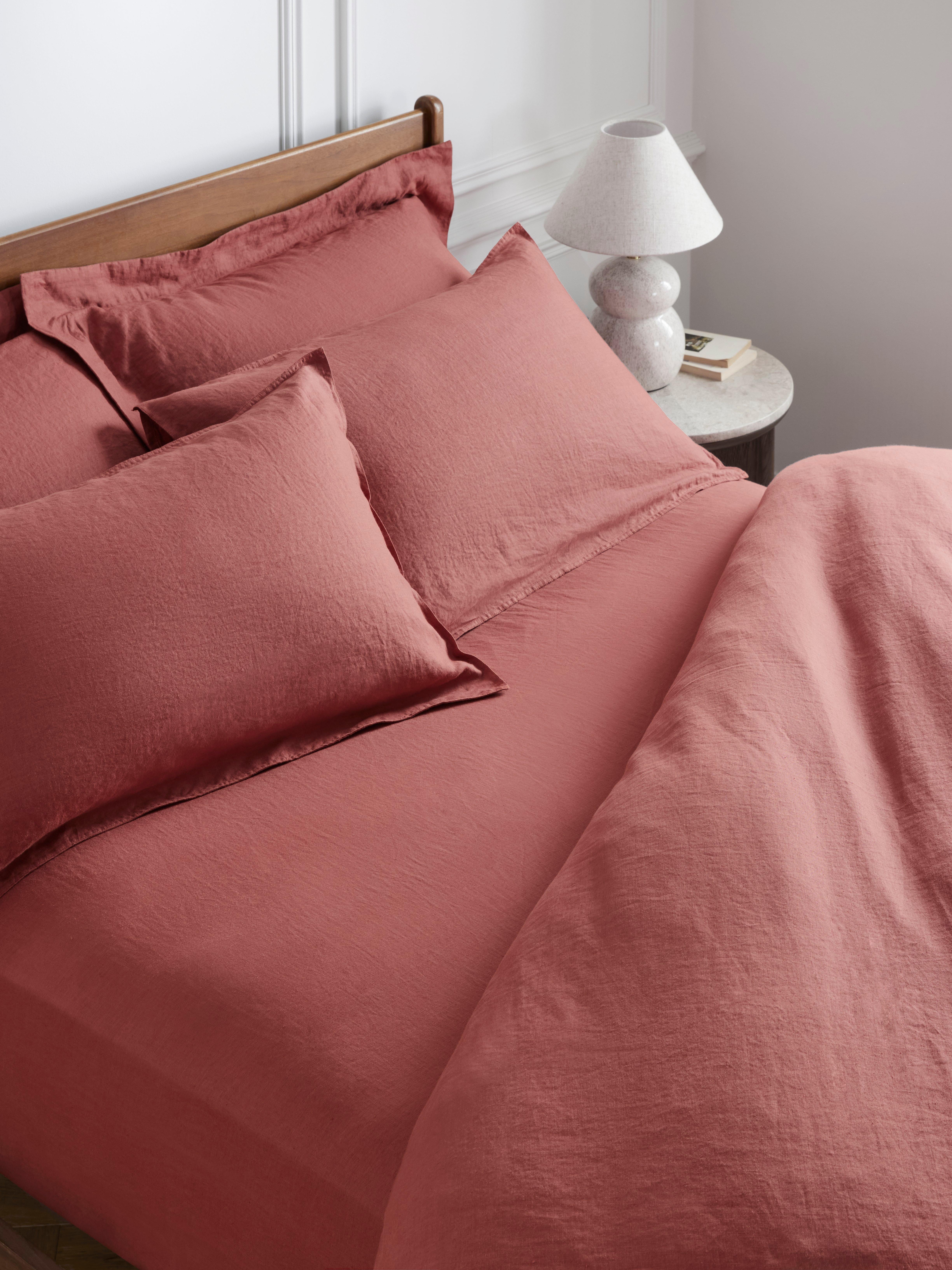 Linen’s long fibres are strong and durable, creating naturally breathable fabric to help keep you cool and comfy while you sleep. The texture and finish also age well, becoming softer over time.