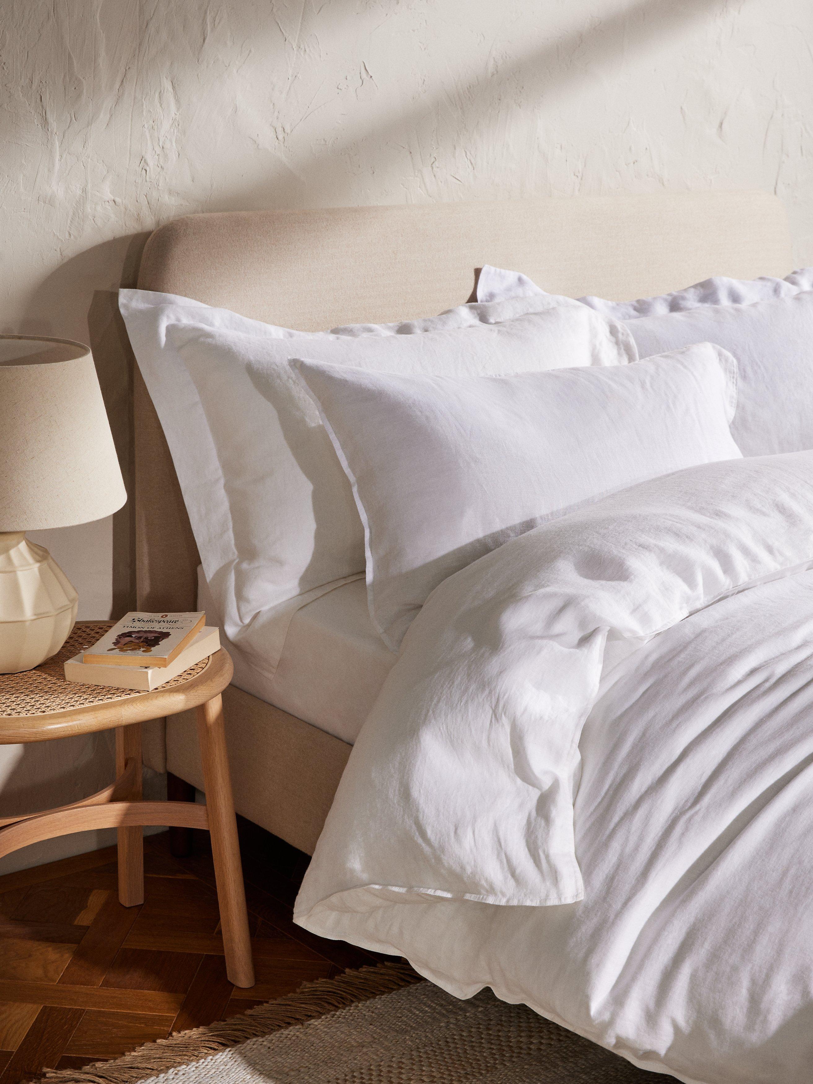 Linen’s long fibres are strong and durable, creating naturally breathable fabric to help keep you cool and comfy while you sleep. The texture and finish also age well, becoming softer over time.