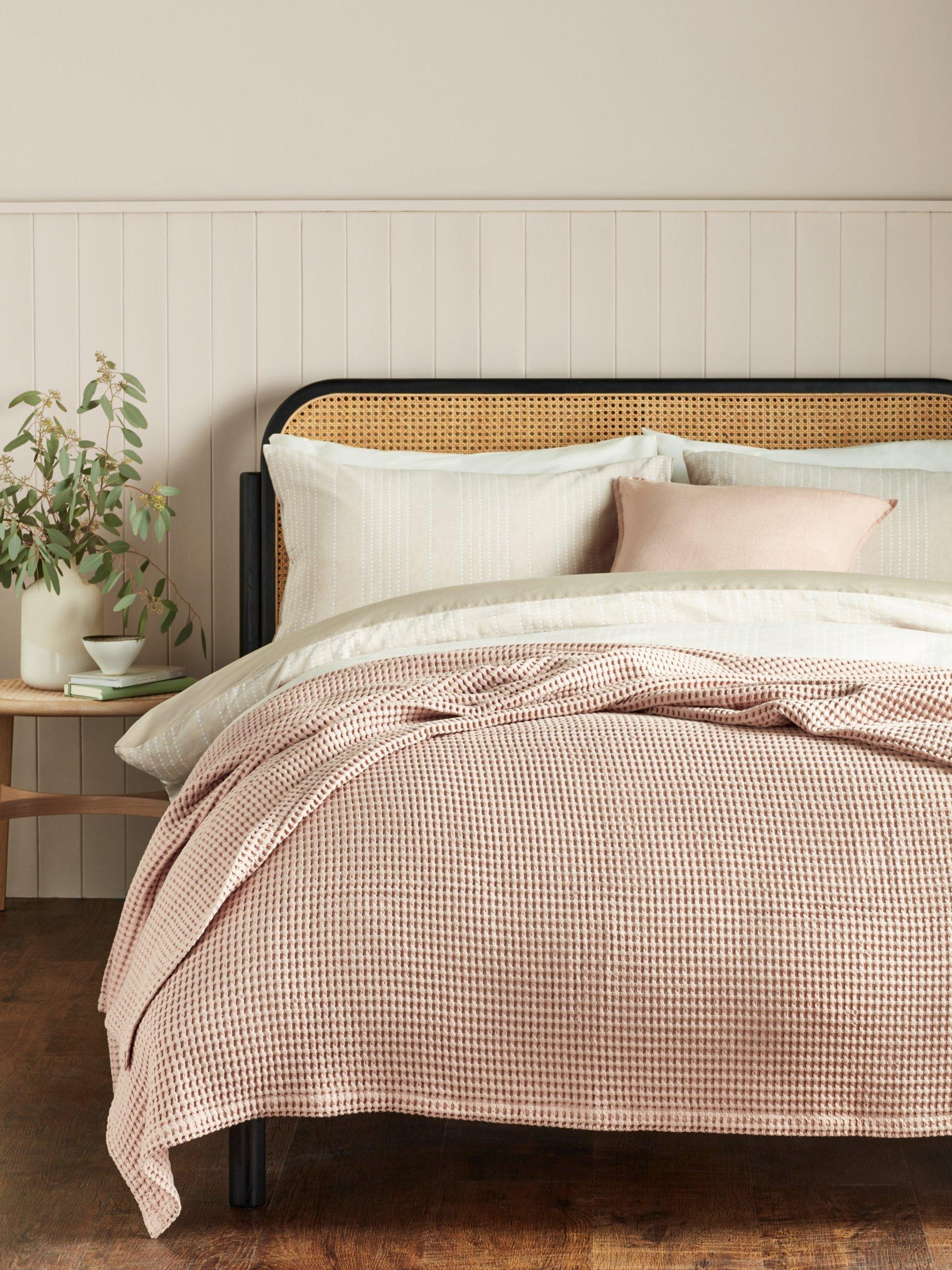 Simple and elegant, this lightweight waffle bedspread has a washed finish that's the perfect choice for use during summer months.