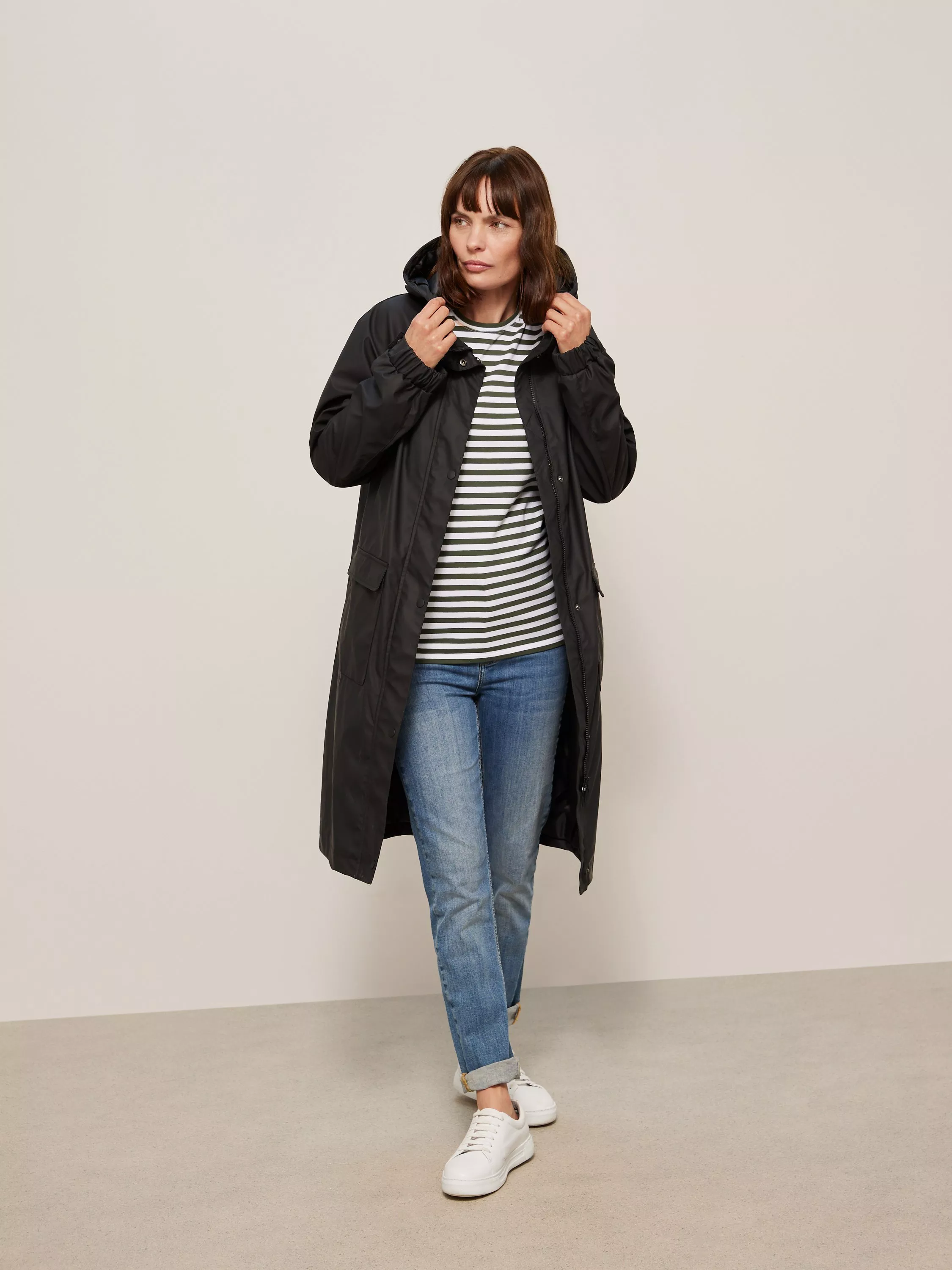 Offering a grown-up take on the classic waterproof raincoat, we've re-worked our classic mac to be your trusty friend through those in-between months. Hooded for added coverage and framed by elasticated cuffs for a secure fit, we've added flap pockets at the side to help keep loose essentials close throughout the day.