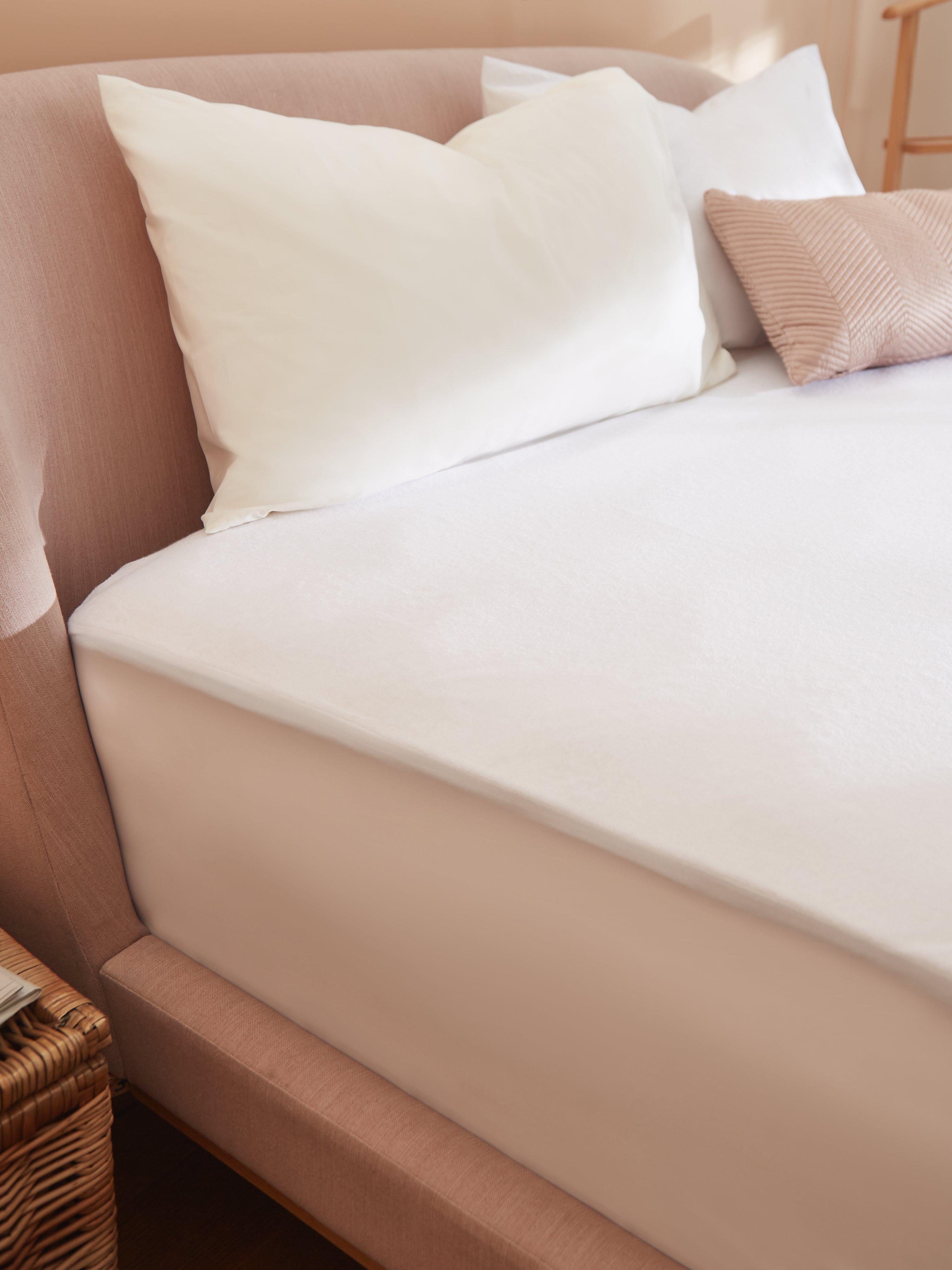 This Micro-Fresh-treated protector combines cotton terry towelling with a polyurethane reverse. The Micro-Fresh technology helps to keep bedding fresher for longer. The active ingredients in Micro-Fresh inhibit the spread and growth of bacteria by up to 99.99% and remain active wash after wash. It uses materials naturally occurring in our environment that are kind to human skin.