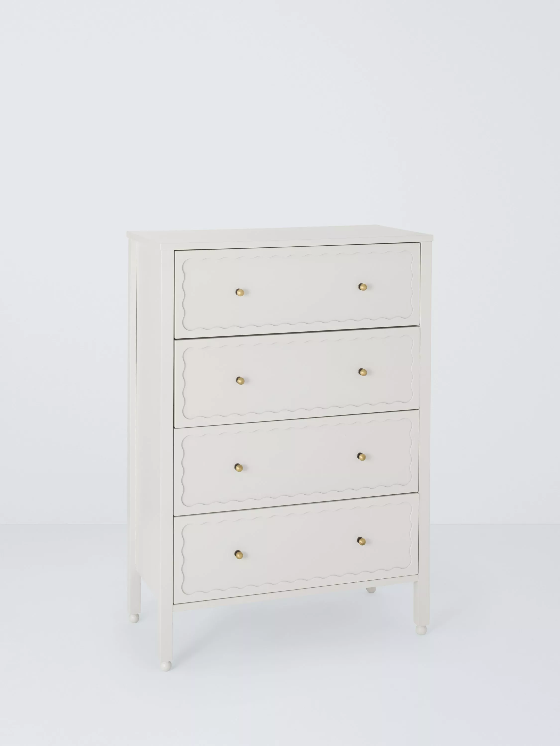 Transform your bedroom with furniture that's decorative and splashed with colour. This chest offers both, with four roomy drawers each accented with a sweet, scalloped inlay design, playful ball feet and a bold painted finish.