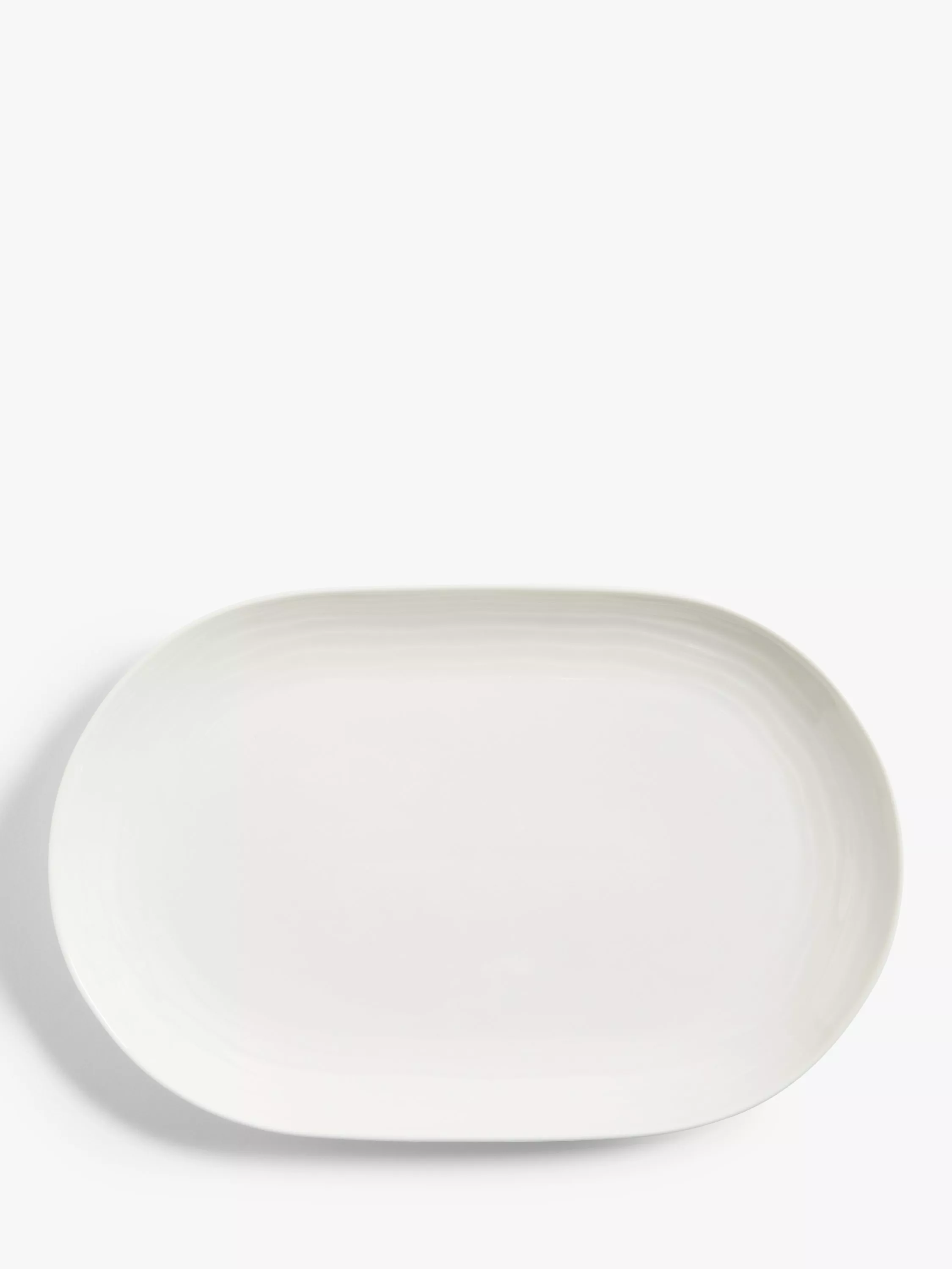 Wave tableware is made of fine china with a pattern from our in-house Design Studio, inspired by ripples left on the sand by waves. This oval-shaped Wave serving platter is dishwasher and microwave safe for everyday use.