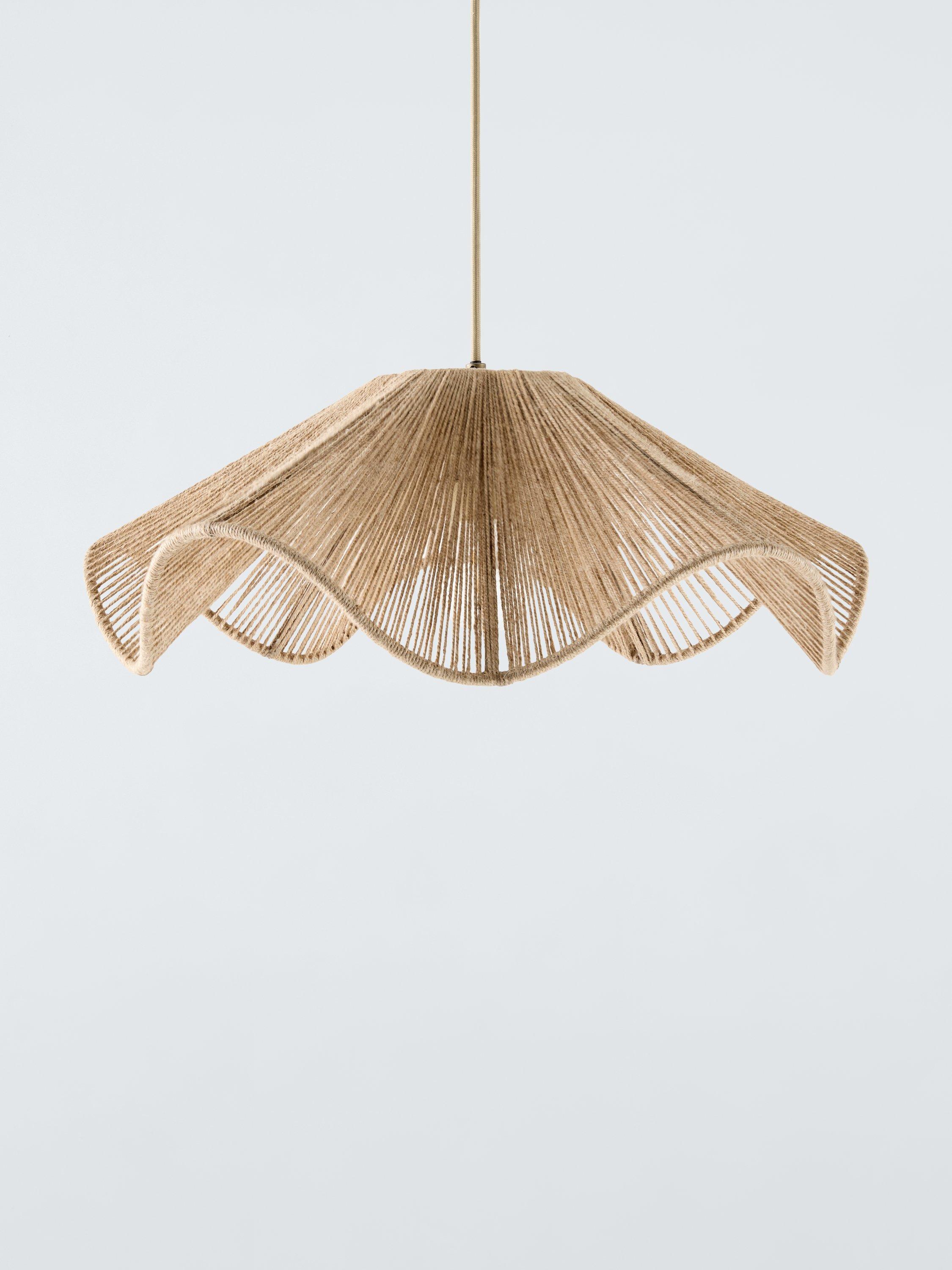 Handwoven by artisans, this lampshade is inspired by the movement of waves. Woven with a double layer of jute, this scalloped design adds a natural feel to a room.