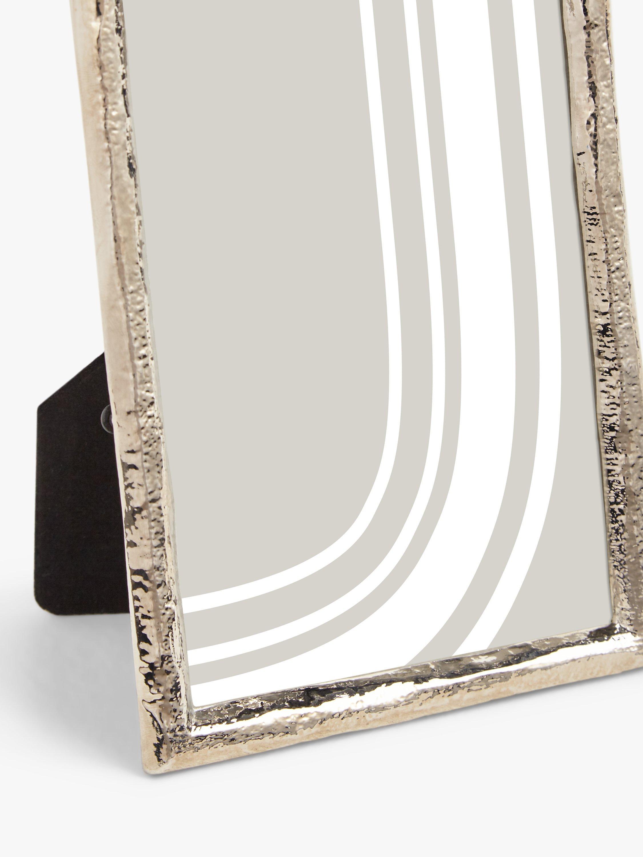 A rustic, antique-effect design, this freestanding photo frame has a metallic finish and slim profile.