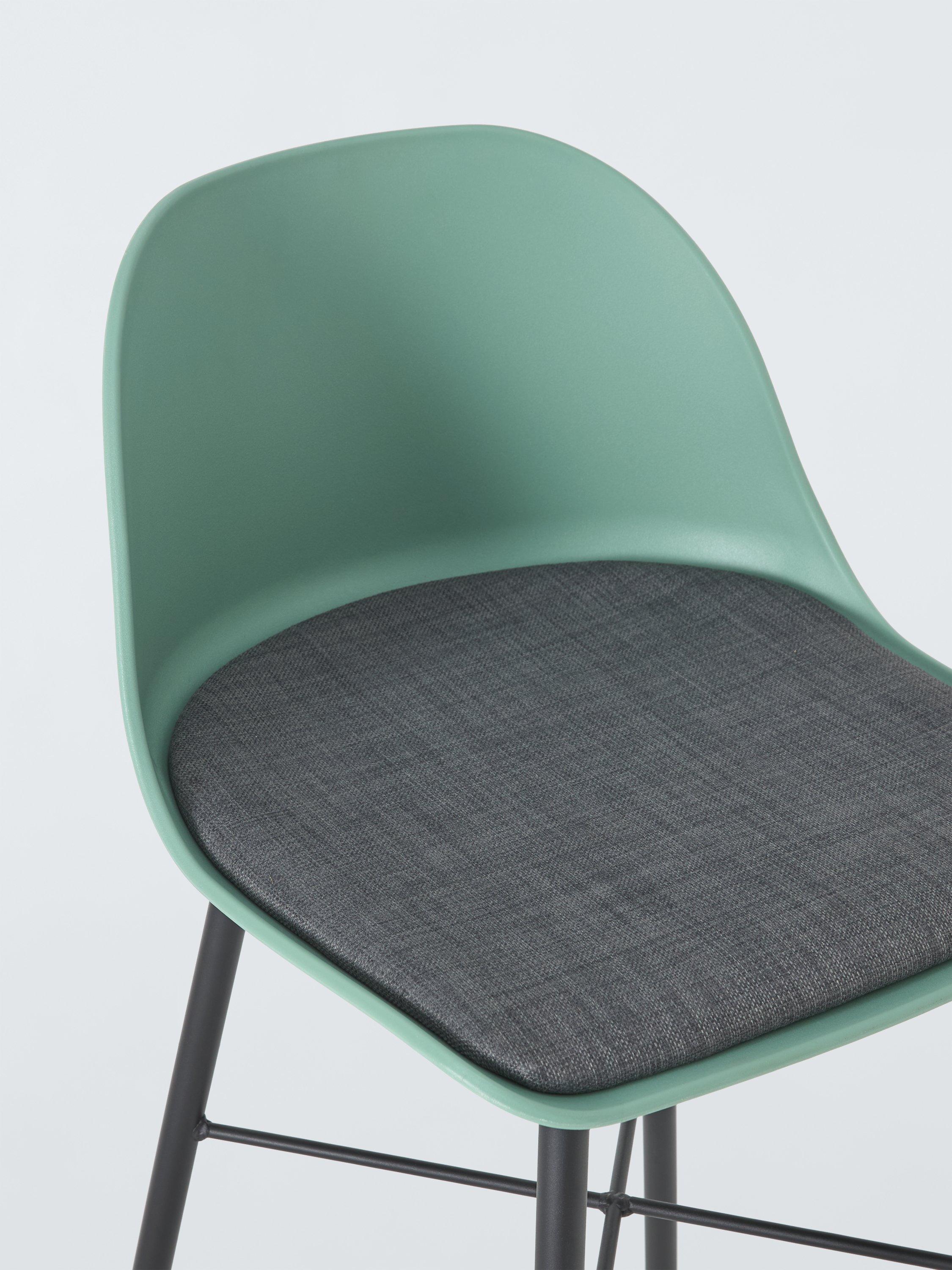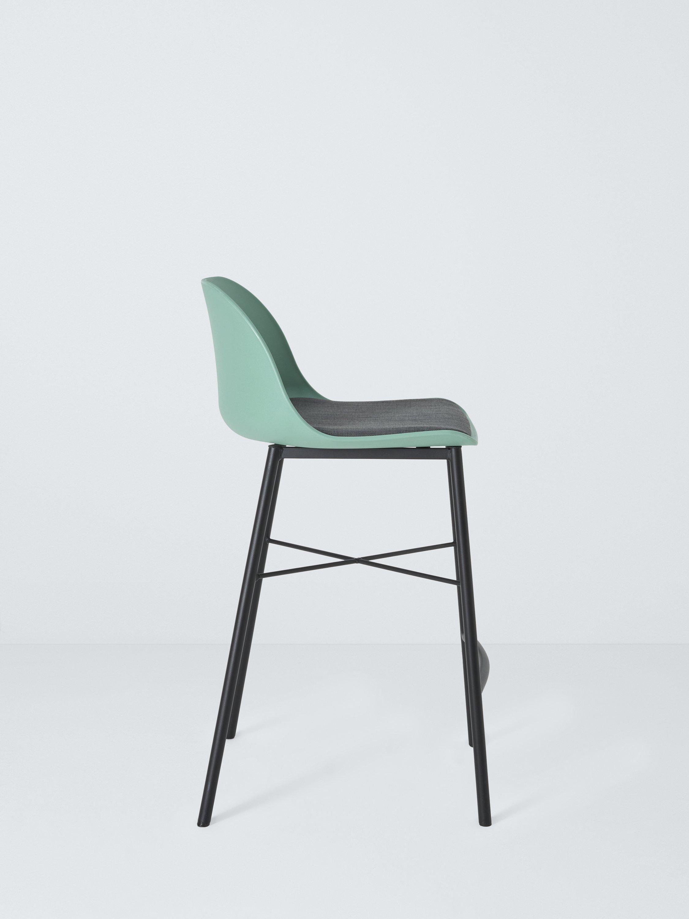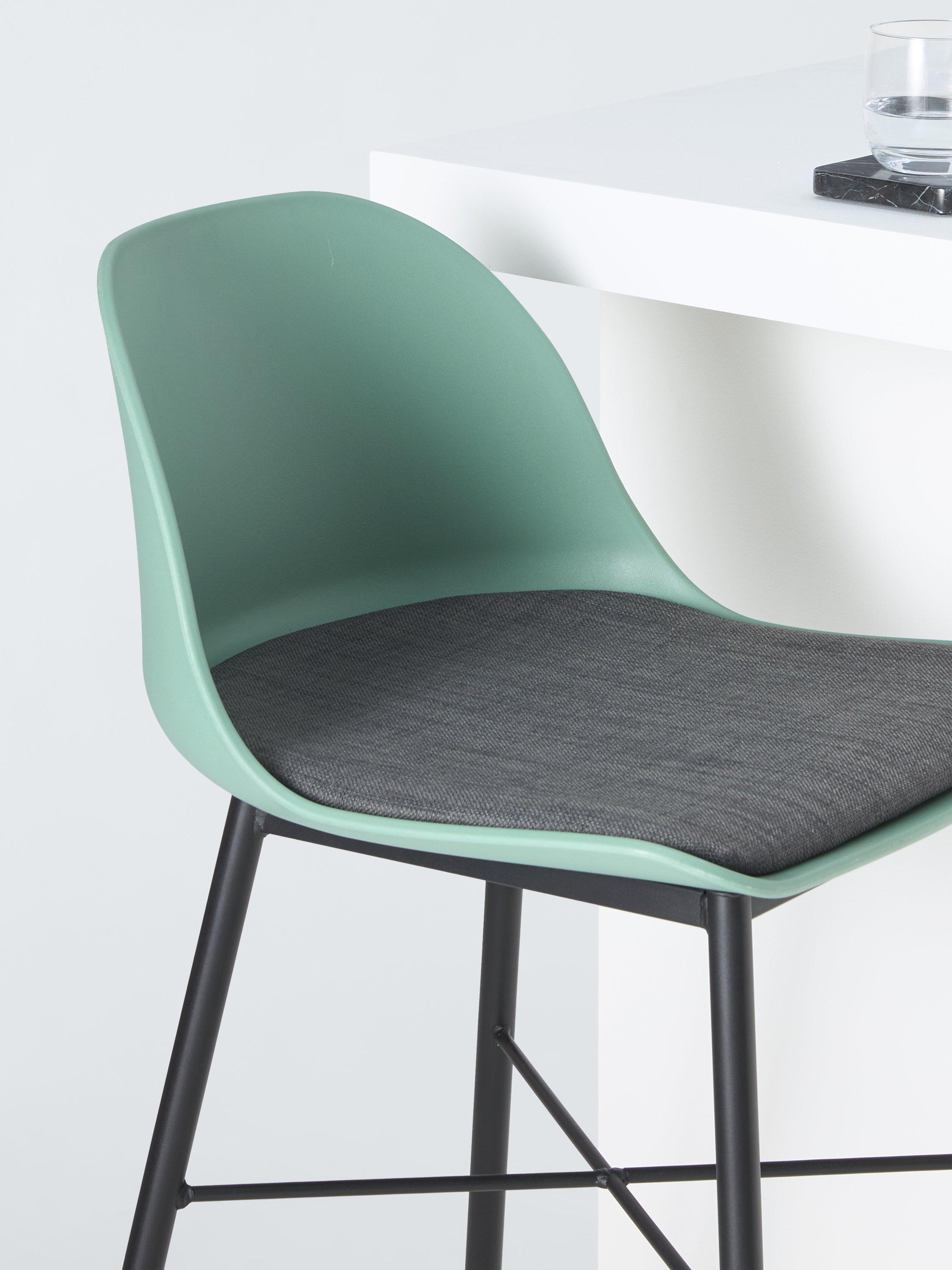 Our popular Whistler frame in the style of a bar stool. The seat is made from sturdy polypropylene with a well-padded, fixed fabric seat pad. Plus, thanks to the deep backrest, you no longer have to perch with bad posture at your breakfast bar, but can sit and dine in comfort. The welded metal frame provides reassuring durability and we've added plastic caps to the end of each leg to help prevent scratches or scuff marks on your floor. It's easy to assemble and ideal for busy households, as you can simply wipe each stool clean.
