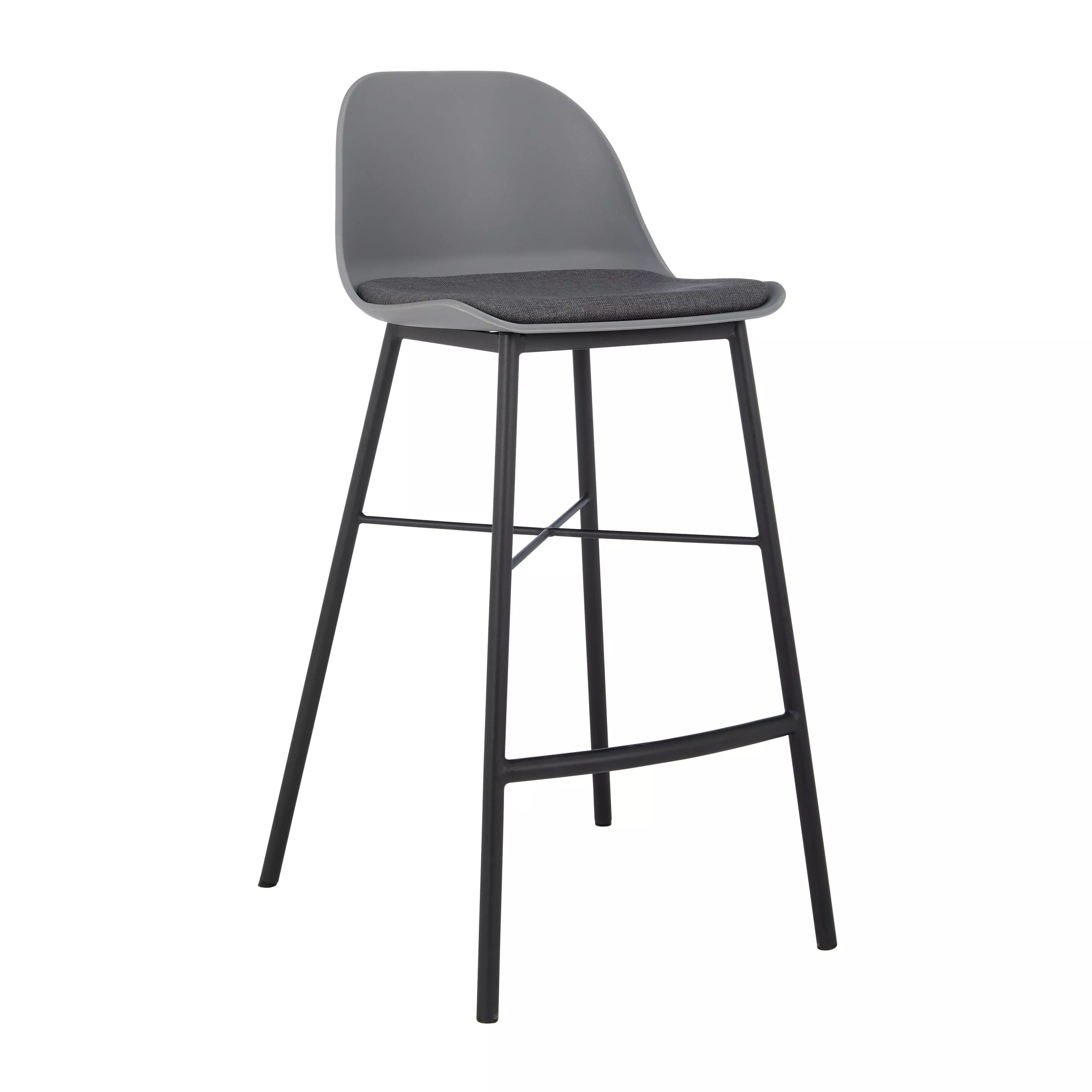 Our popular Whistler frame in the style of a bar stool. The seat is made from sturdy polypropylene with a well-padded, fixed fabric seat pad. Plus, thanks to the deep backrest, you no longer have to perch with bad posture at your breakfast bar, but can sit and dine in comfort. The welded metal frame provides reassuring durability and we've added plastic caps to the end of each leg to help prevent scratches or scuff marks on your floor. It's easy to assemble and ideal for busy households, as you can simply wipe each stool clean.