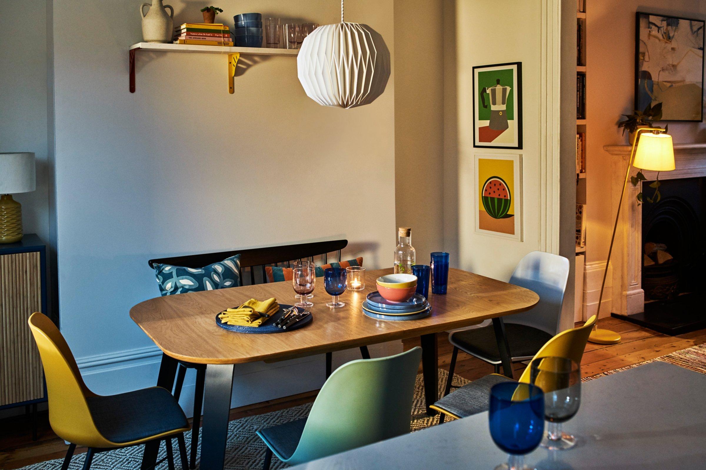 Our popular Whistler dining chairs will bring comfort and colour to your space, especially if you mix-and-match different shades around your dining table. The seat is made from sturdy polypropylene with a well-padded, fixed fabric seat pad. We've added plastic caps to the end of each leg to help prevent scratches or scuff marks on your floor, and the welded metal frame provides reassuring durability. You can simply wipe the chair down to keep it clean, so it's ideal for busy households. Plus, it's easy to assemble and ready to style at your table in no time.