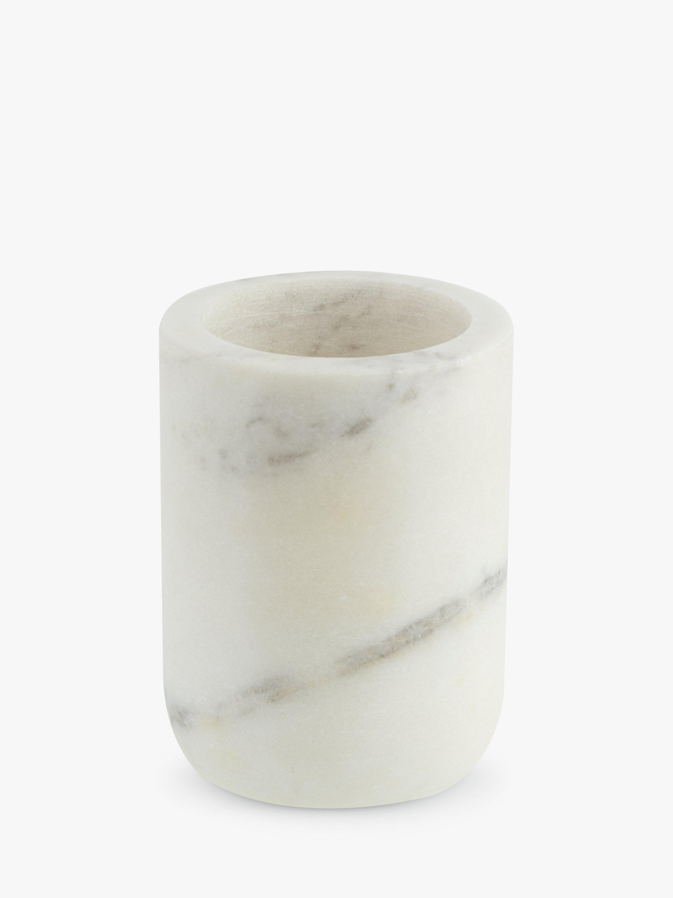Classic and elegant, white marble makes a luxurious statement when used in a bathroom and this tumbler is handcrafted by expert artisans in the Indian city of Agra.