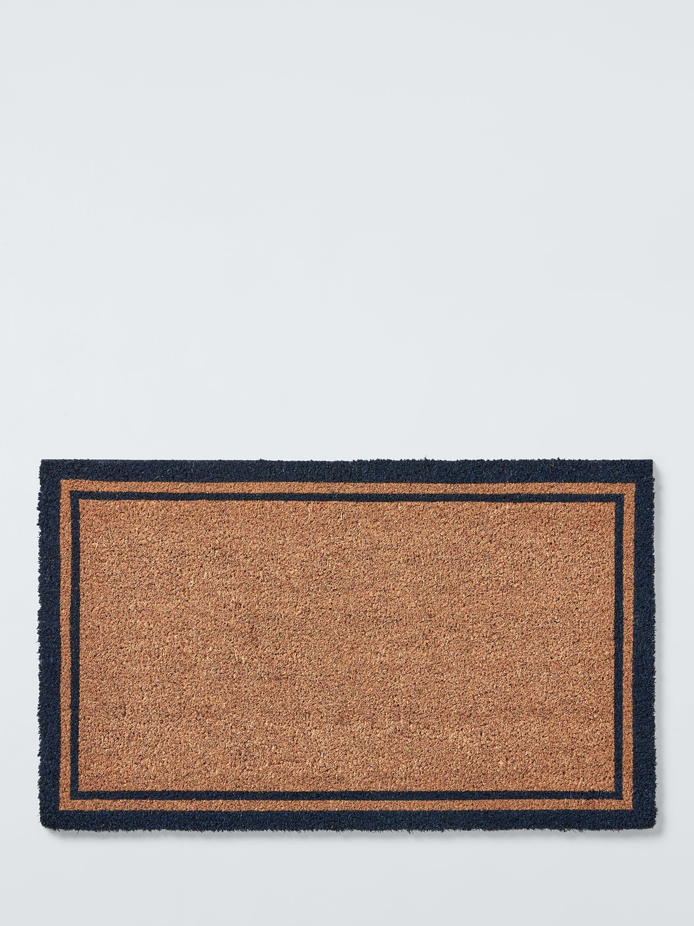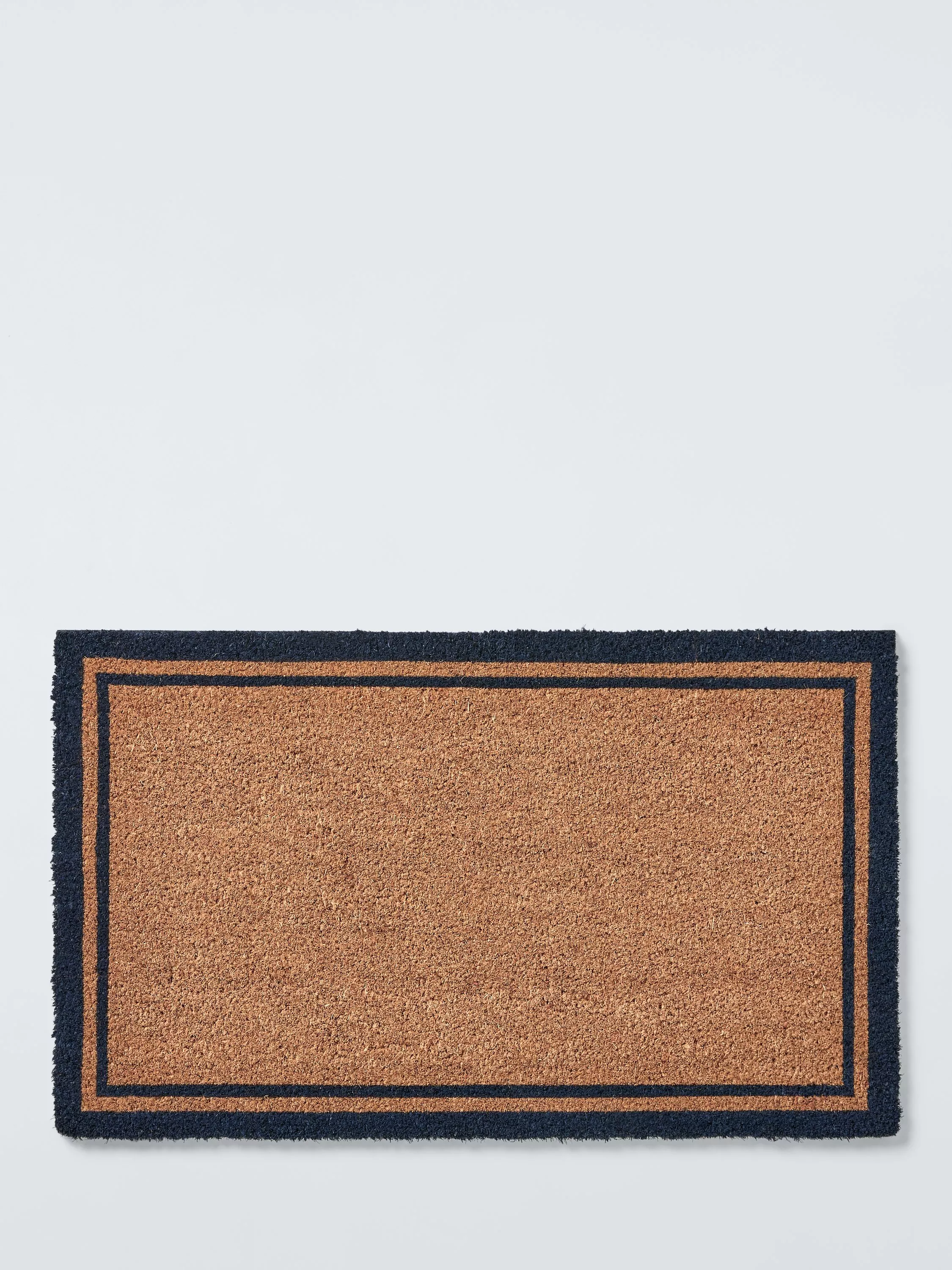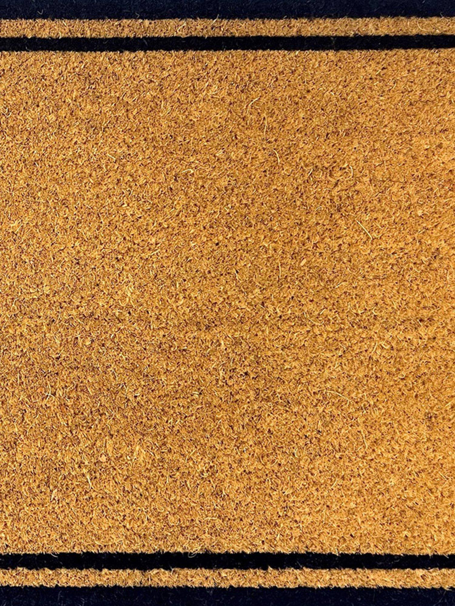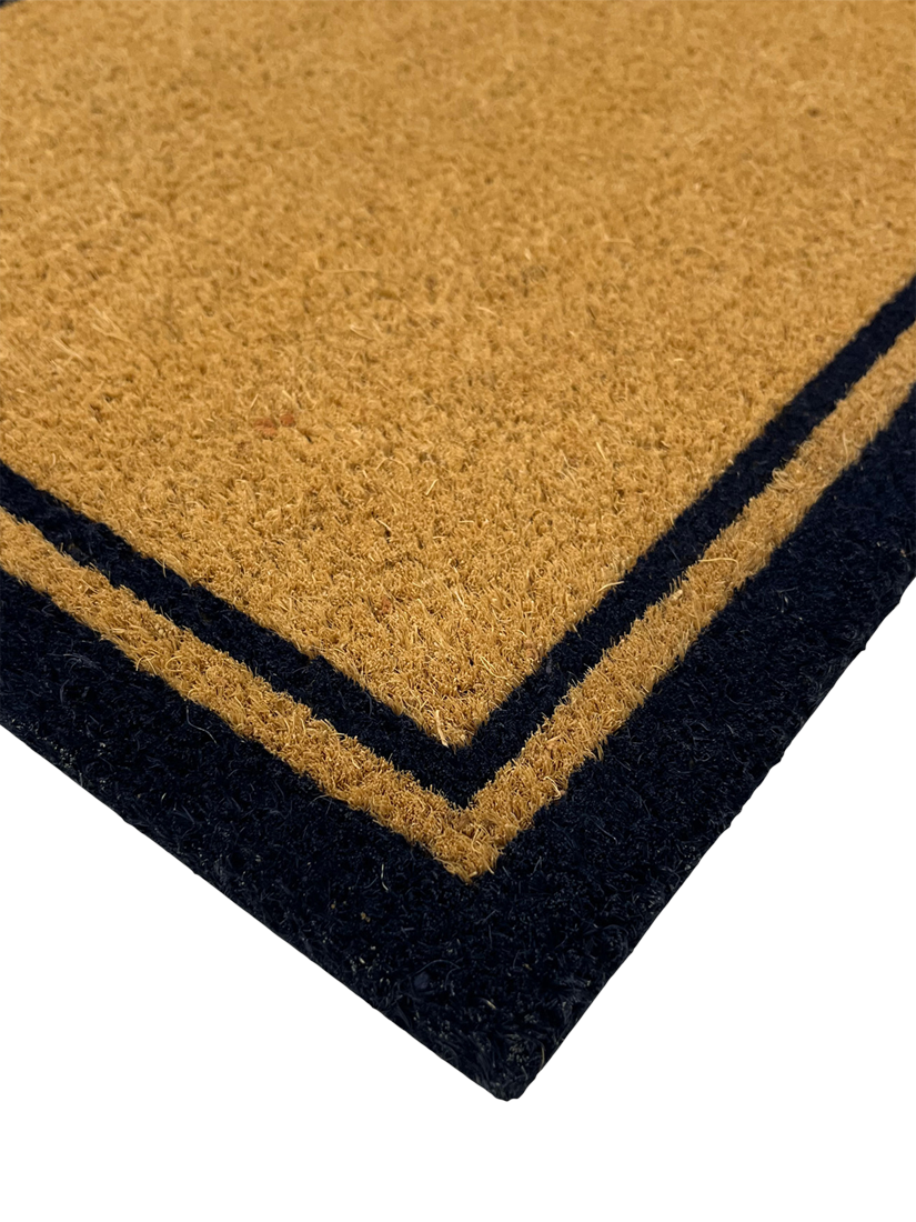 A classic coir door mat with a smart stripe border.