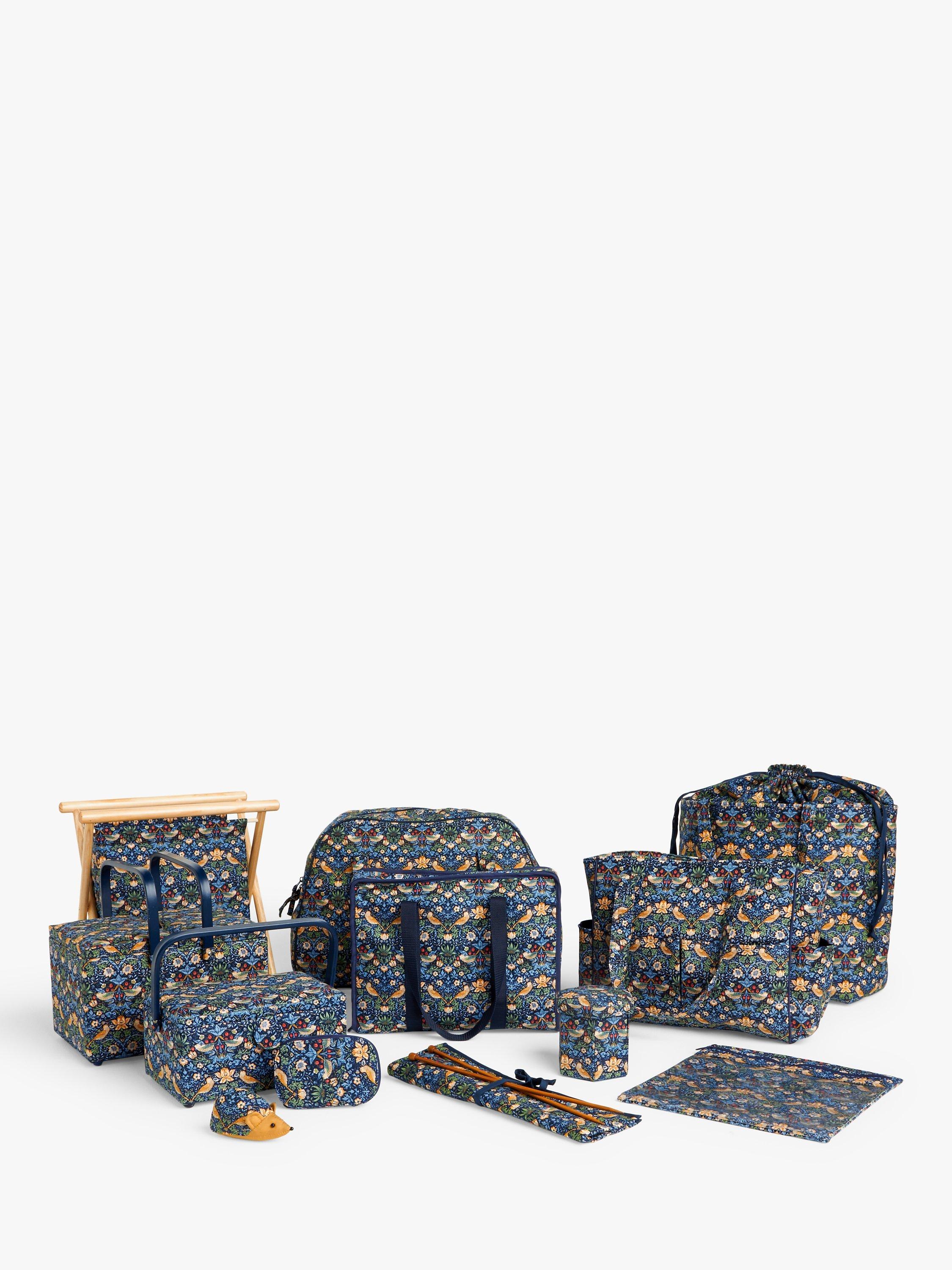 A cotton storage case containing 9 different storage compartments including a divided see-though window and elasticated storage for crochet needles or vanishing pens.
