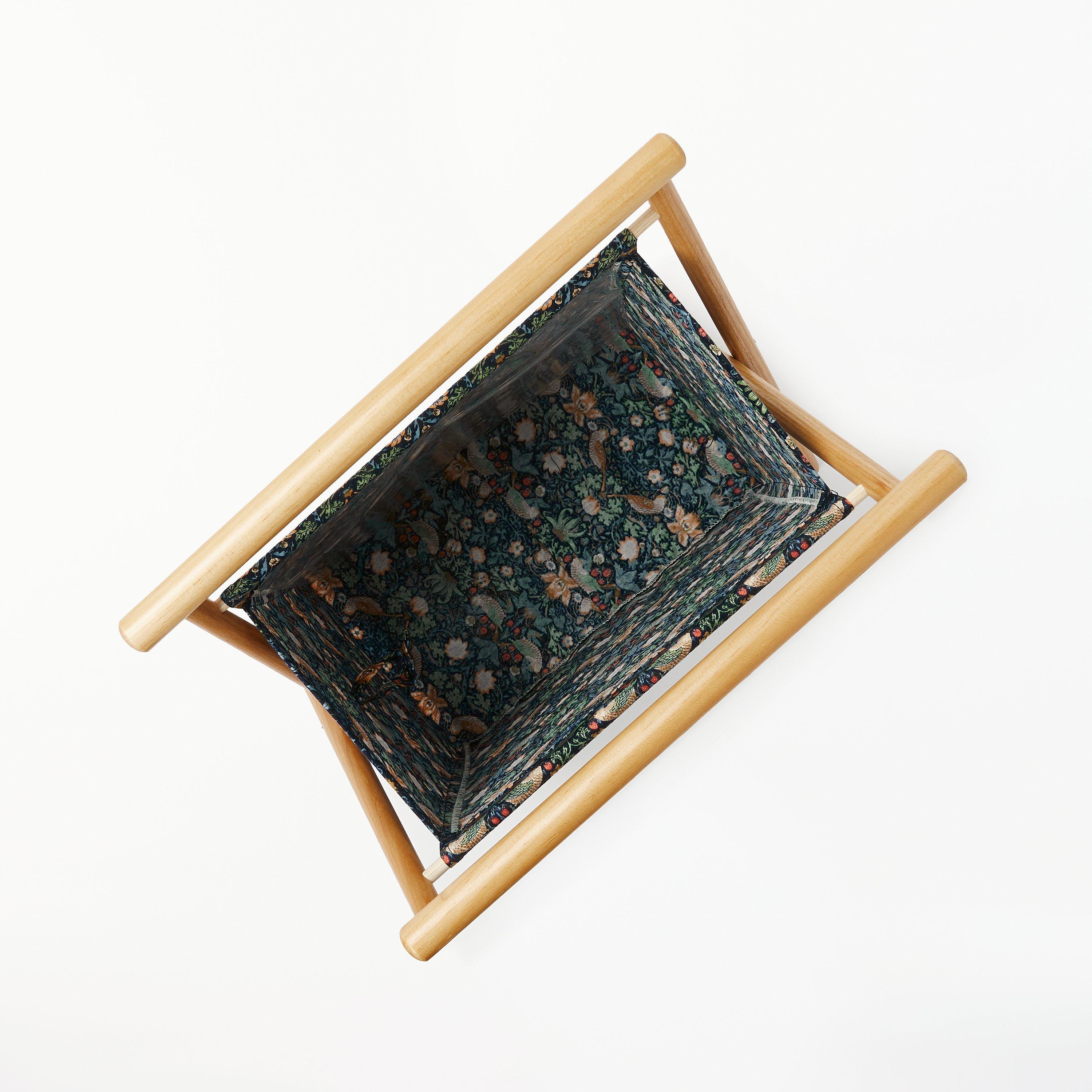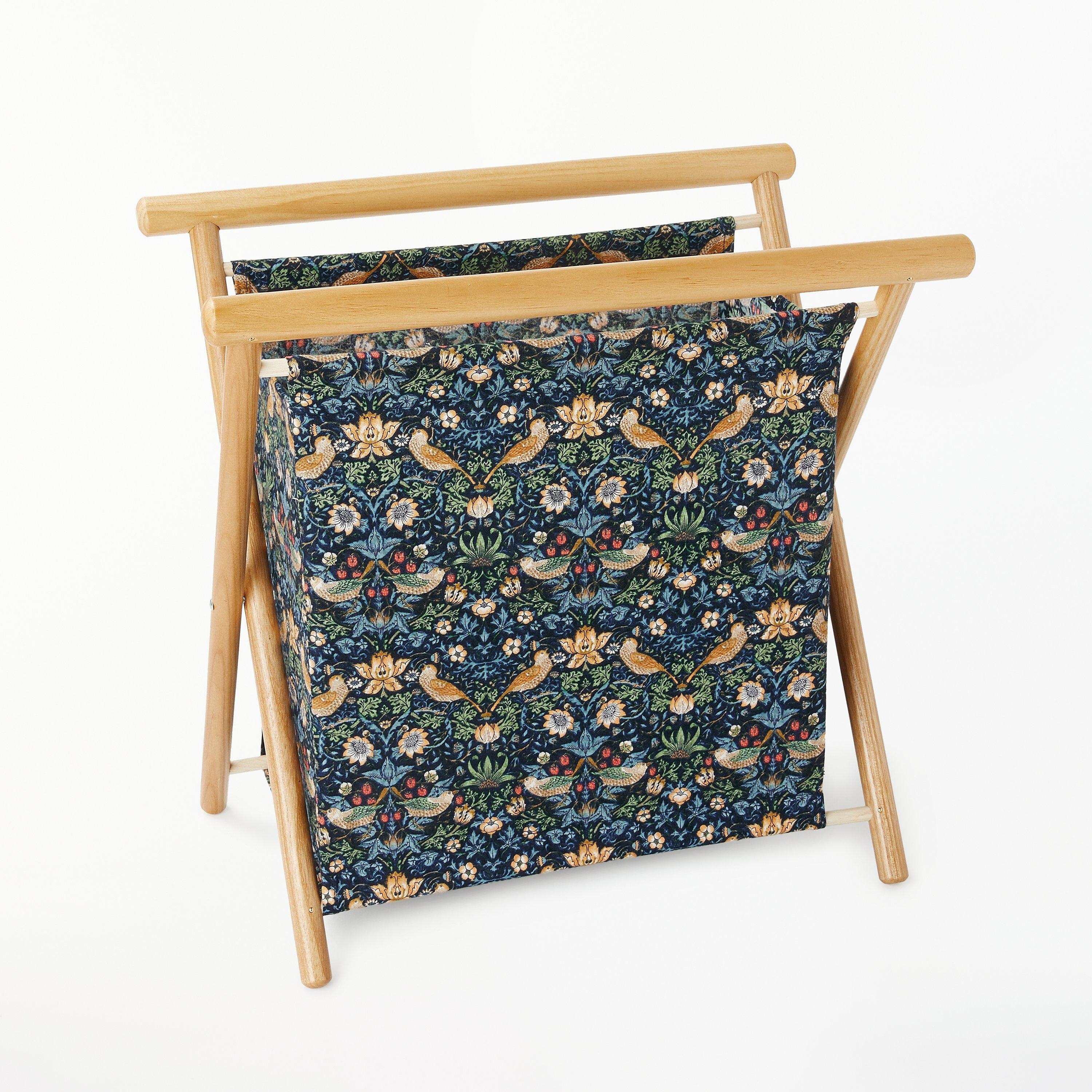 Made from cotton and wood, this sturdy and collapsible frame features a large compartment for storing yarns and accessories plus an all-over Strawberry Thief print.