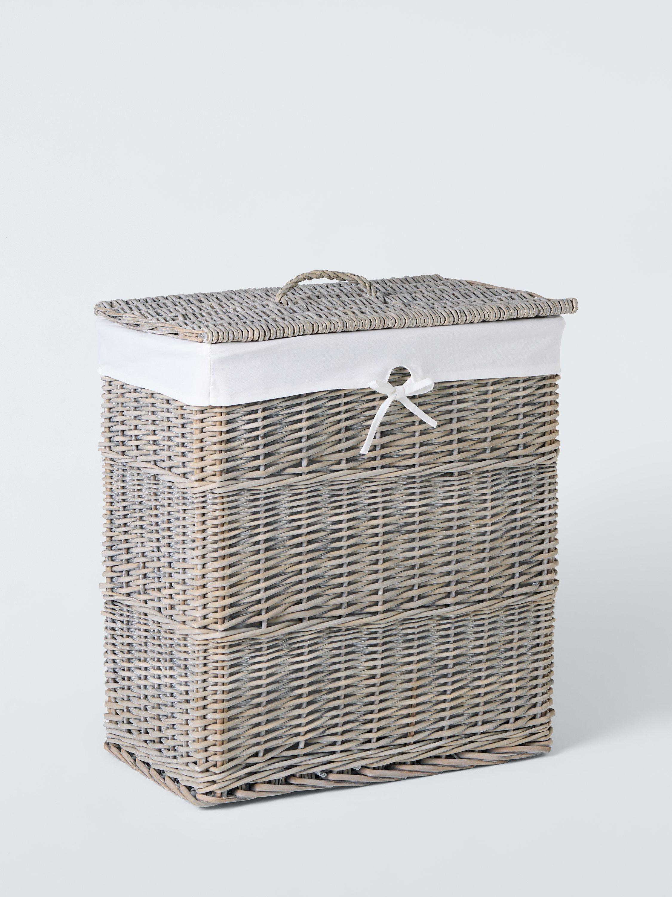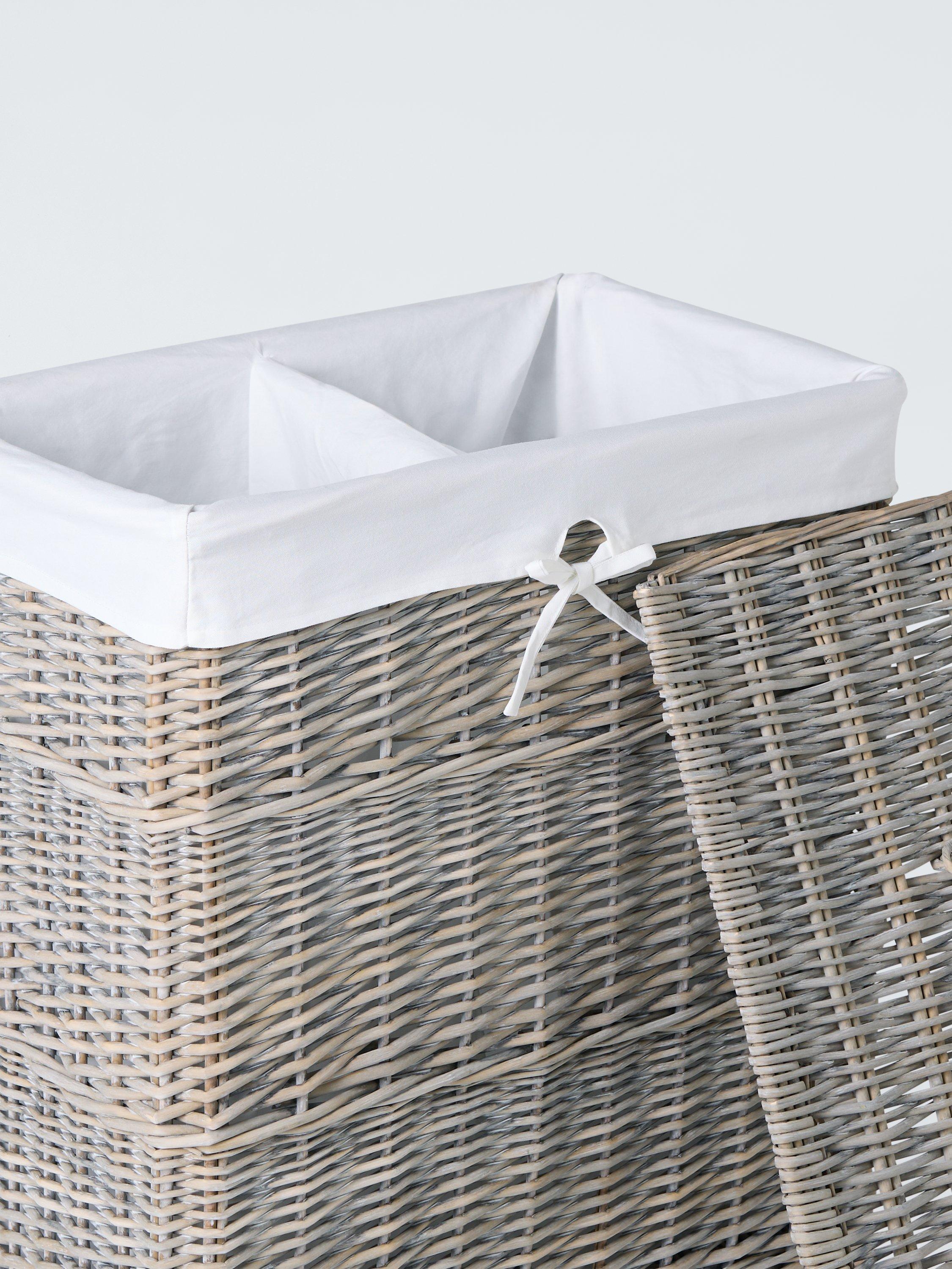A large double laundry basket that holds plenty of washing and comes with a removable and washable drawstring cotton liner.