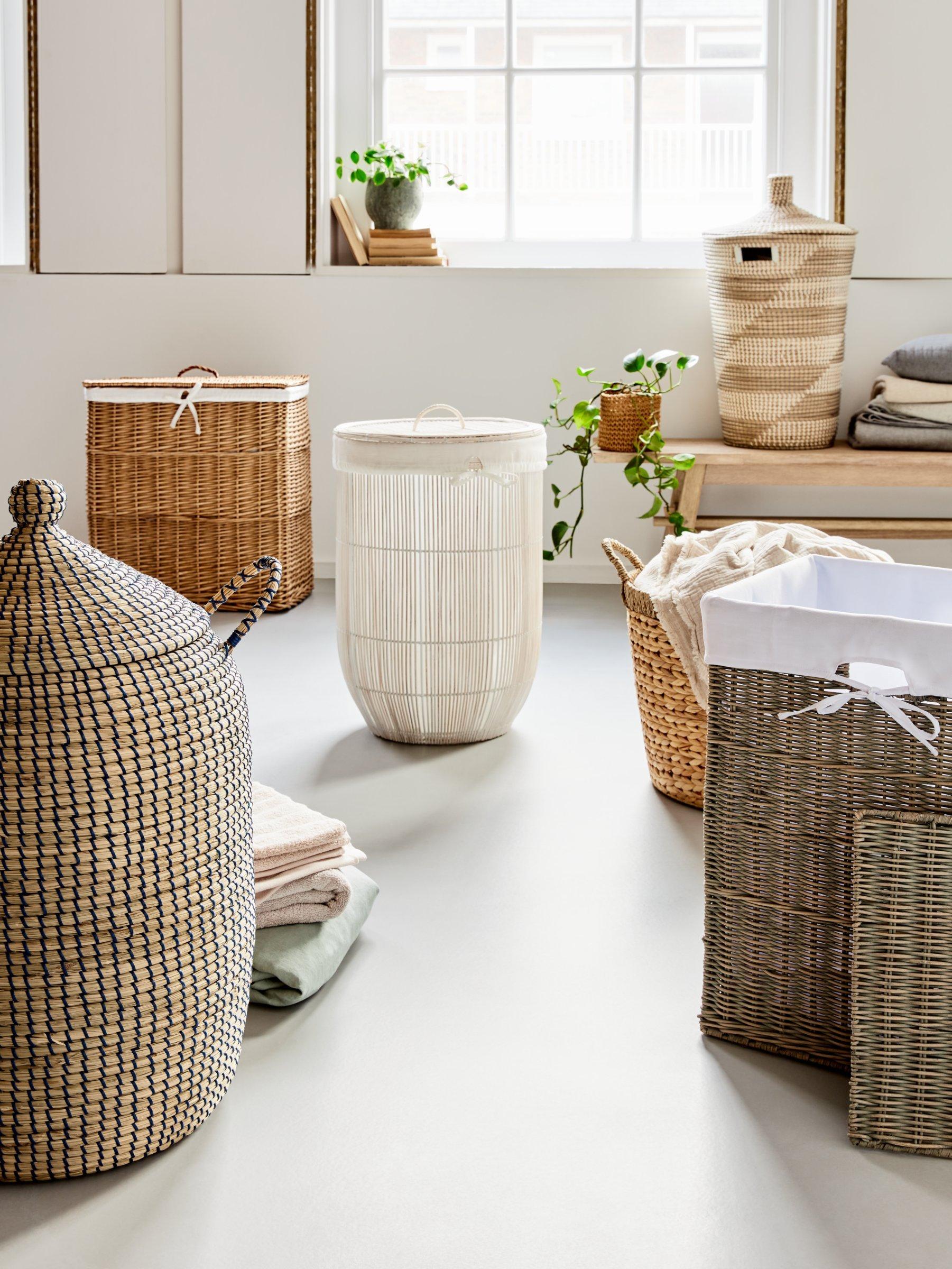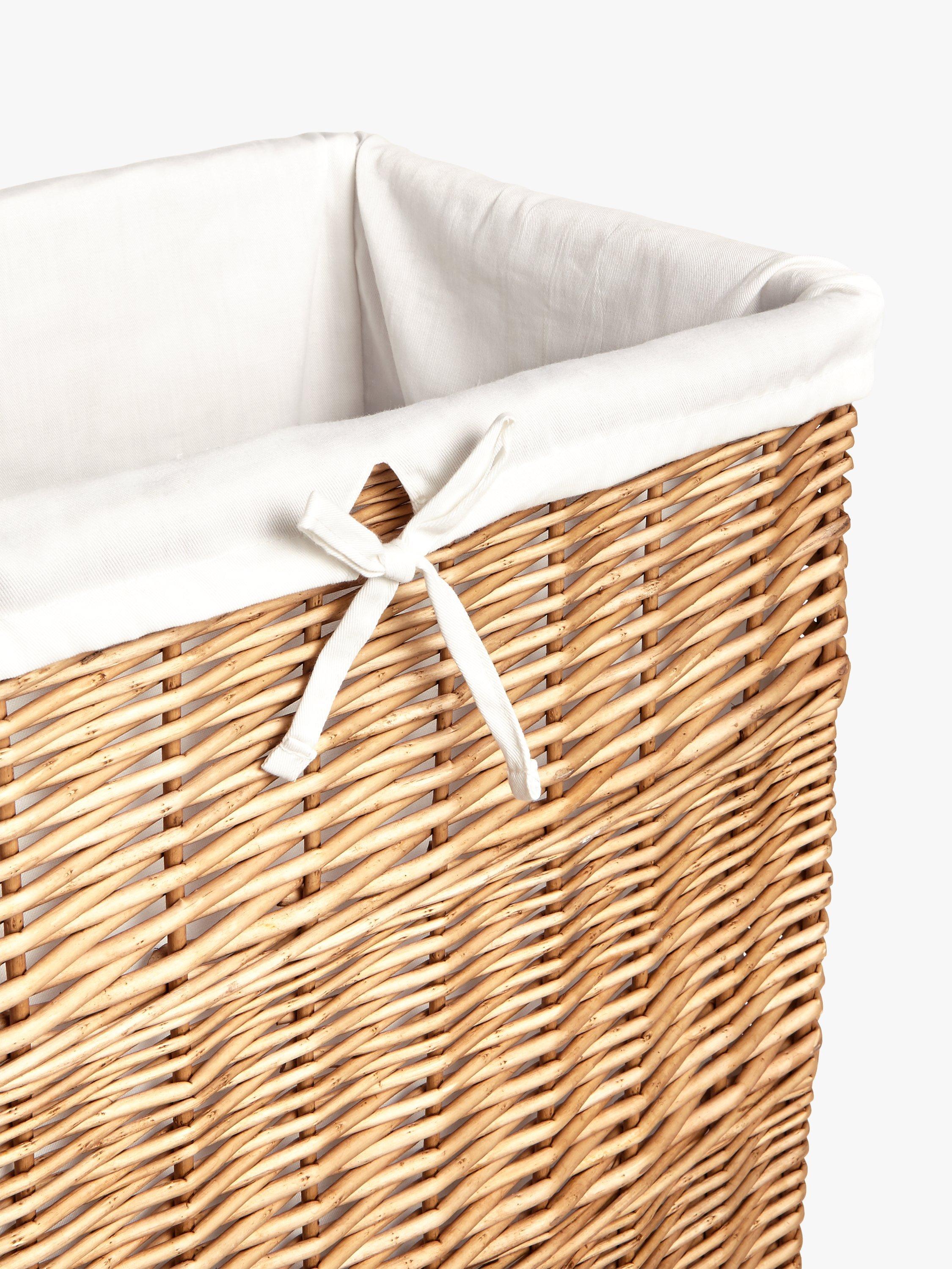 A large double laundry basket that holds plenty of washing and comes with a removable and washable drawstring cotton liner.
