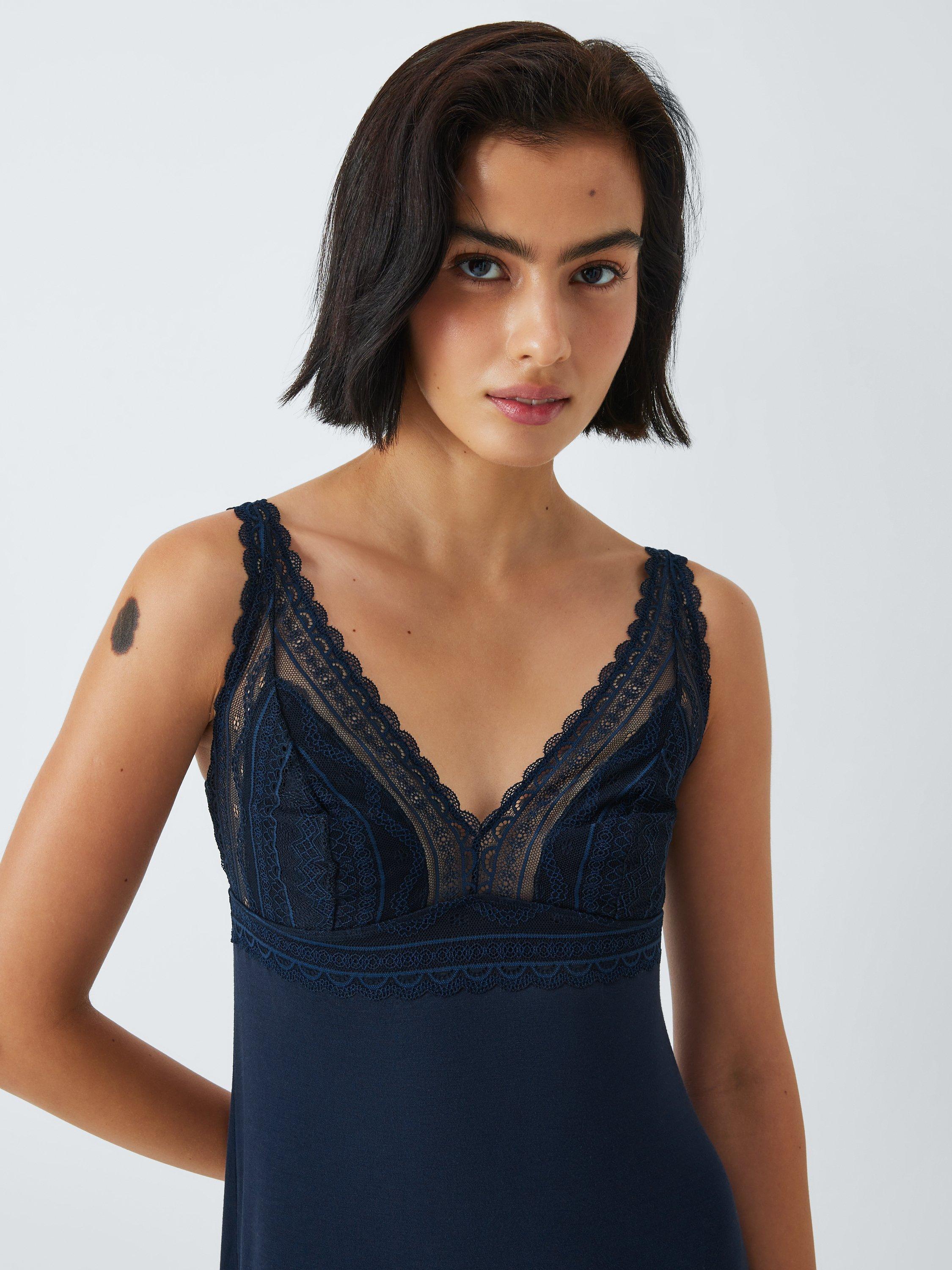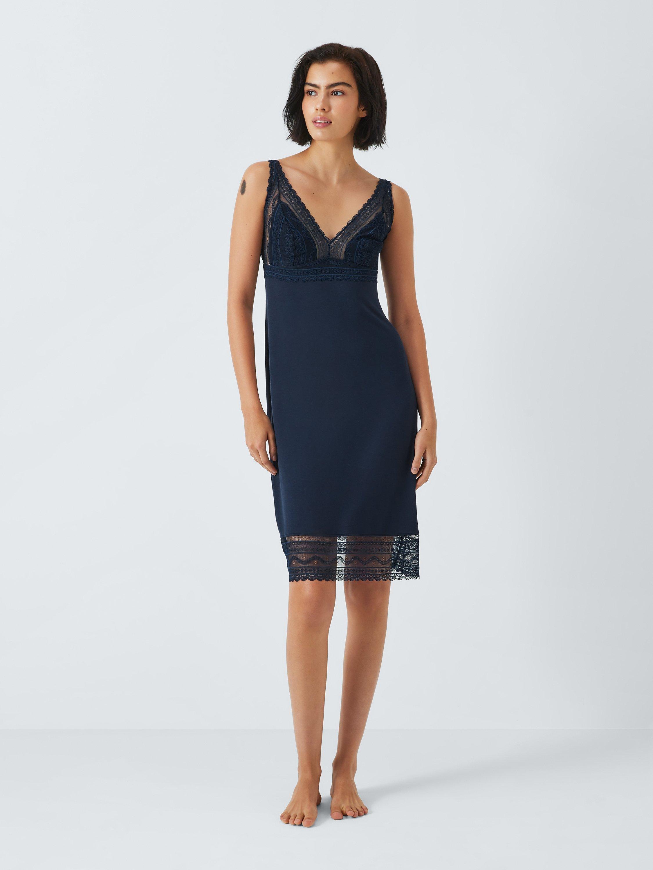 In a beautifully lightweight fabric that's perfect for warm nights, this chemise comes with a charming lace detailing.
