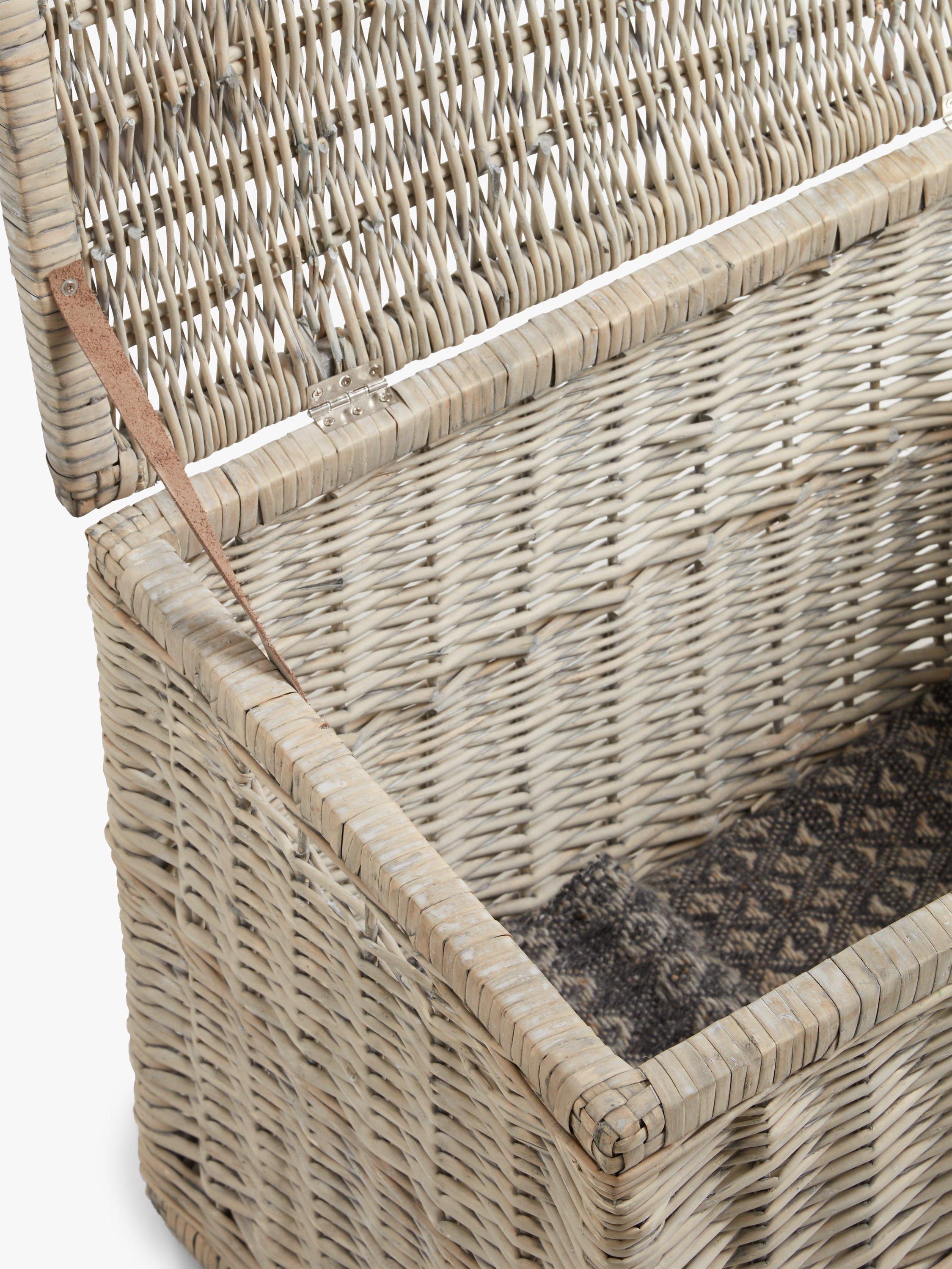 This willow trunk has a leather strap to secure the lid and is perfect for storing bed or bath linen.