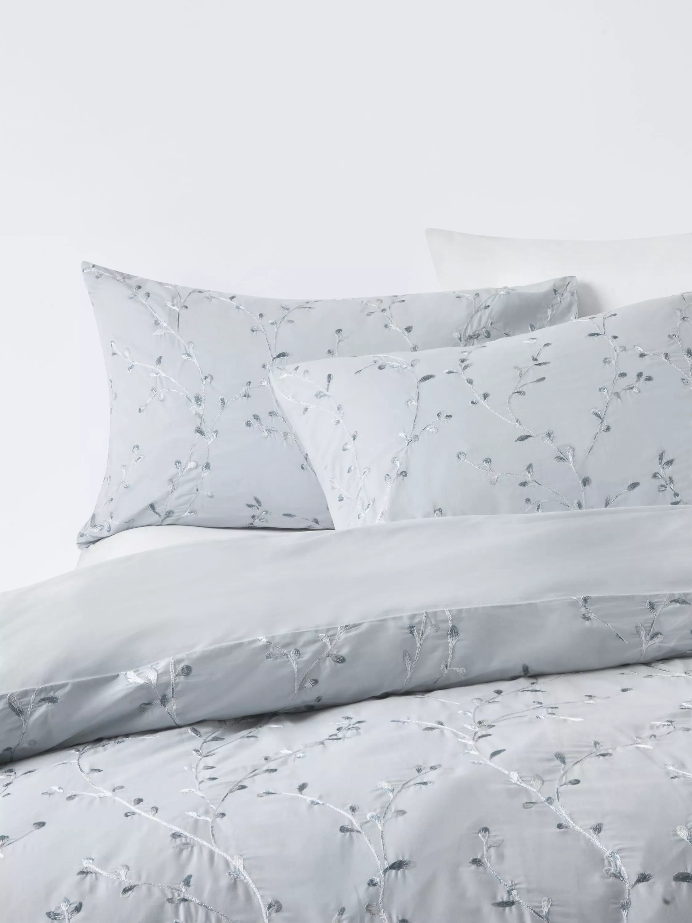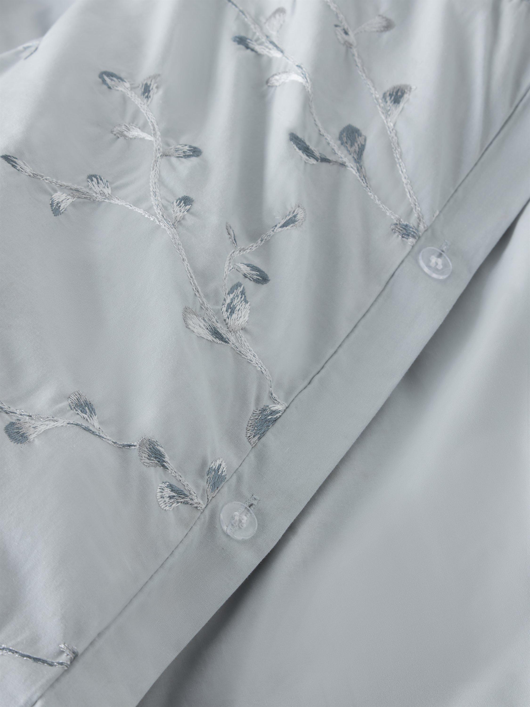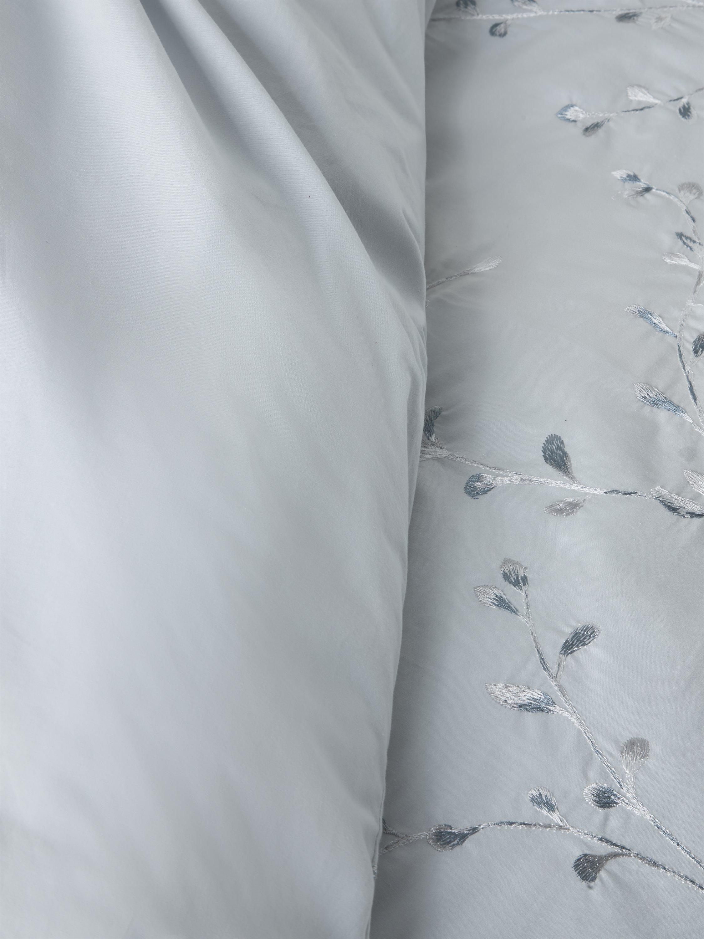 Make your sleep space restful and relaxing with this blue-toned, duvet cover set. The embroidered finish gives a beautiful sheen to the all-over willow trail design. The reverse is plain.