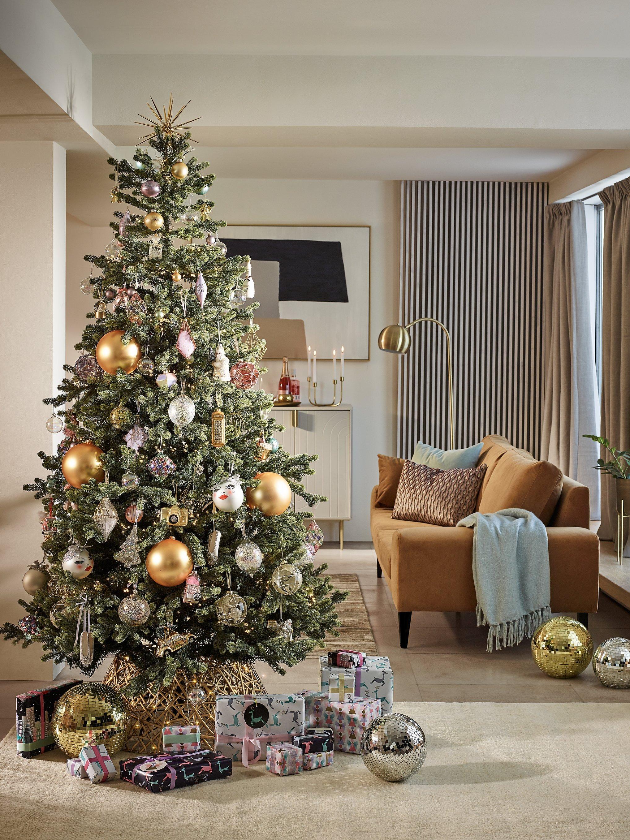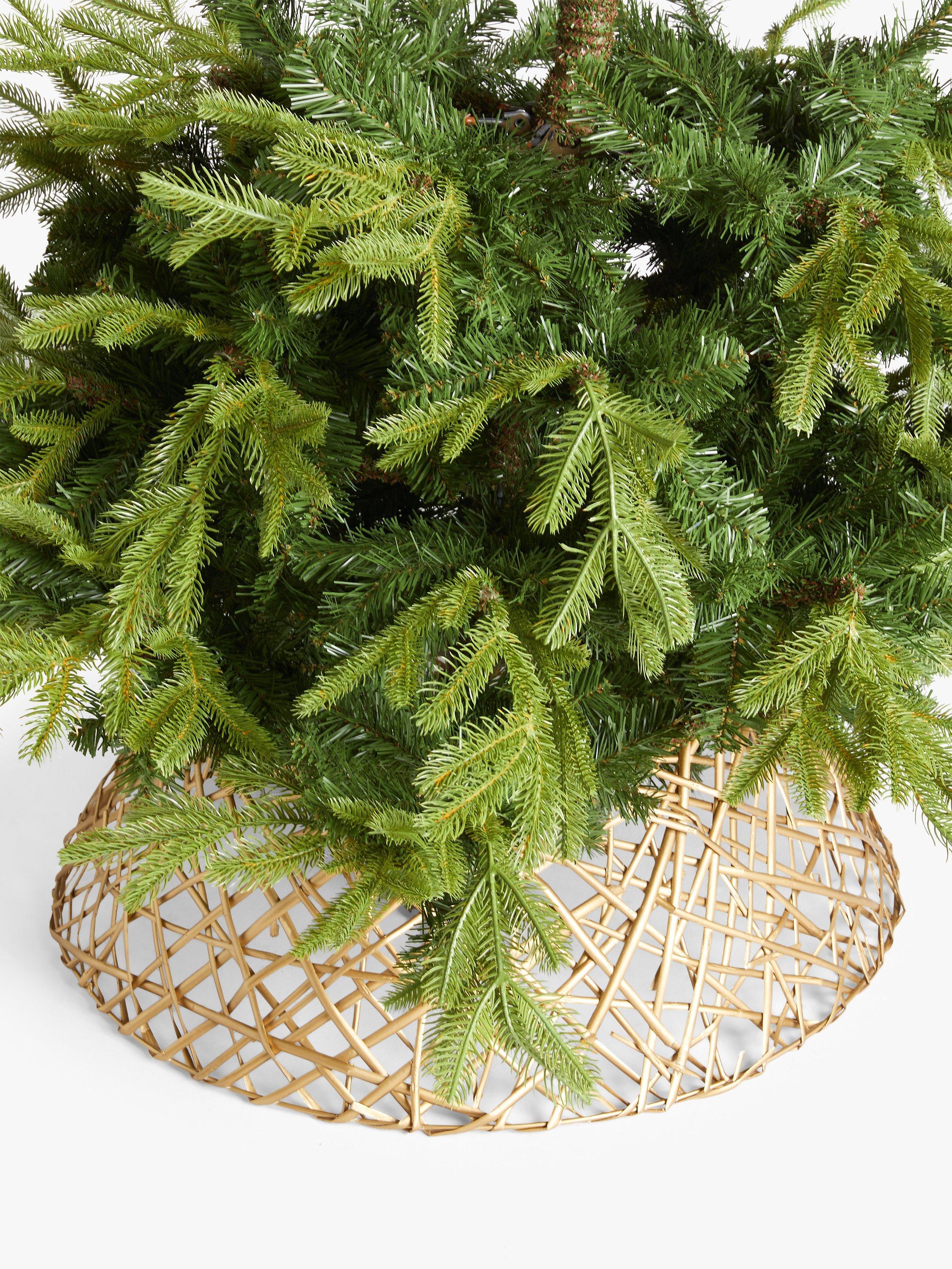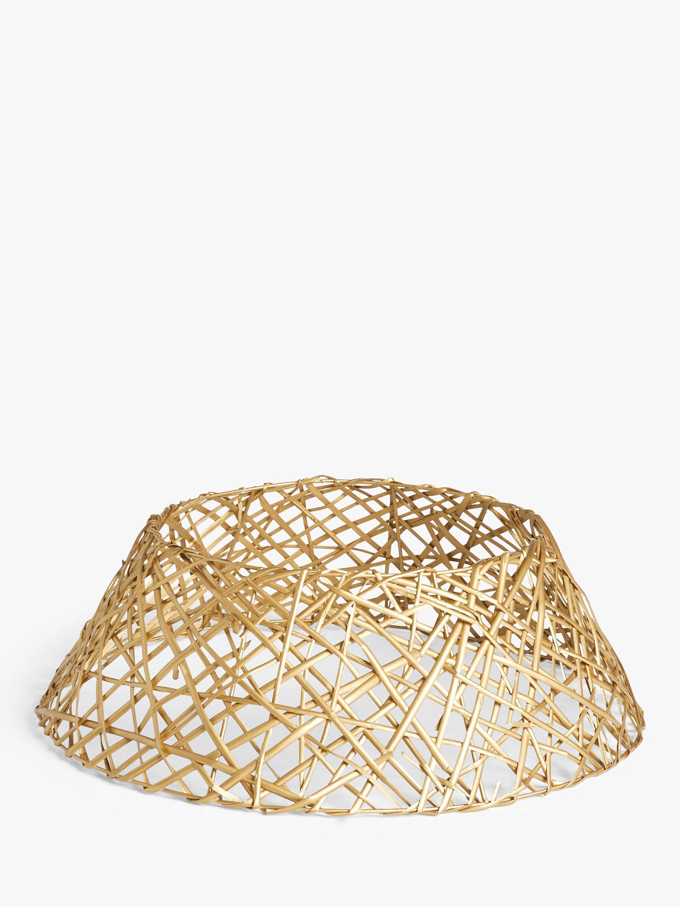 This attractive tree skirt is woven from natural willow and sprayed gold.