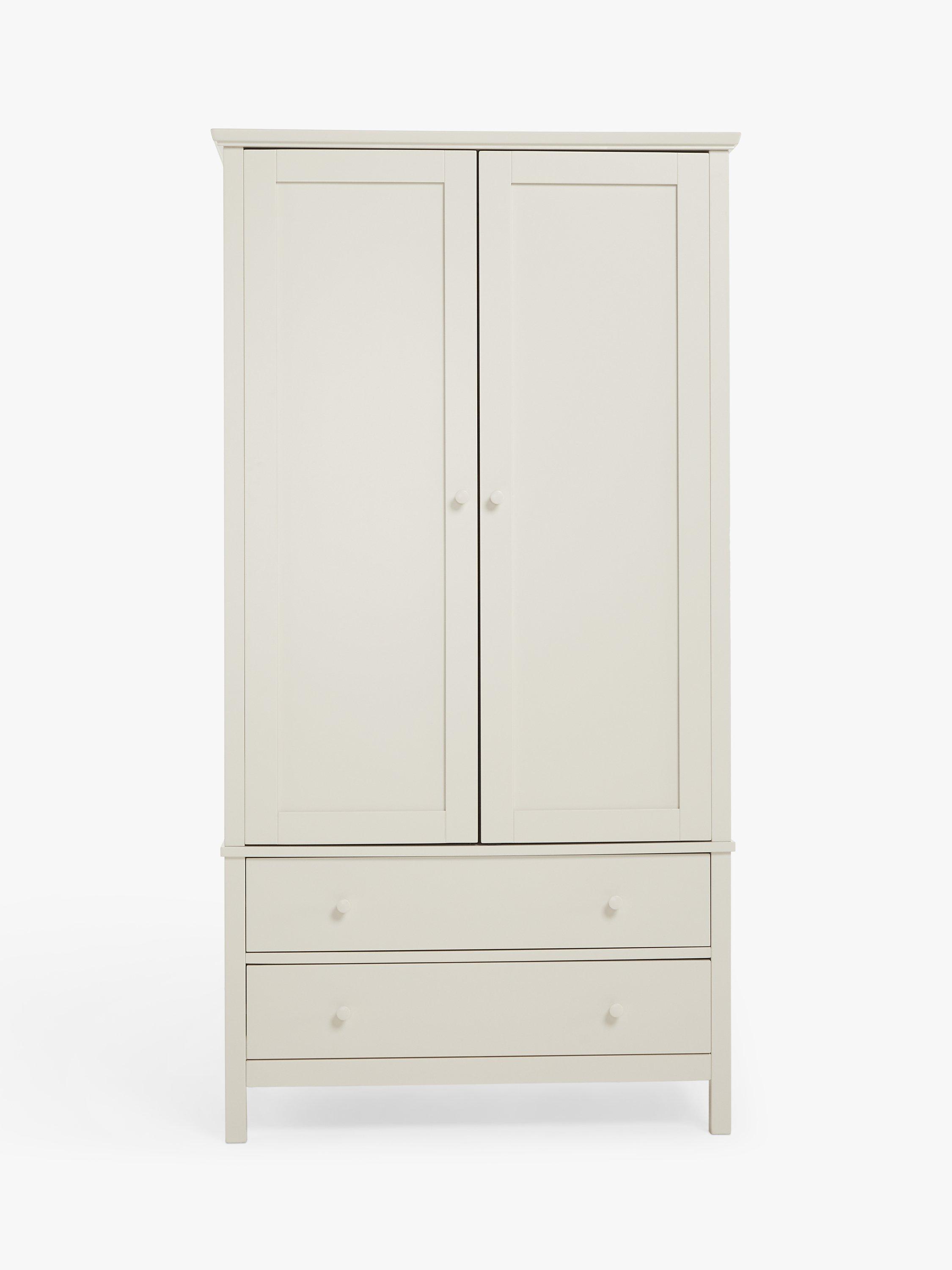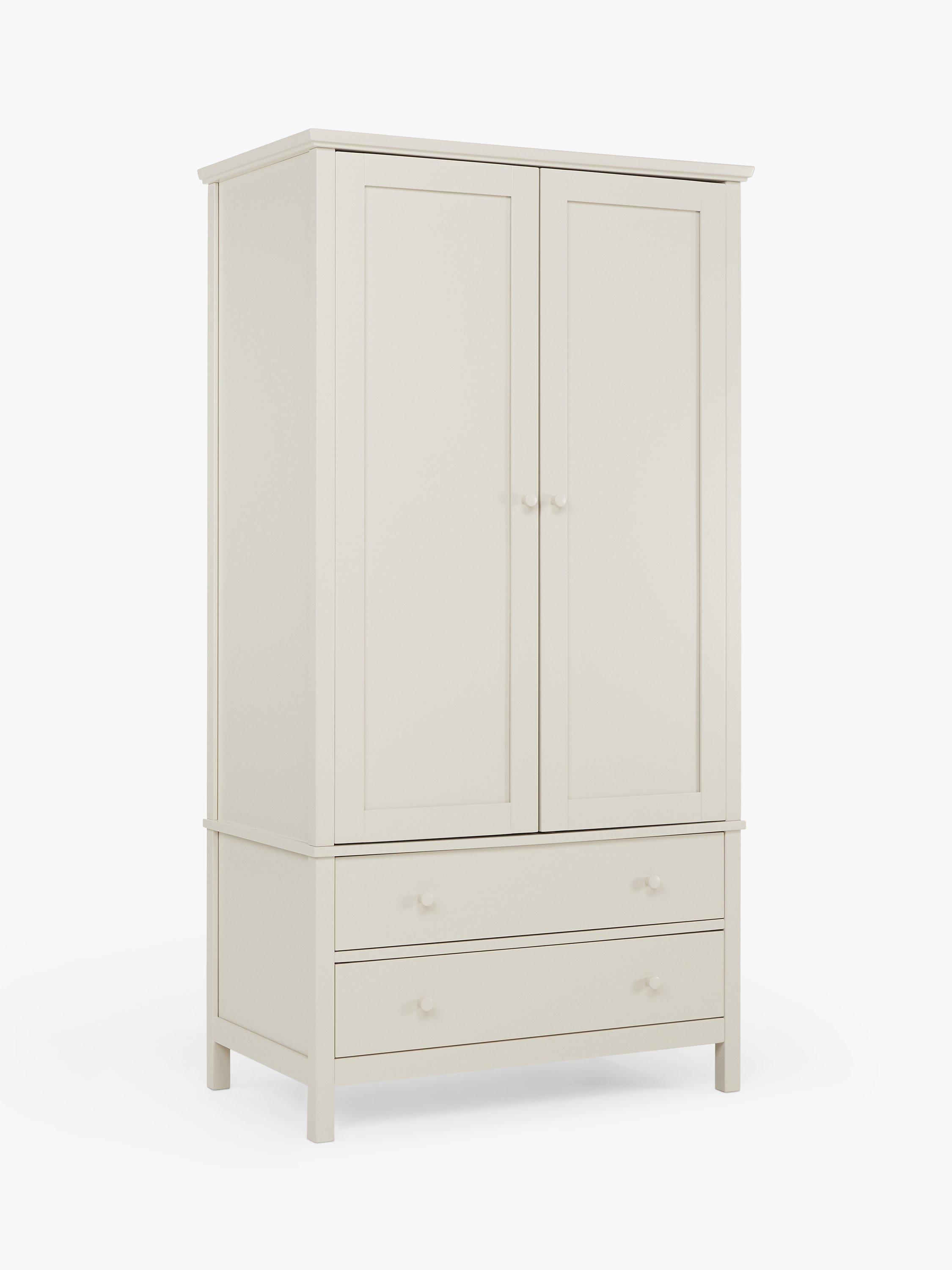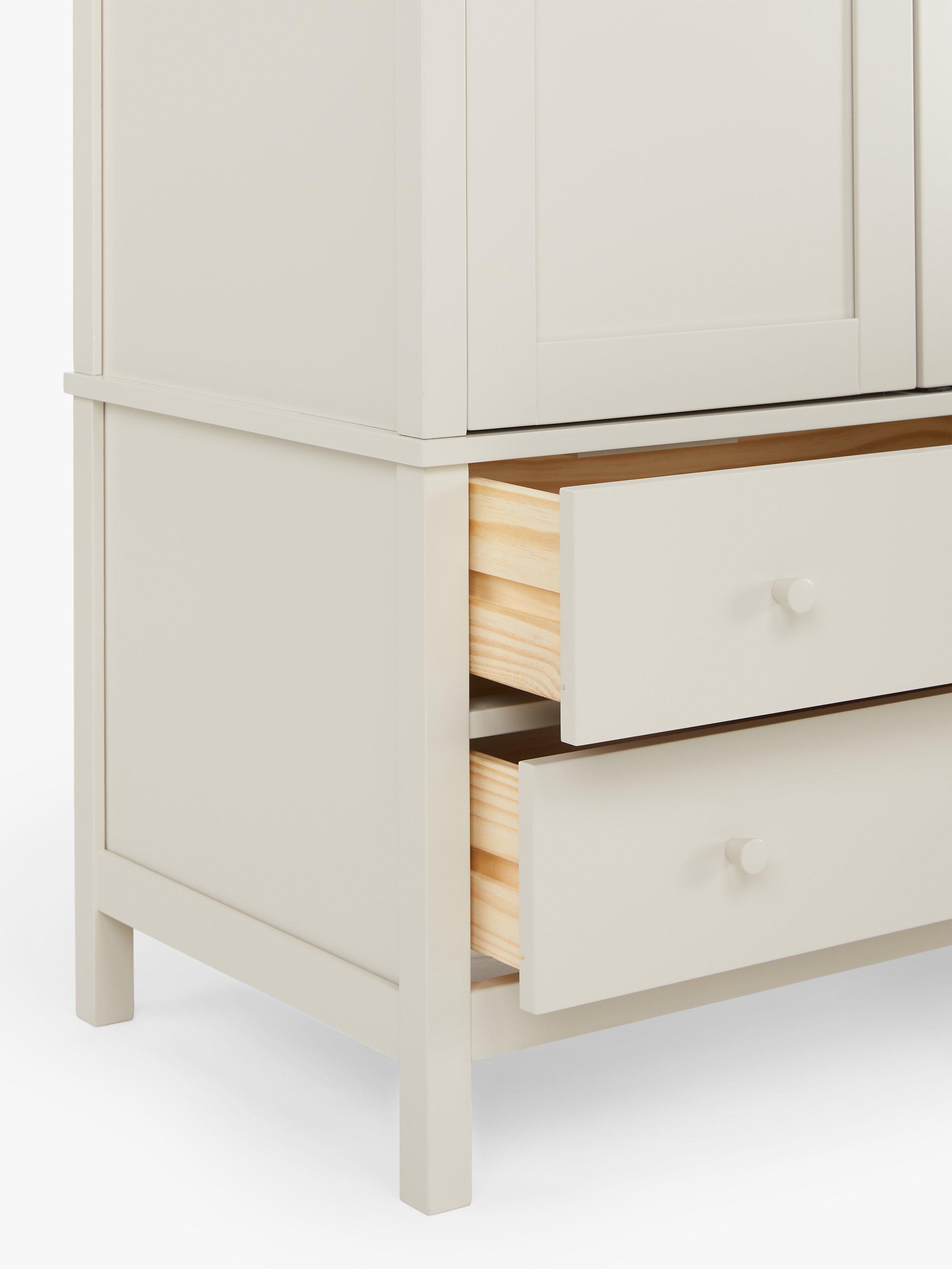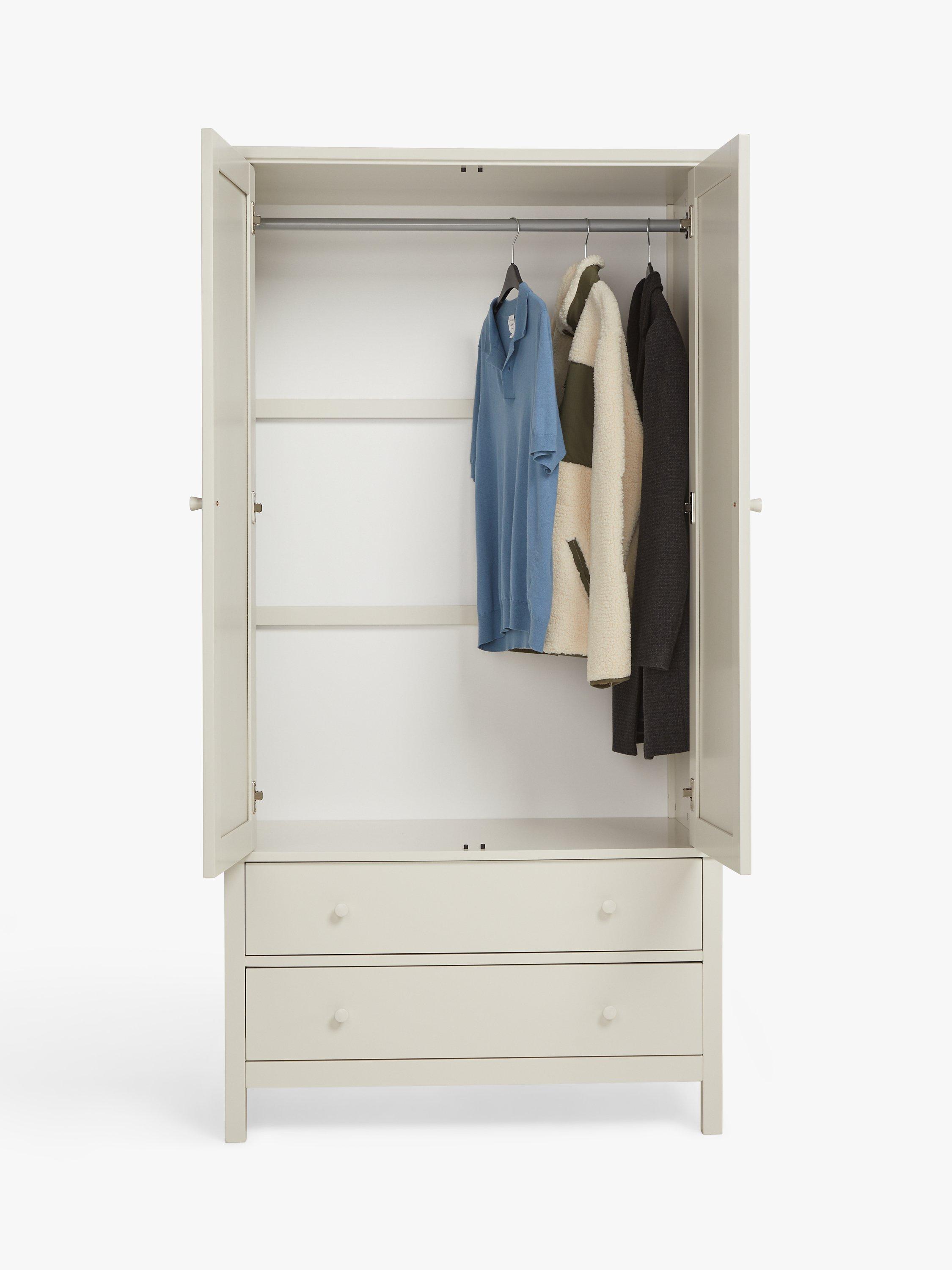 We've made this spacious double wardrobe from a mix of high-quality timbers. There's a metal hanging rail inside and two extra storage drawers beneath the main cupboard section. Well-proportioned for smaller bedrooms, it's available in a choice of natural, or painted finishes.