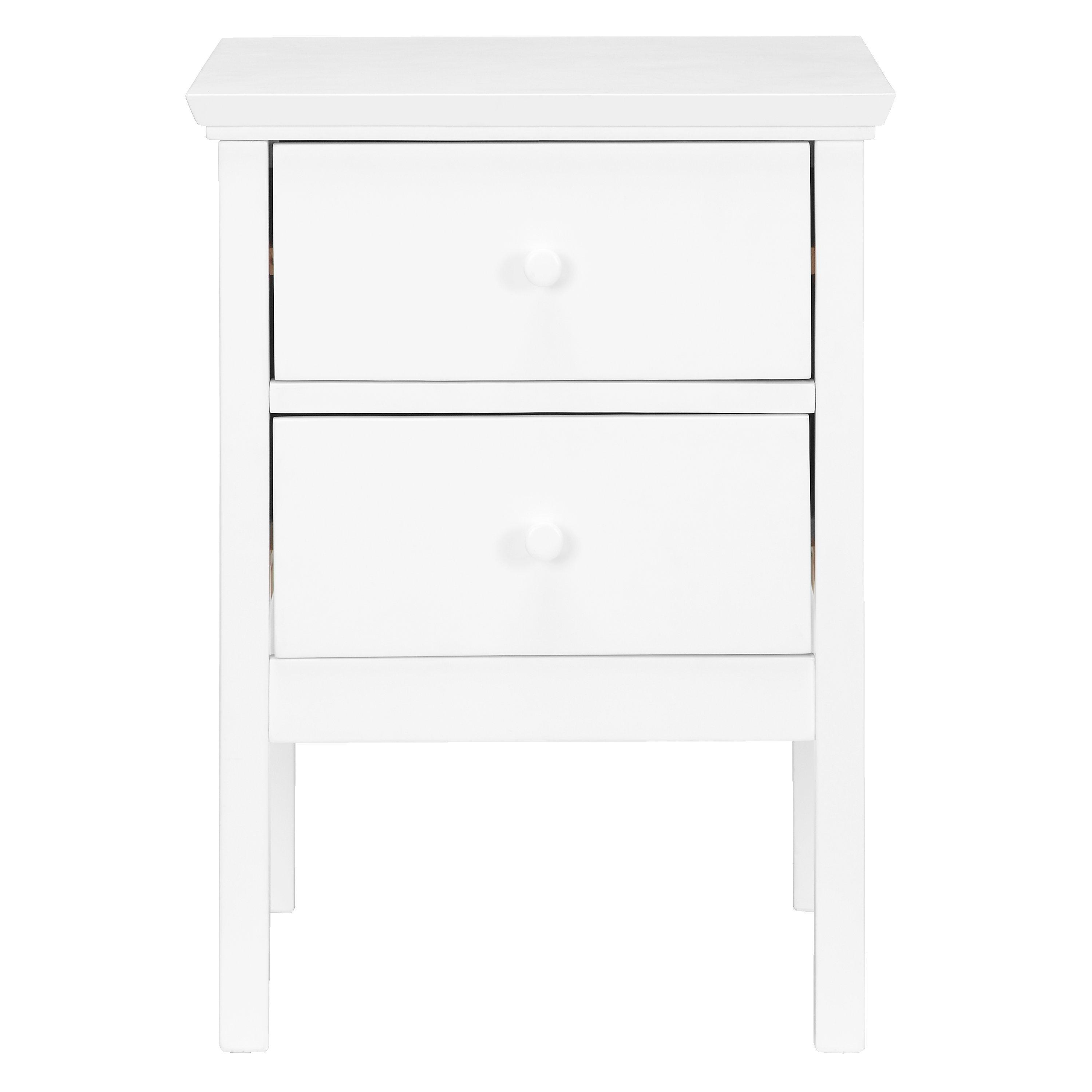 This petite bedside table is a brilliant option for smaller bedrooms. We've made it from robust pine wood and veneers and kept the design simple, but timeless. Two drawers provide convenient storage space and it's available in a painted finish for a more modern look or a natural finish that highlights the authentic wood grains.