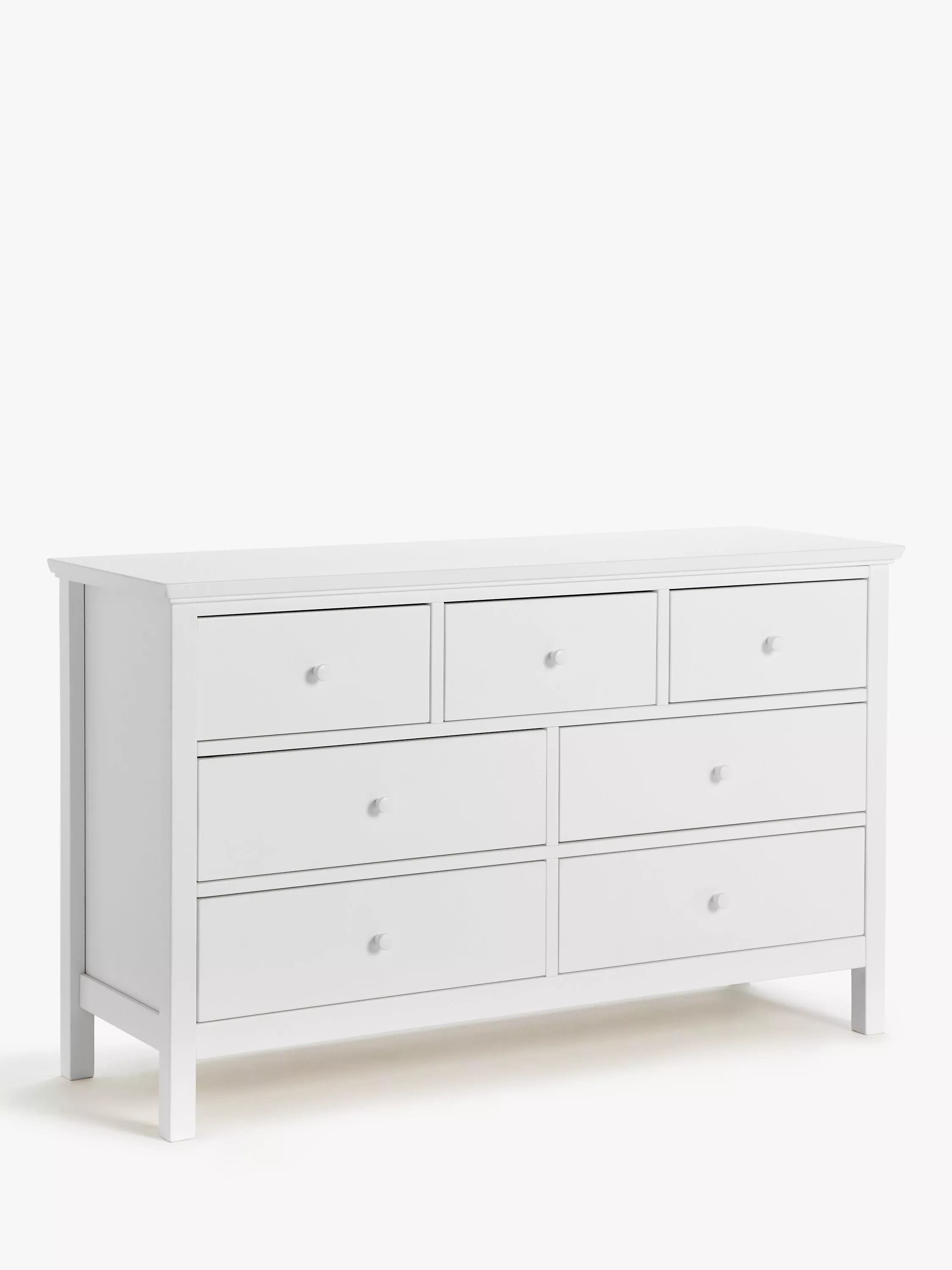 This solid chest of drawers is made from hard-wearing timbers and we've given it a crisp, painted finish so it will work beautifully in both modern and more traditionally styled bedrooms. There's plenty of storage space thanks to a total of seven drawers.