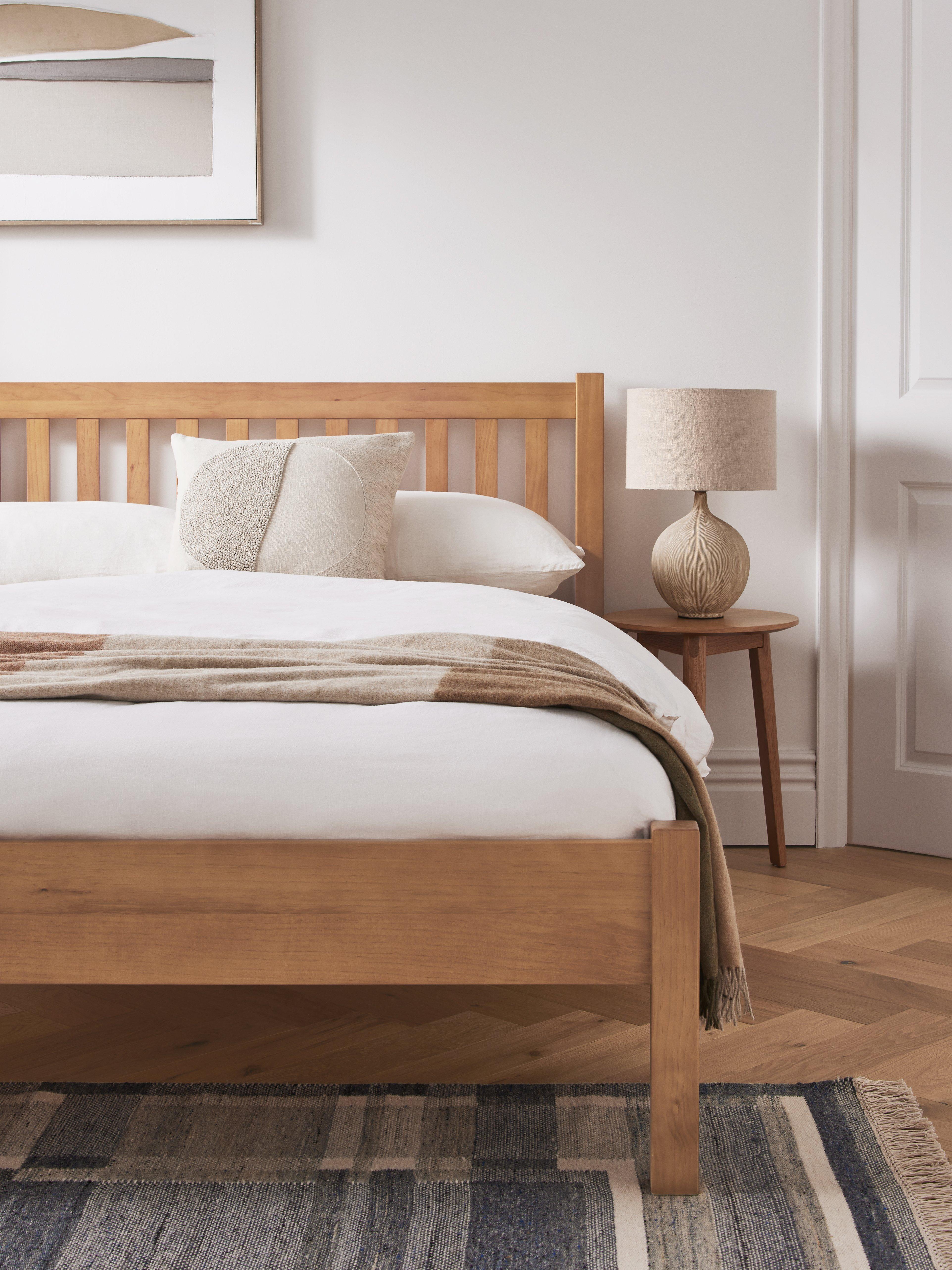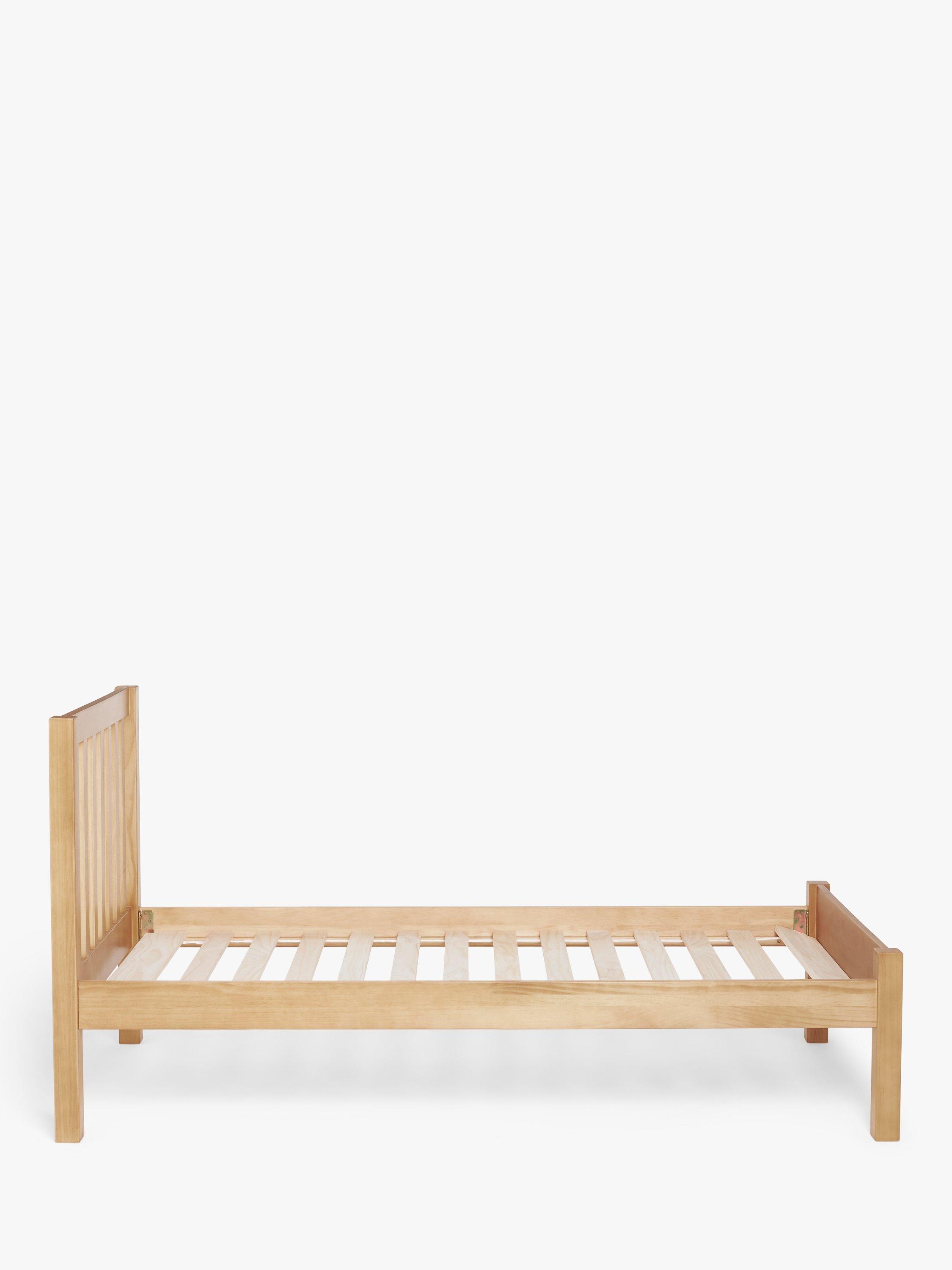 It's easy to assemble this bed frame, which we've made from hard-wearing pine wood. It has a simple, clean-lined design with a slatted headboard, and solid slats in the base provide a firmer foundation for your mattress. Available in a painted finish for a more modern look or a natural finish that highlights the authentic wood grains.