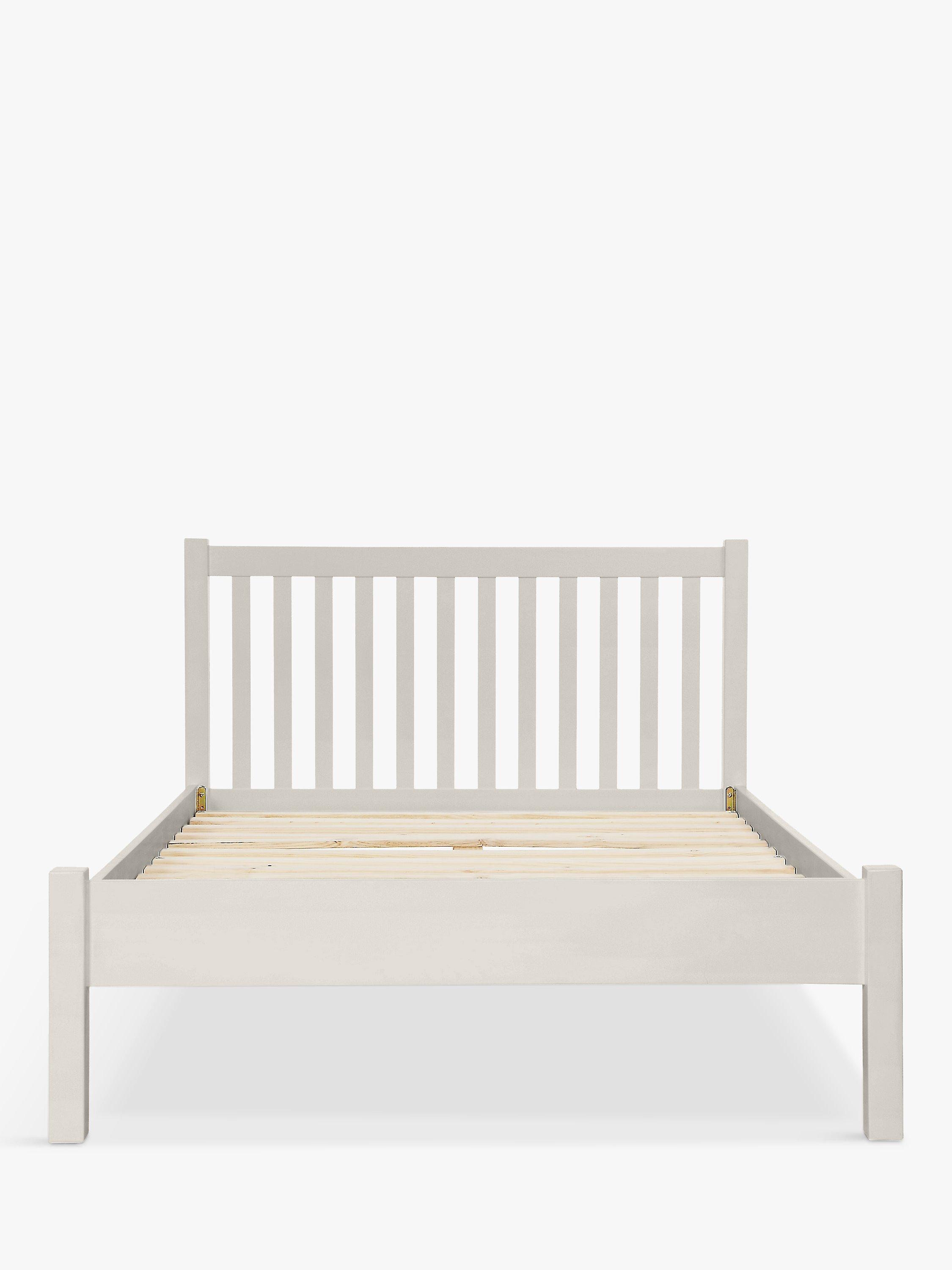 It's easy to assemble this bed frame, which we've made from hard-wearing pine wood. It has a simple, clean-lined design with a slatted headboard, and solid slats in the base provide a firmer foundation for your mattress. Available in a painted finish for a more modern look or a natural finish that highlights the authentic wood grains.