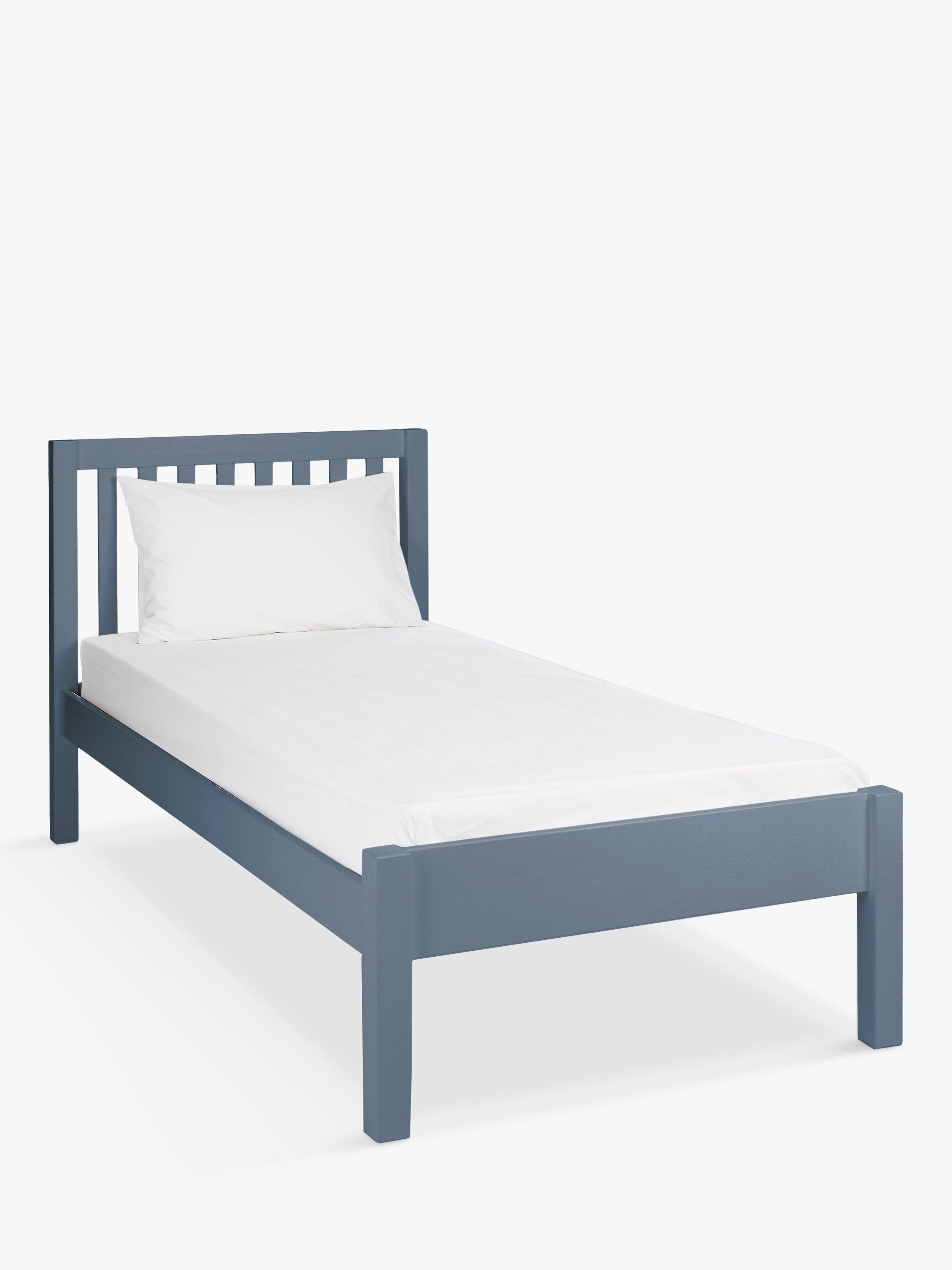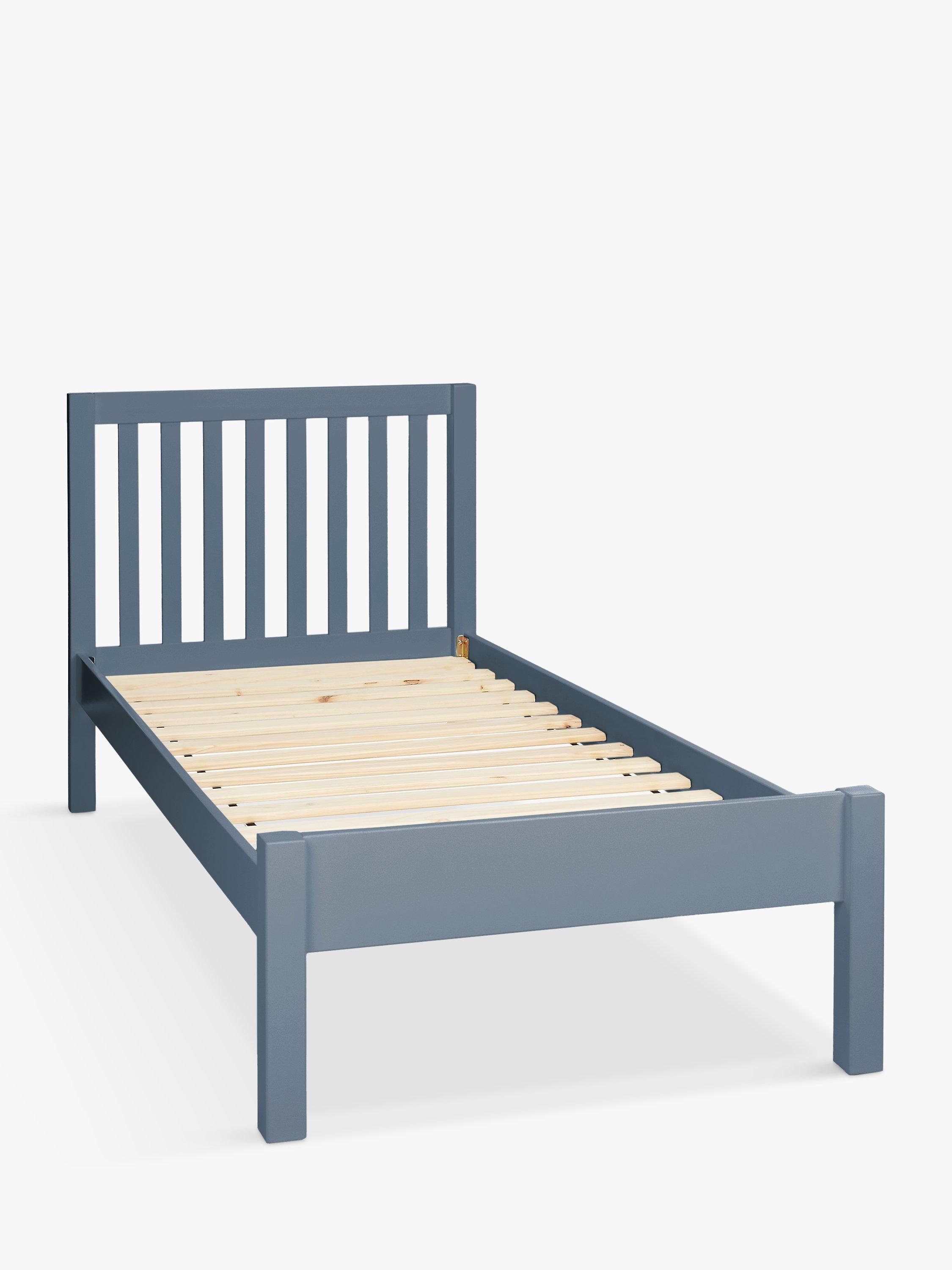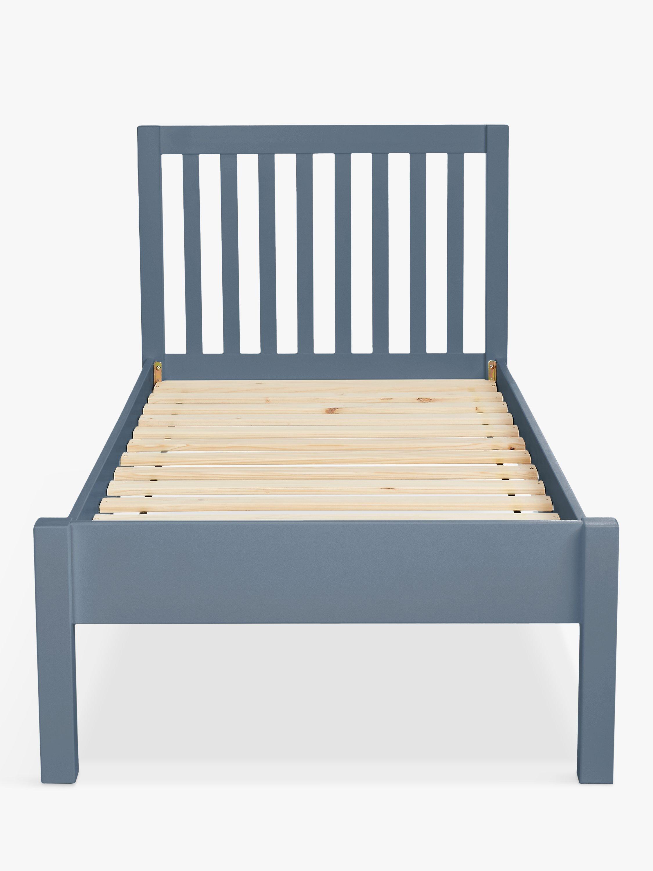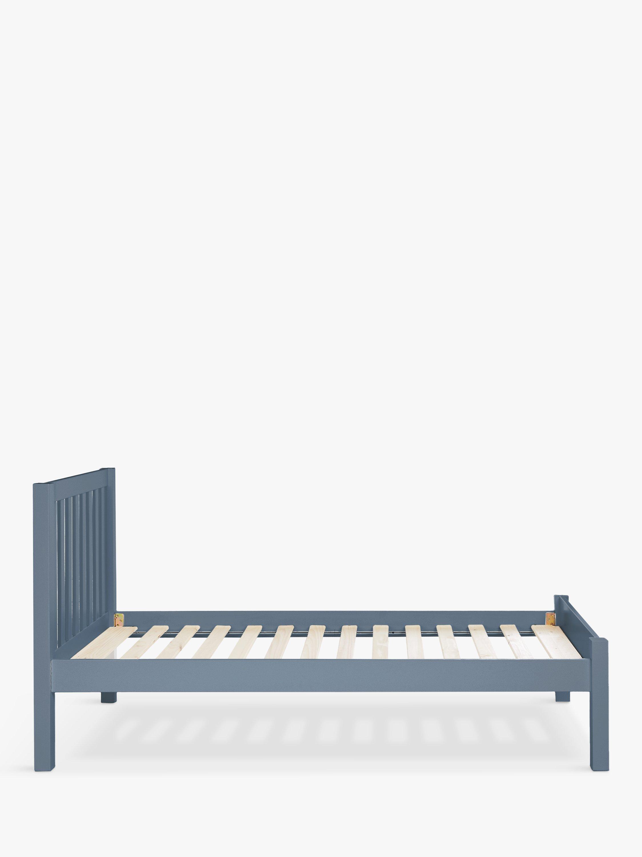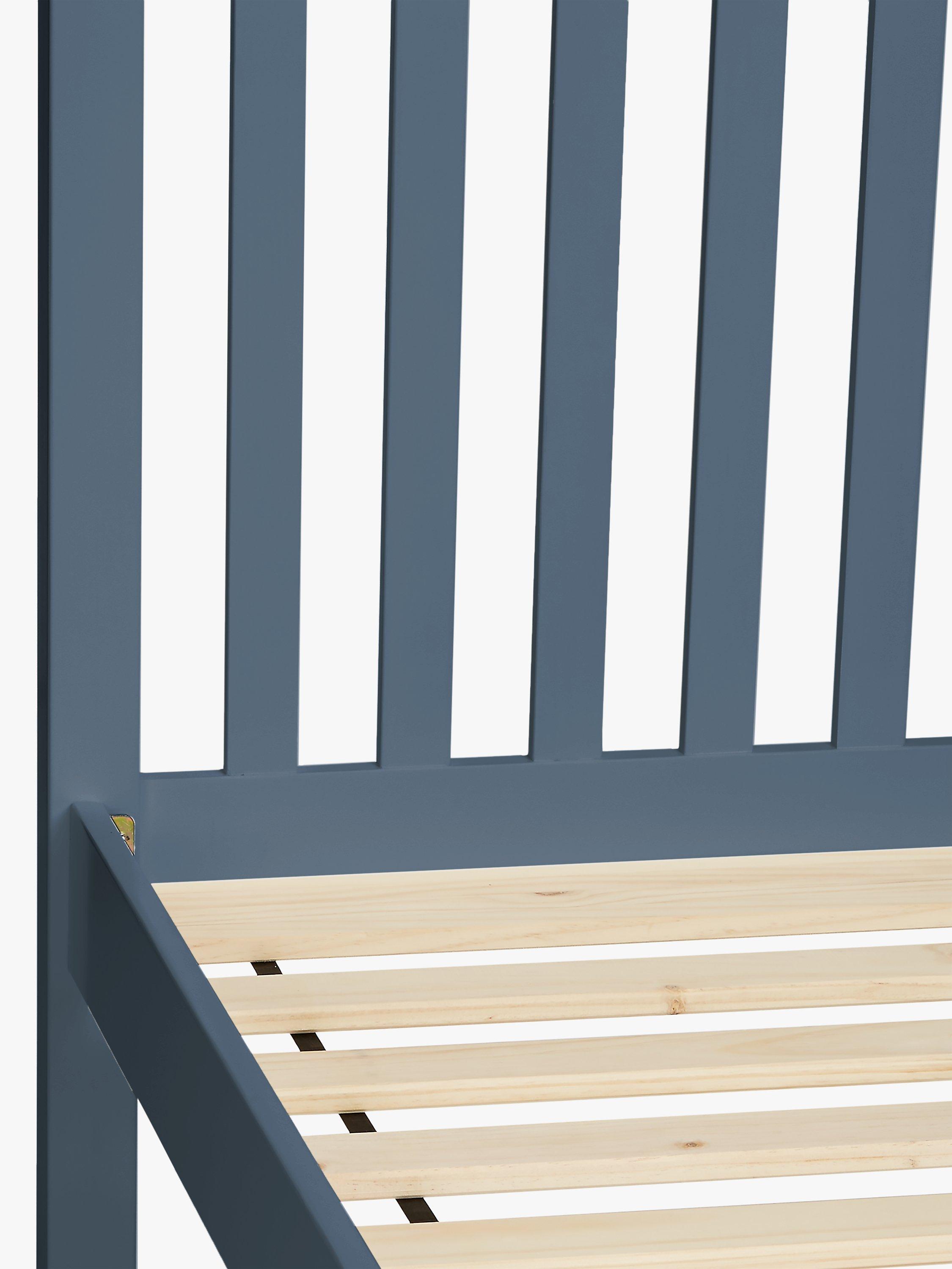 It's easy to assemble this bed frame, which we've made from hard-wearing pine wood. It has a simple, clean-lined design with a slatted headboard, and the solid slats in the base provide a firmer foundation for your mattress. It's available in a painted finish for a more modern look or a natural finish that highlights its authentic wood grains.
