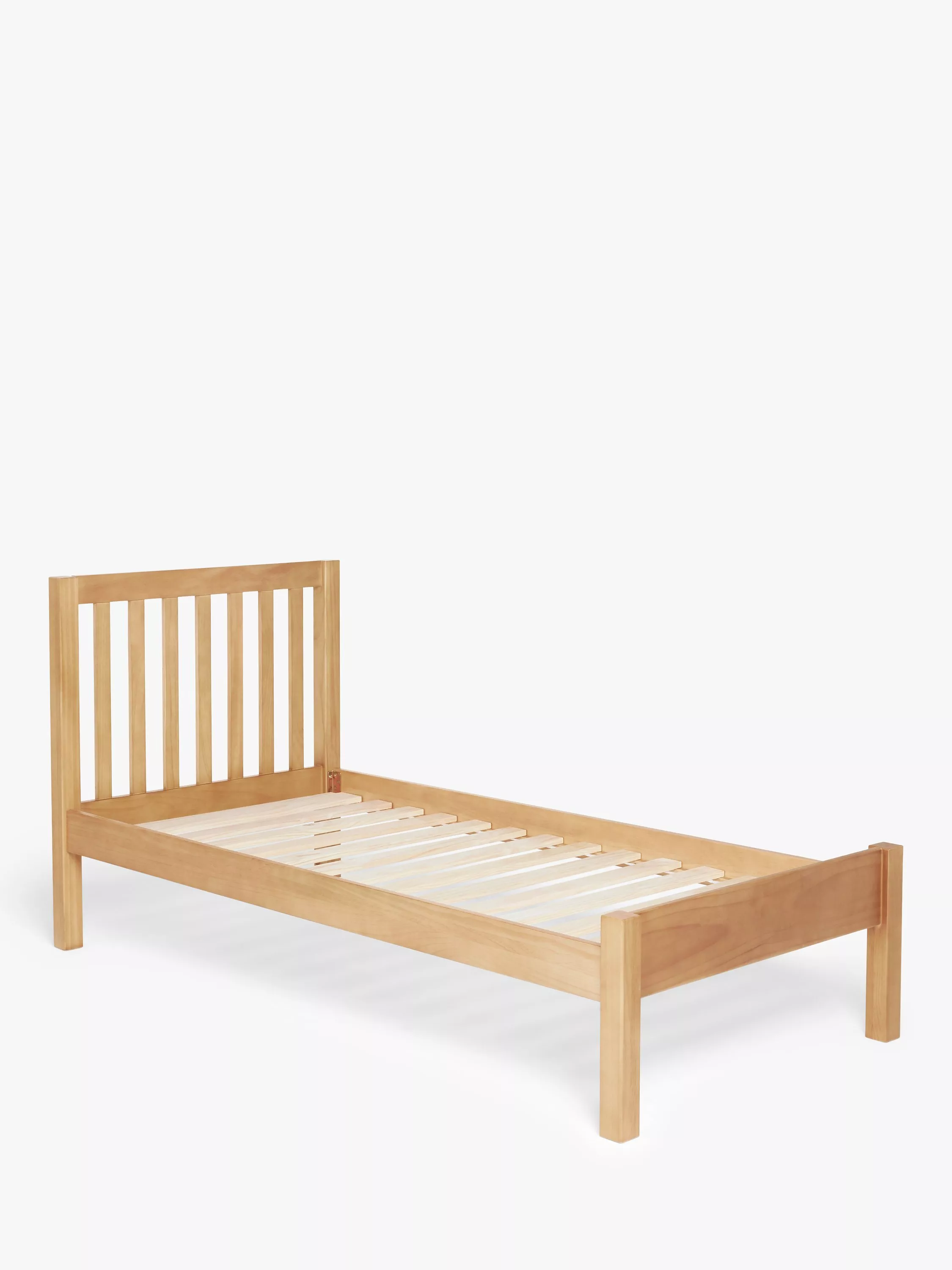 It's easy to assemble this bed frame, which we've made from hard-wearing pine wood. It has a simple, clean-lined design with a slatted headboard, and the solid slats in the base provide a firmer foundation for your mattress. It's available in a painted finish for a more modern look or a natural finish that highlights its authentic wood grains.