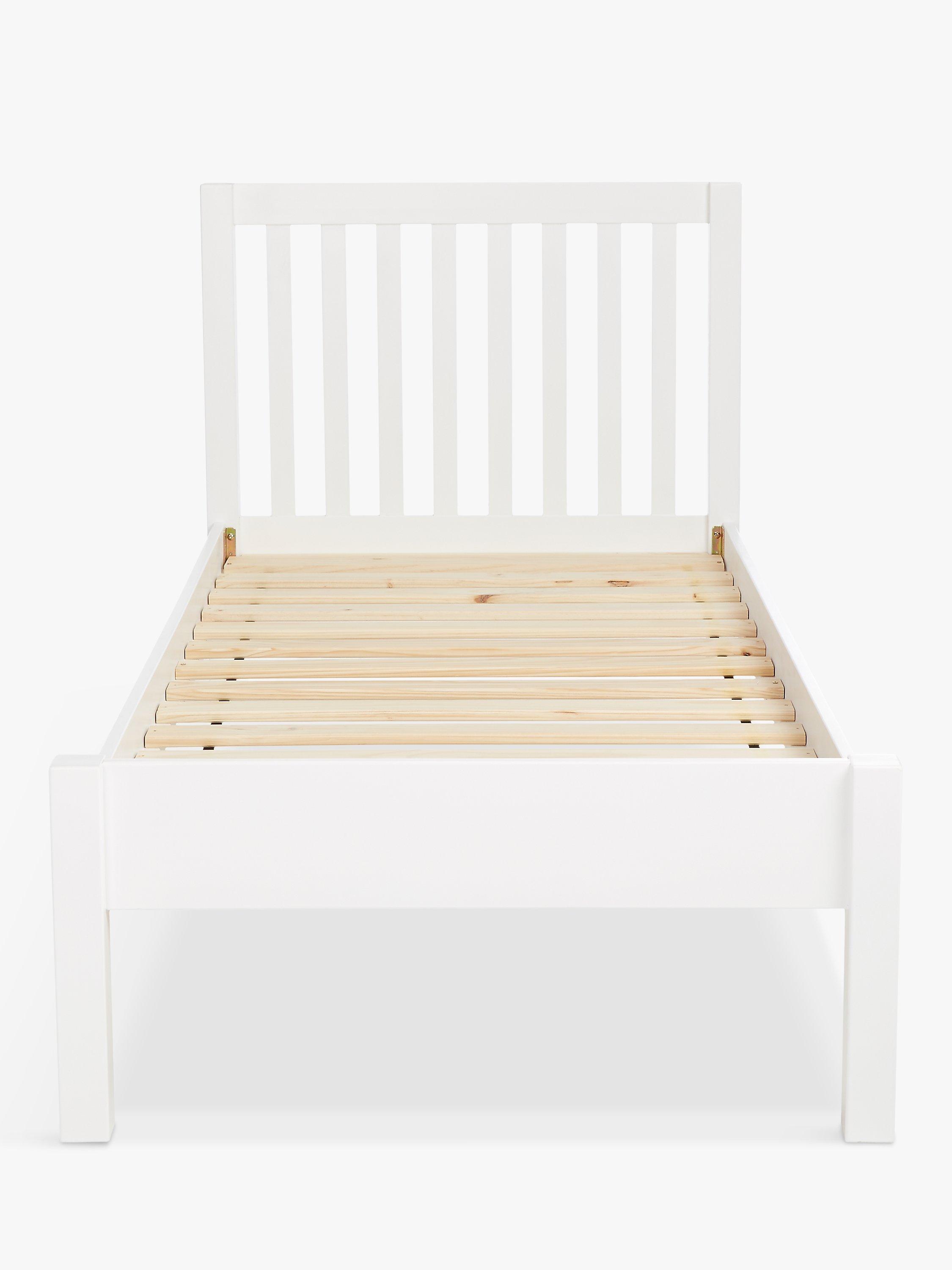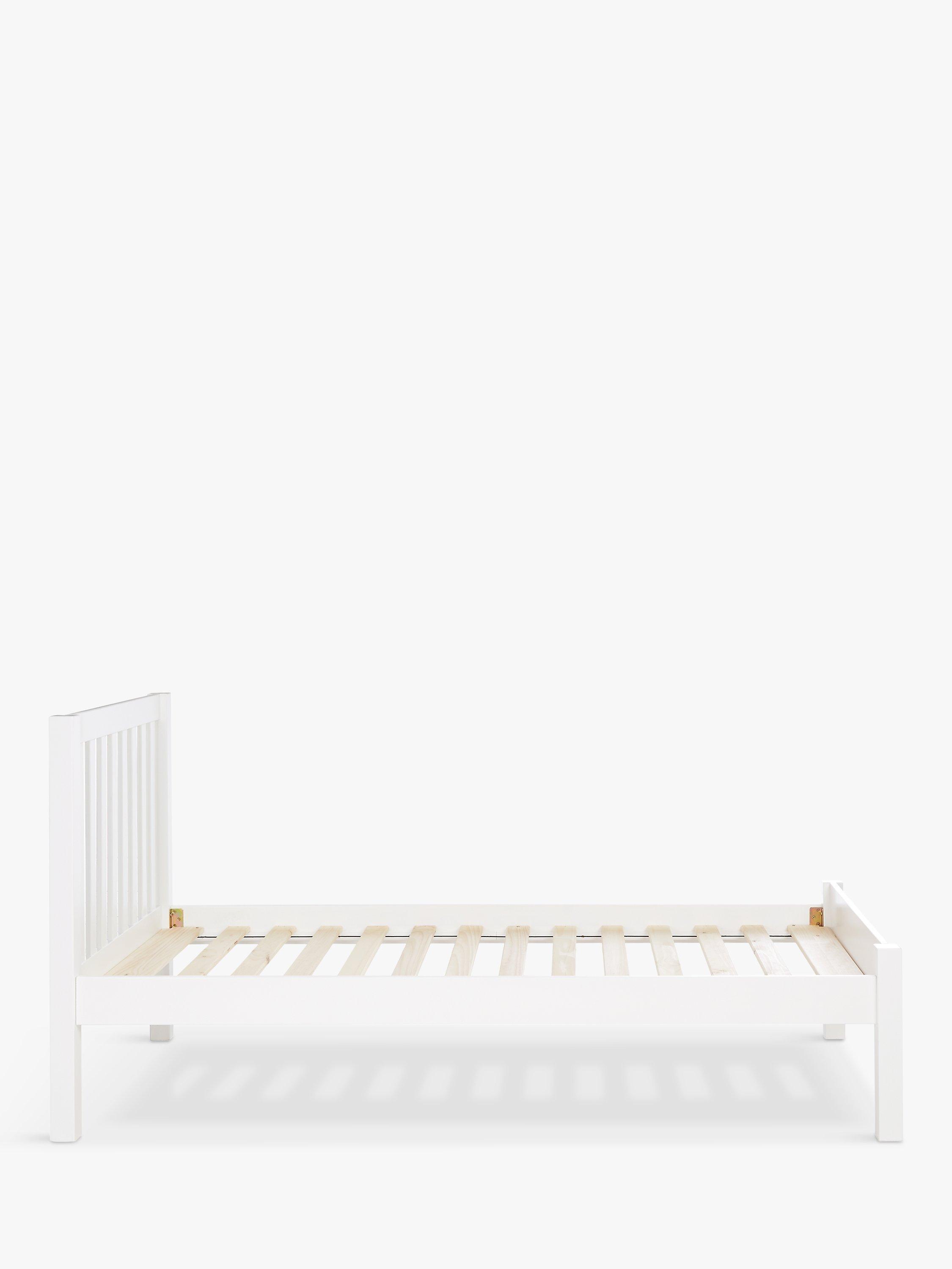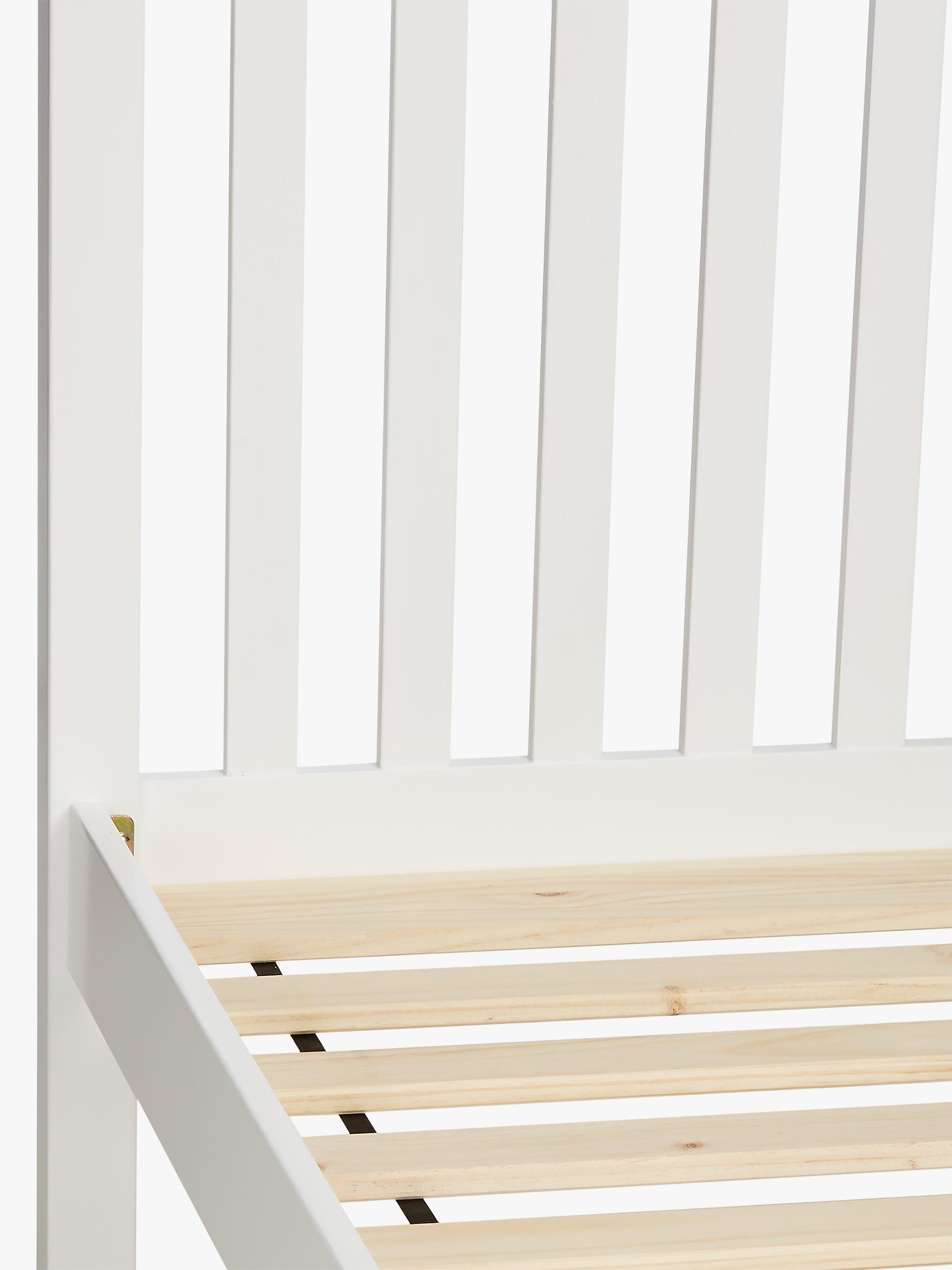 It's easy to assemble this bed frame, which we've made from hard-wearing pine wood. It has a simple, clean-lined design with a slatted headboard, and the solid slats in the base provide a firmer foundation for your mattress. It's available in a painted finish for a more modern look or a natural finish that highlights its authentic wood grains.