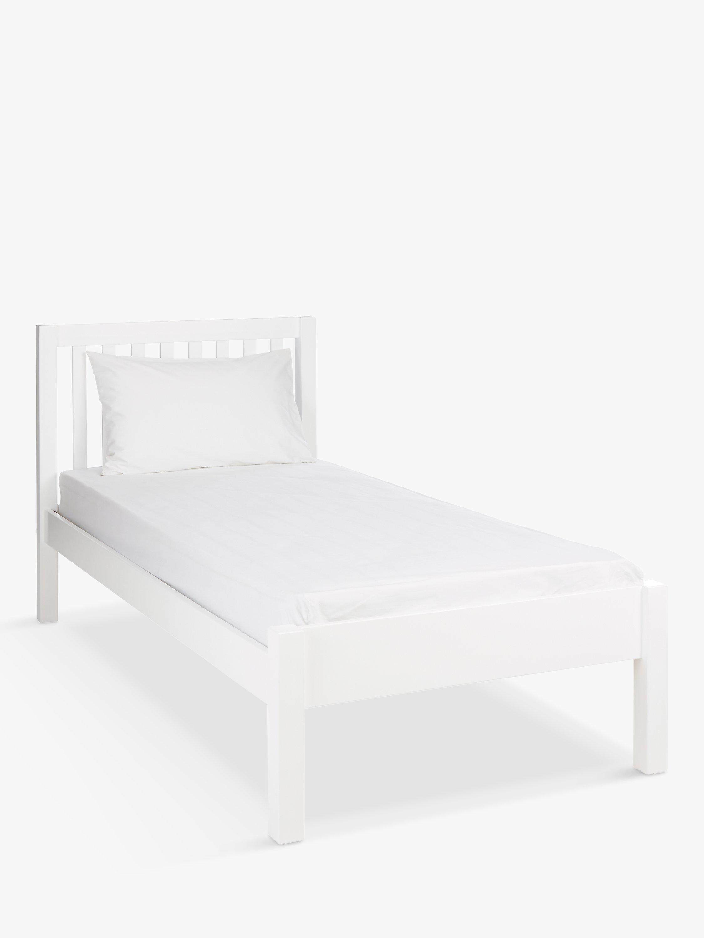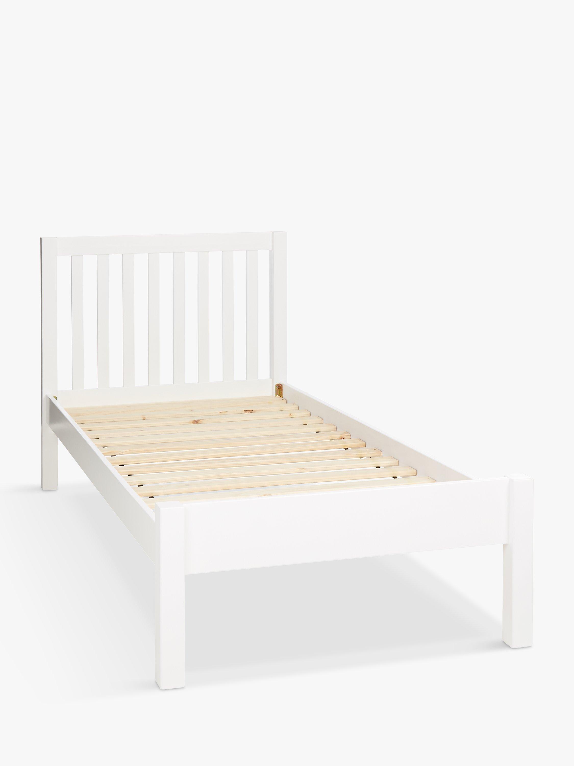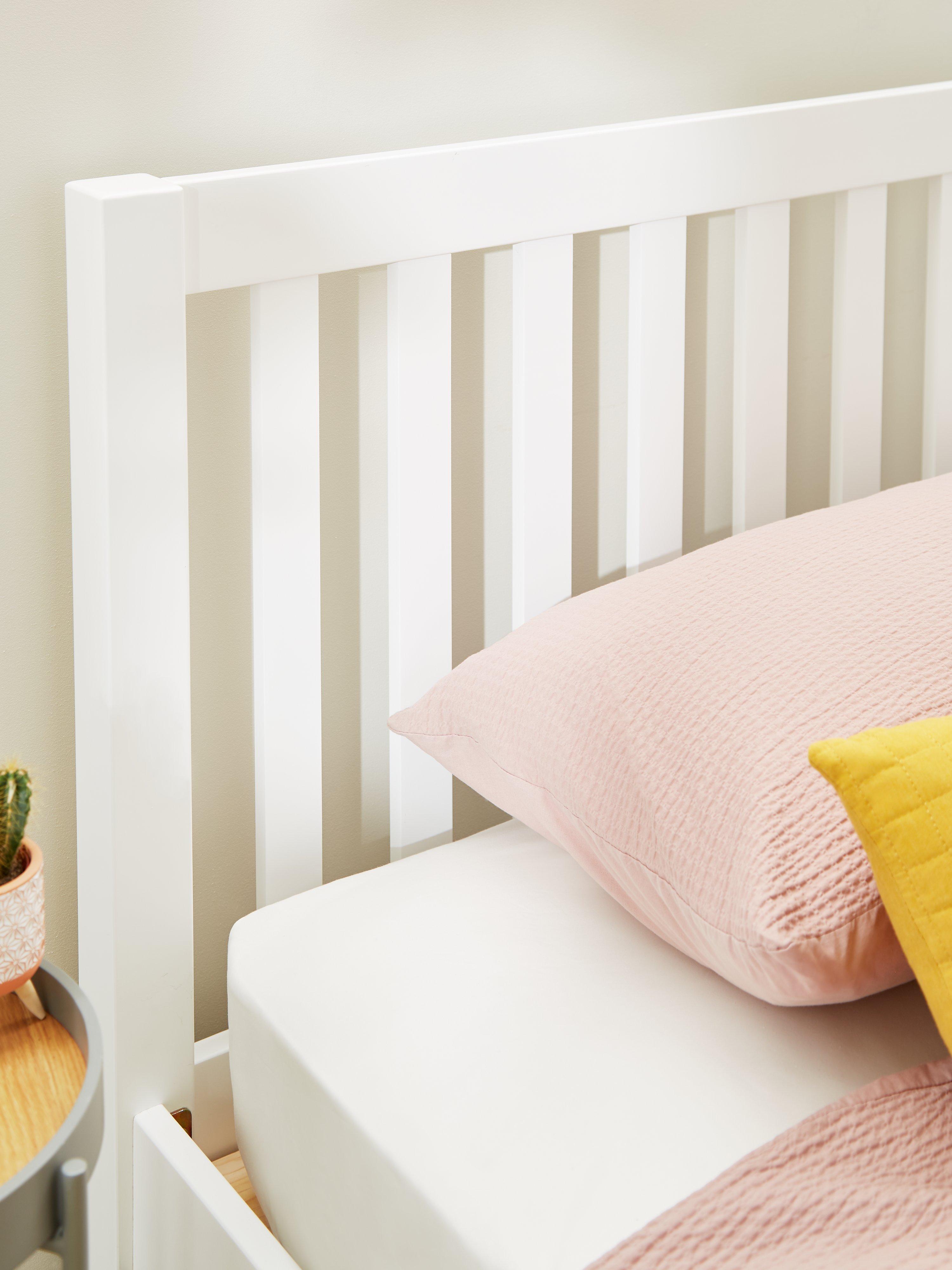 It's easy to assemble this bed frame, which we've made from hard-wearing pine wood. It has a simple, clean-lined design with a slatted headboard, and the solid slats in the base provide a firmer foundation for your mattress. It's available in a painted finish for a more modern look or a natural finish that highlights its authentic wood grains.