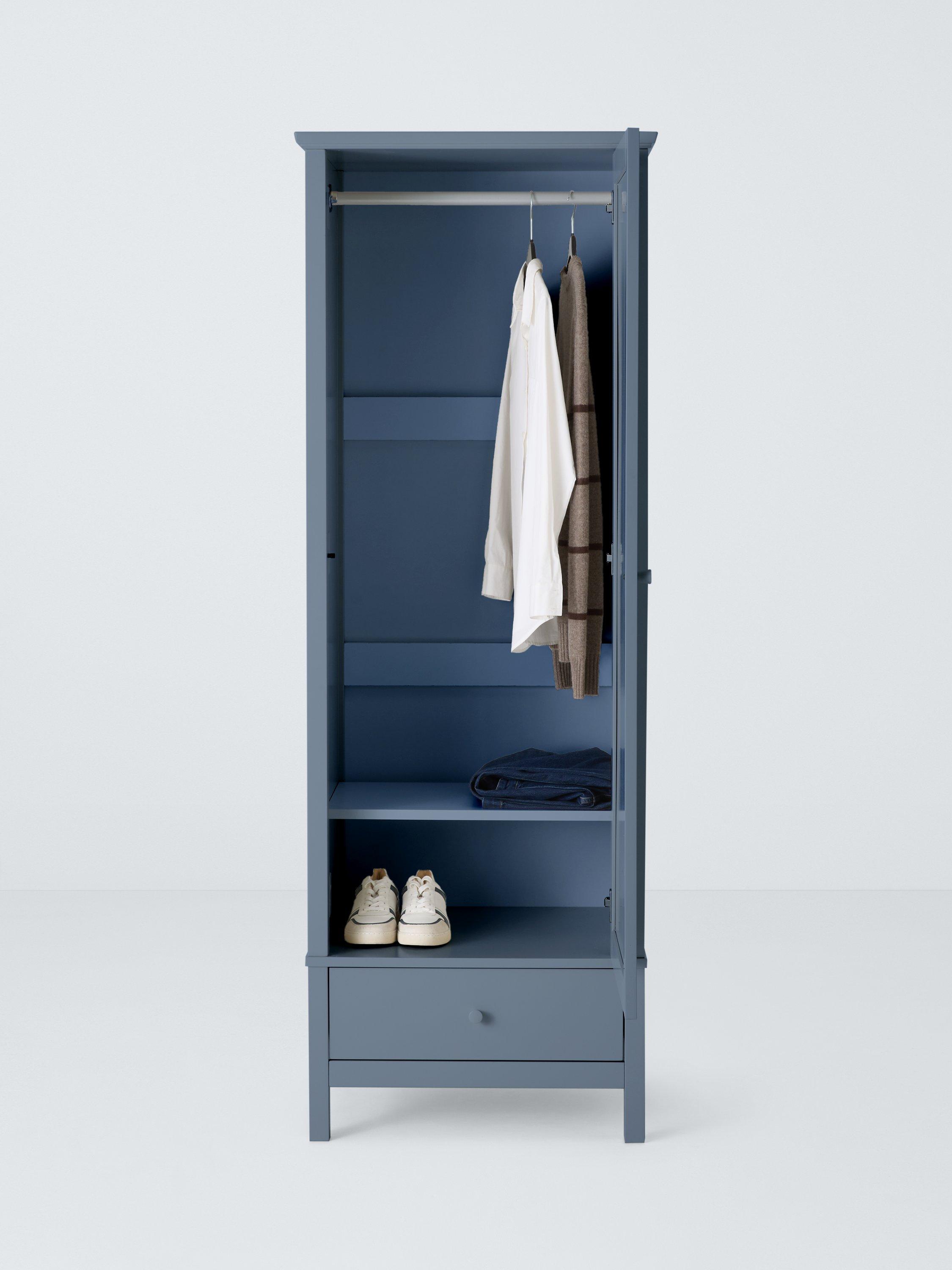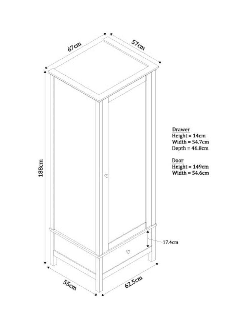 We've made this spacious single wardrobe from a mix of high-quality timbers. There's a metal hanging rail inside and an extra storage drawers beneath the main cupboard section. Well-proportioned for smaller bedrooms.