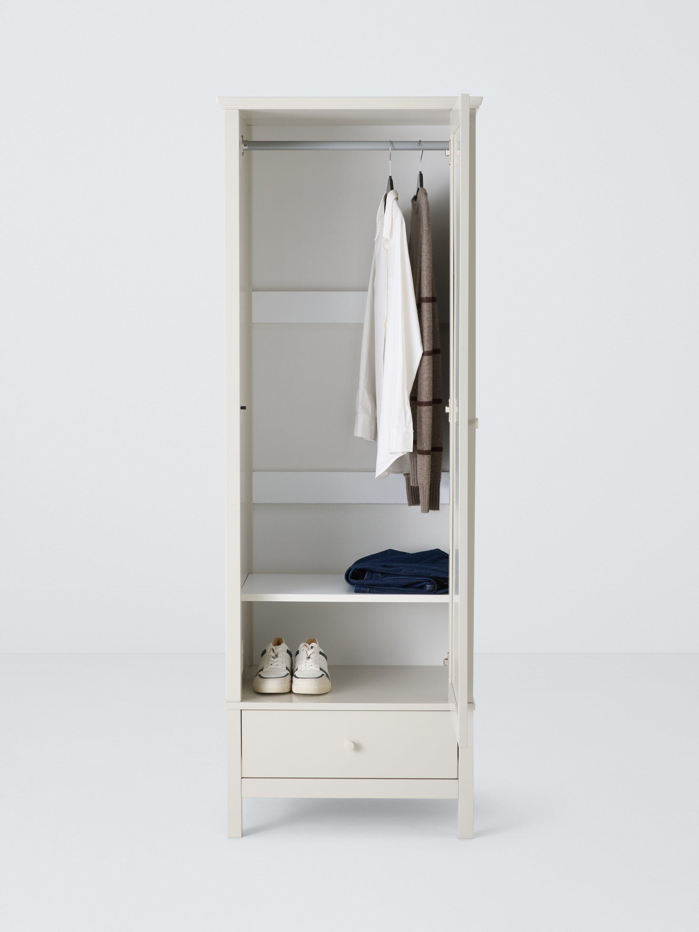 We've made this spacious single wardrobe from a mix of high-quality timbers. There's a metal hanging rail inside and an extra storage drawers beneath the main cupboard section. Well-proportioned for smaller bedrooms.