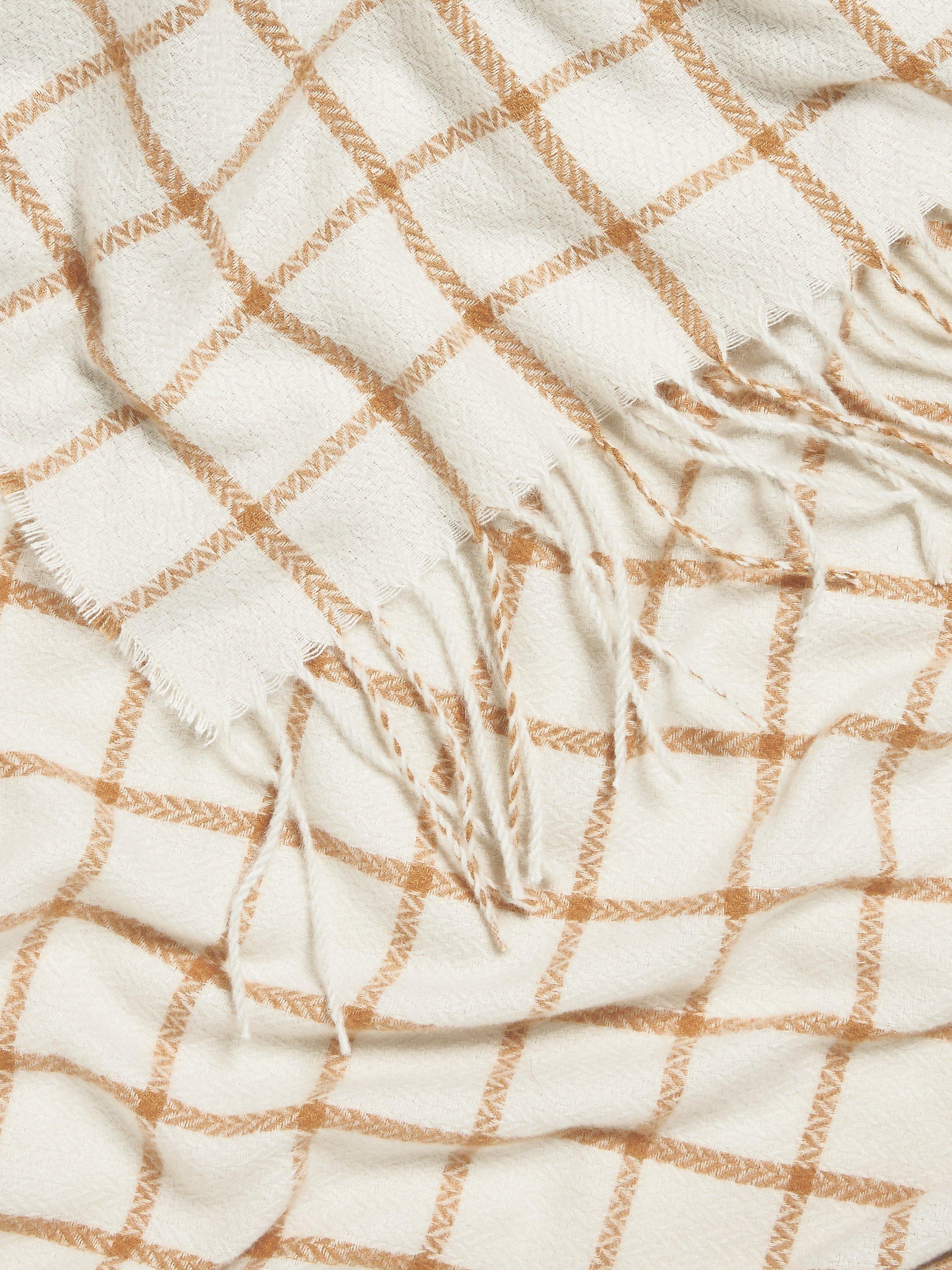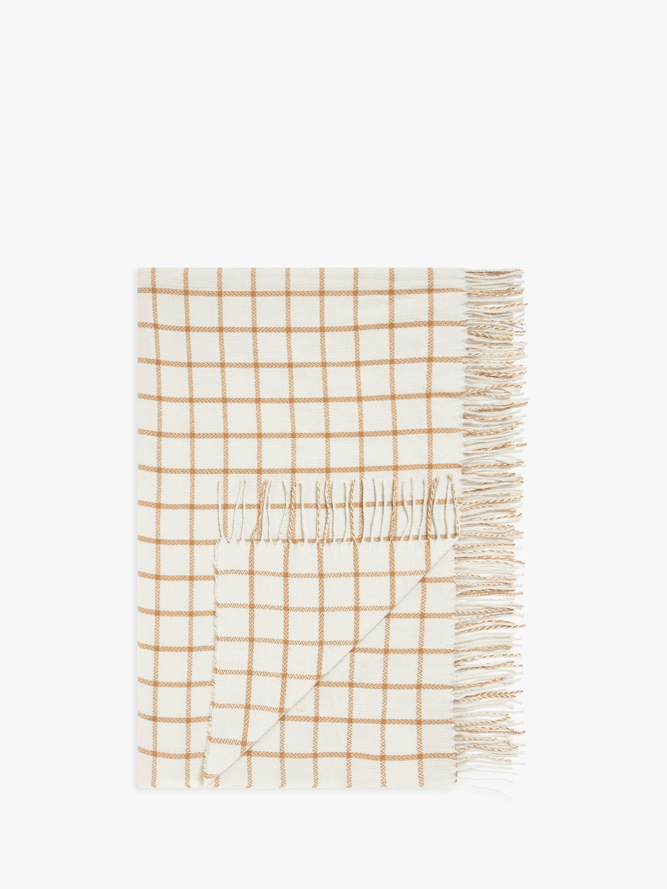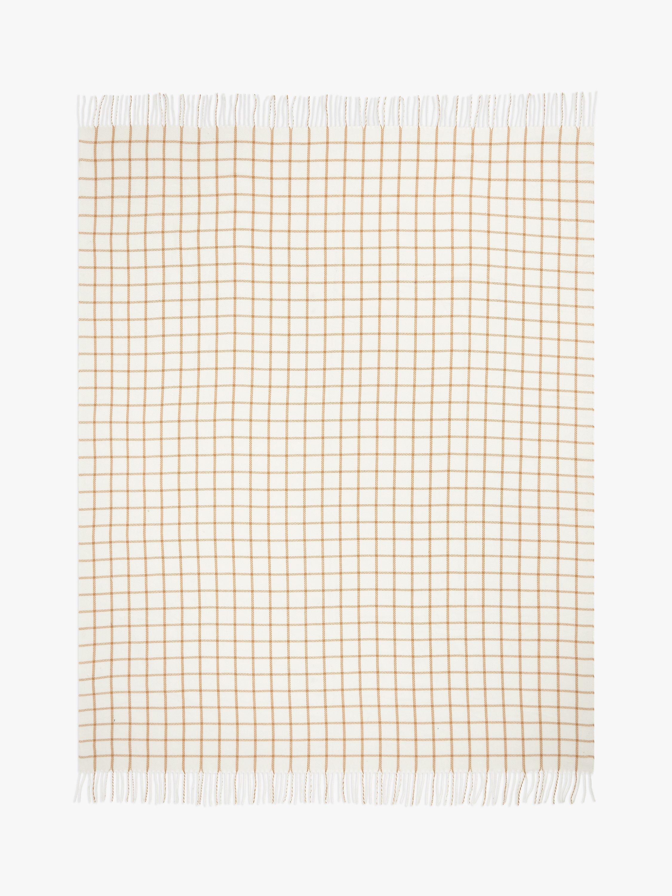 A soft and lightweight throw with a twisted fringe and versatile check pattern.