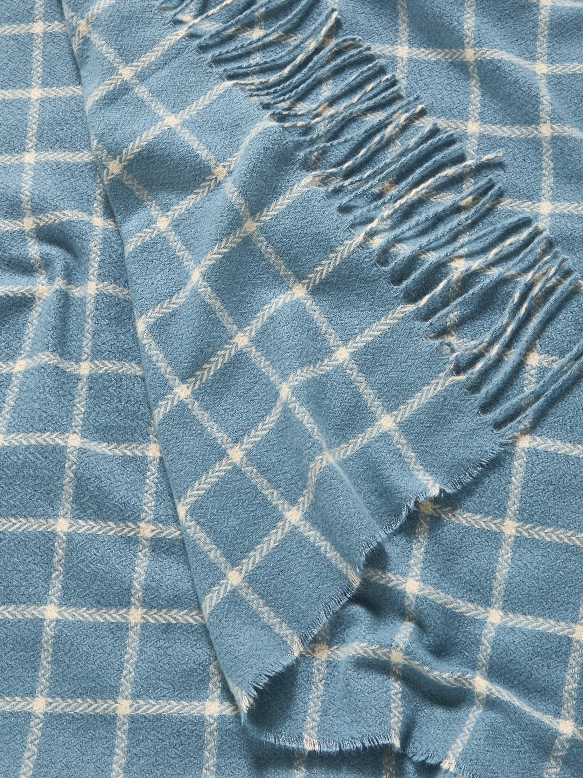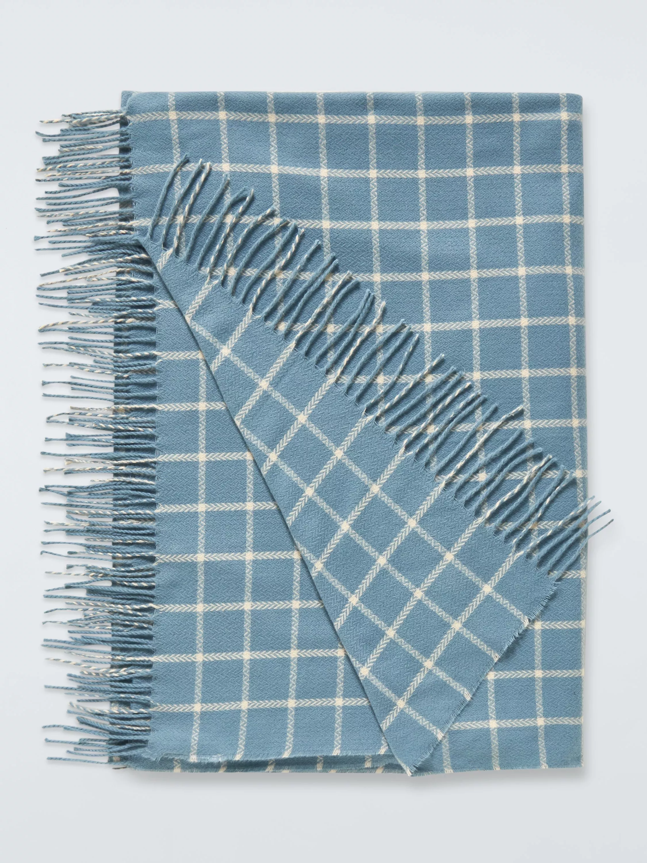 A soft and lightweight throw with a twisted fringe and versatile check pattern.