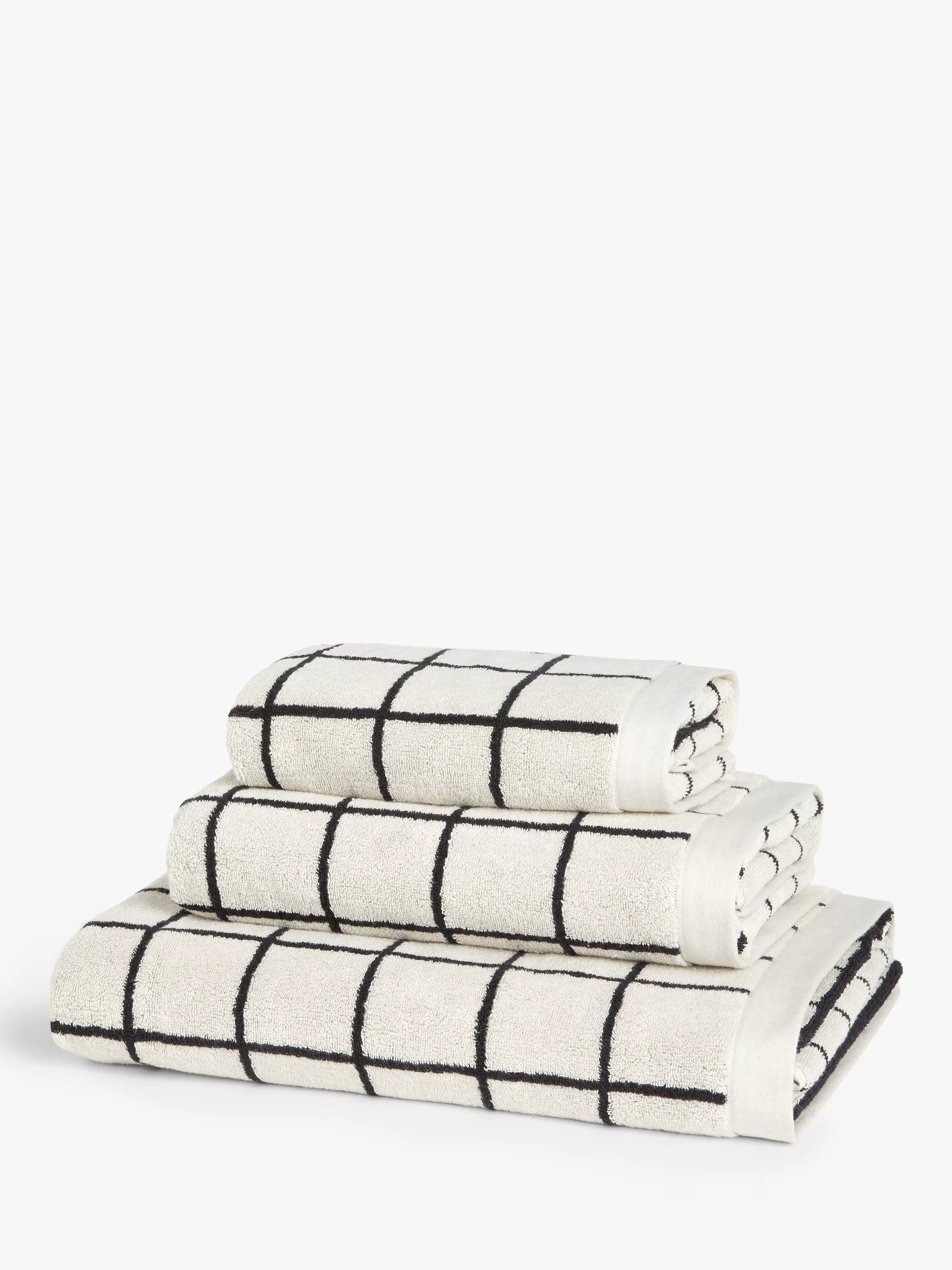 Made from soft cotton these towels have a simple check design like the pattern on a windowpane. Because of how they're woven the towels, are reversible so you choose how much of the colour is on show.
