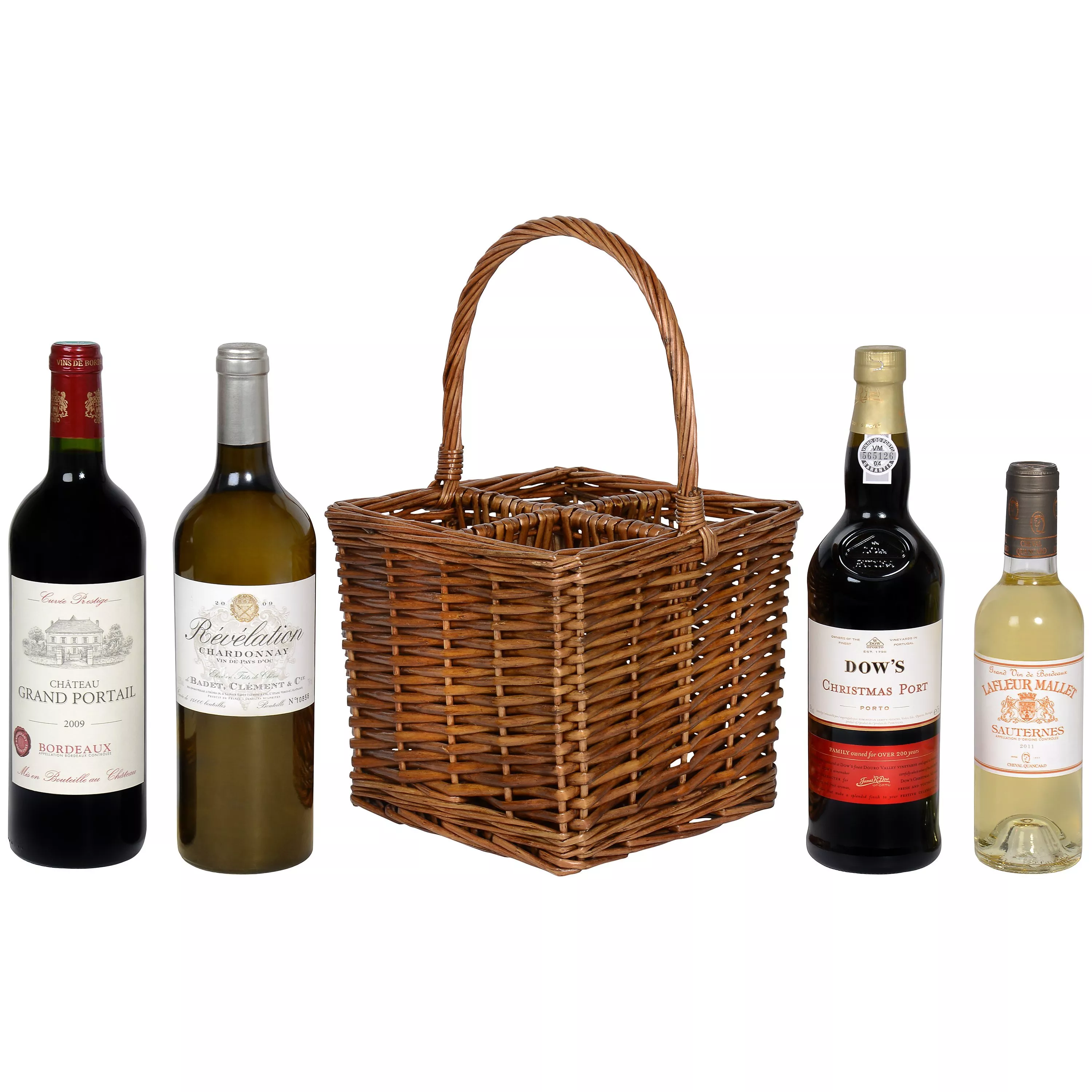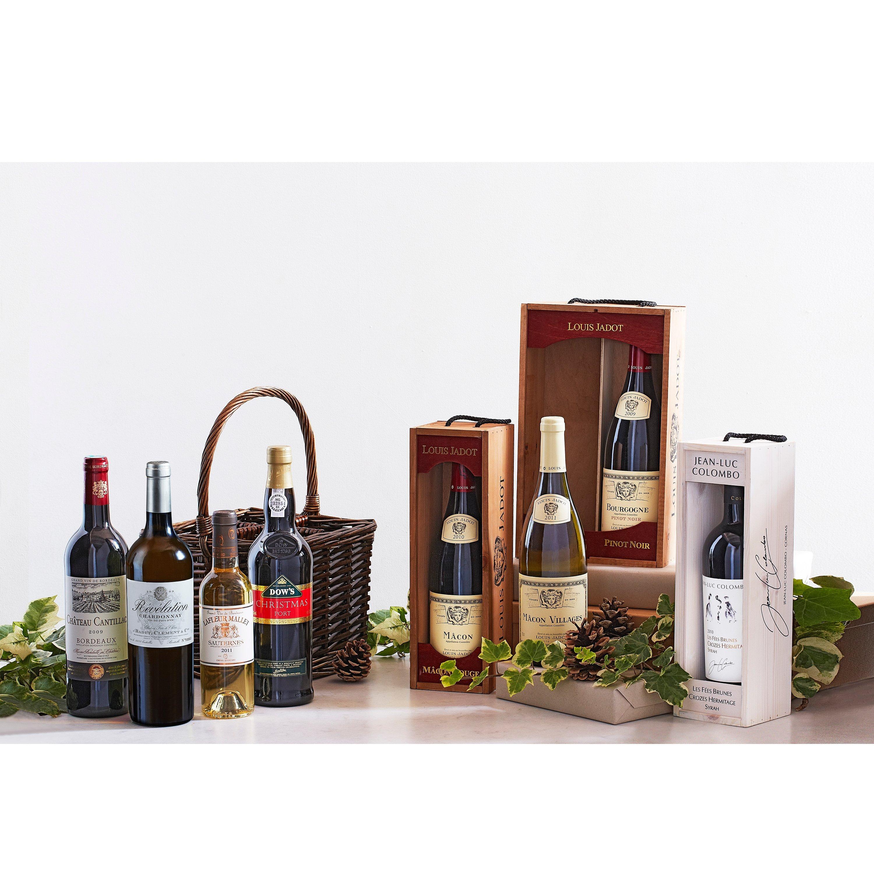 Presented in this wicker basket is a selection of wines that will make a delightful gift for someone special.