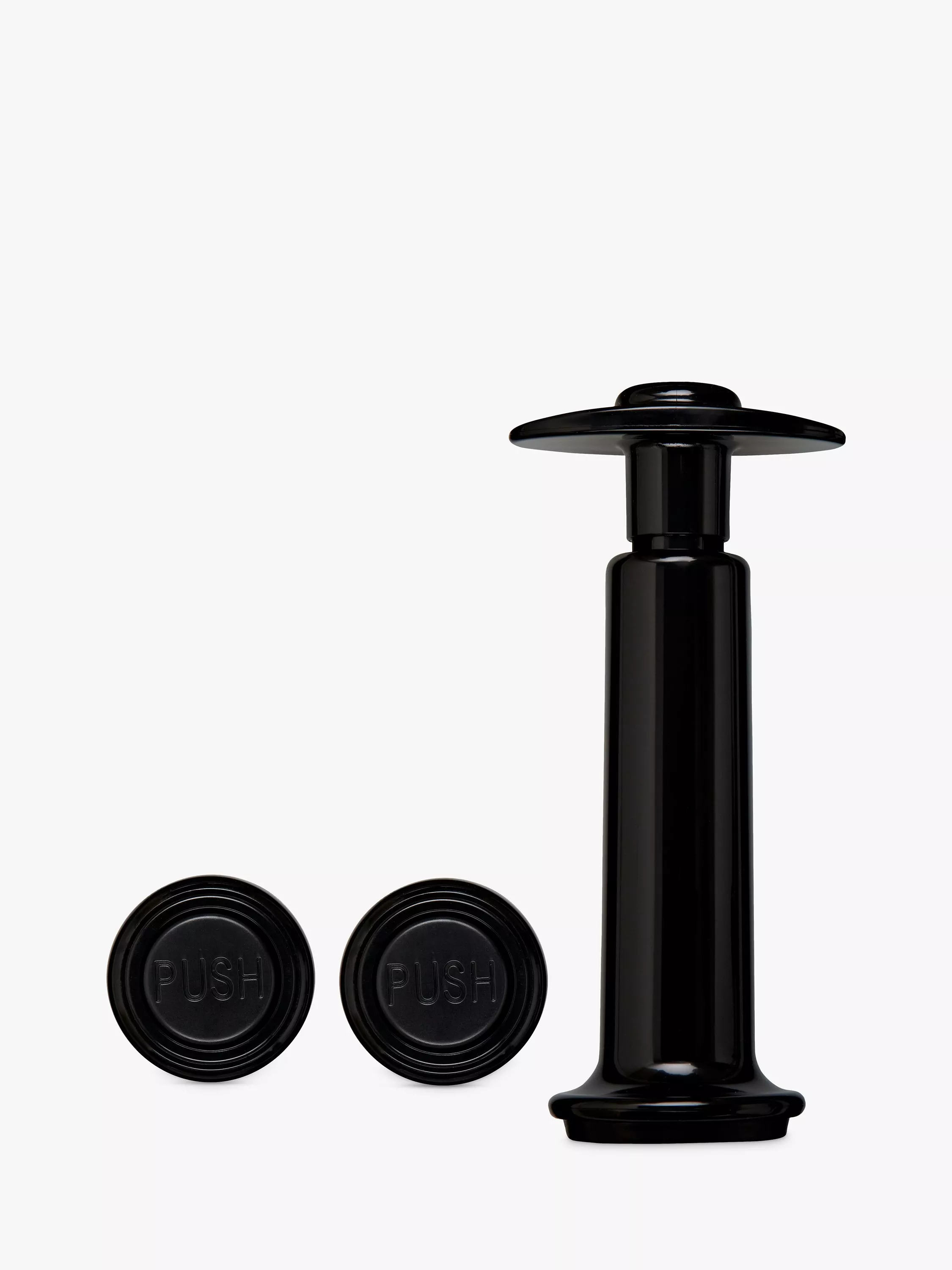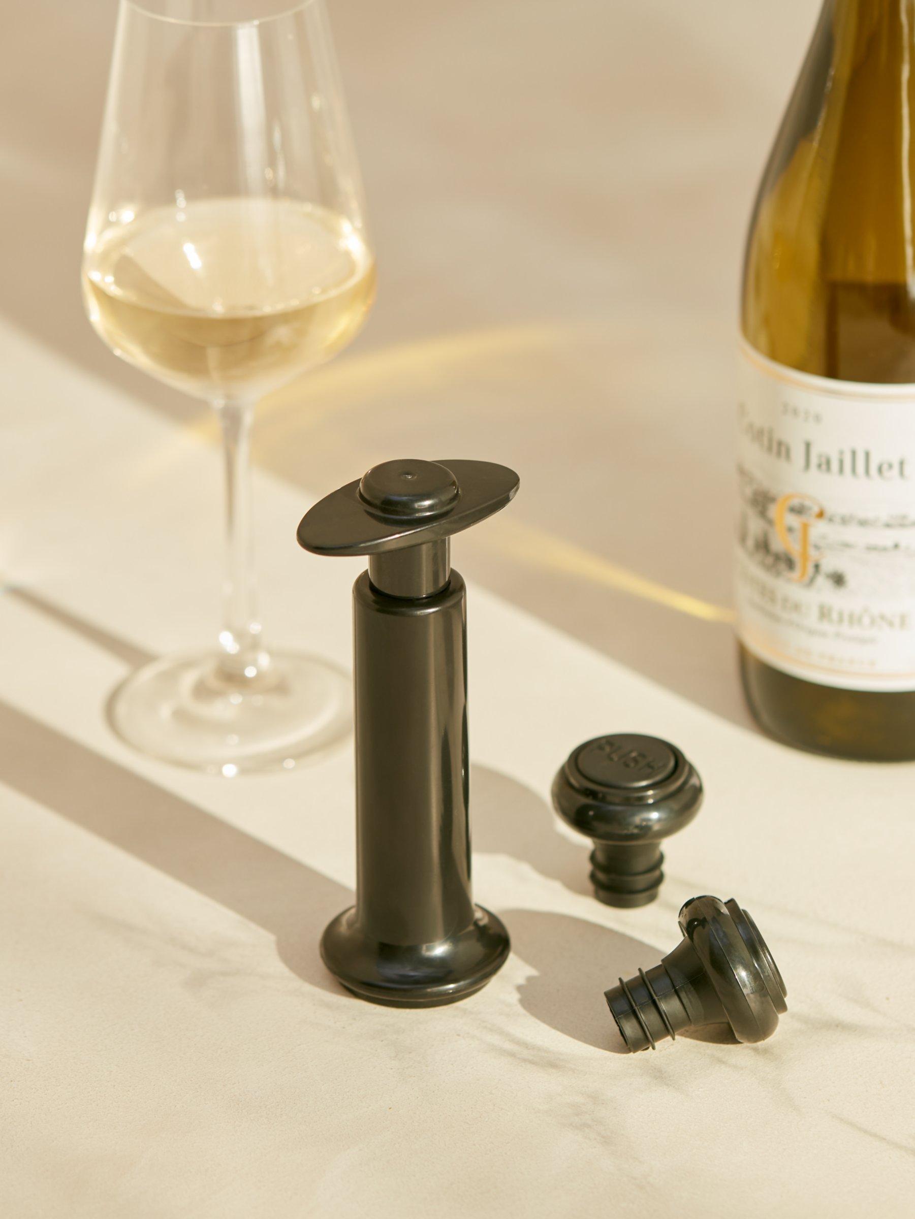 This clever vacuum pump removes air from opened wine bottles, preventing oxygenation and keeping the wine fresher for longer. Comes complete with two reusable plastic bottle stoppers.