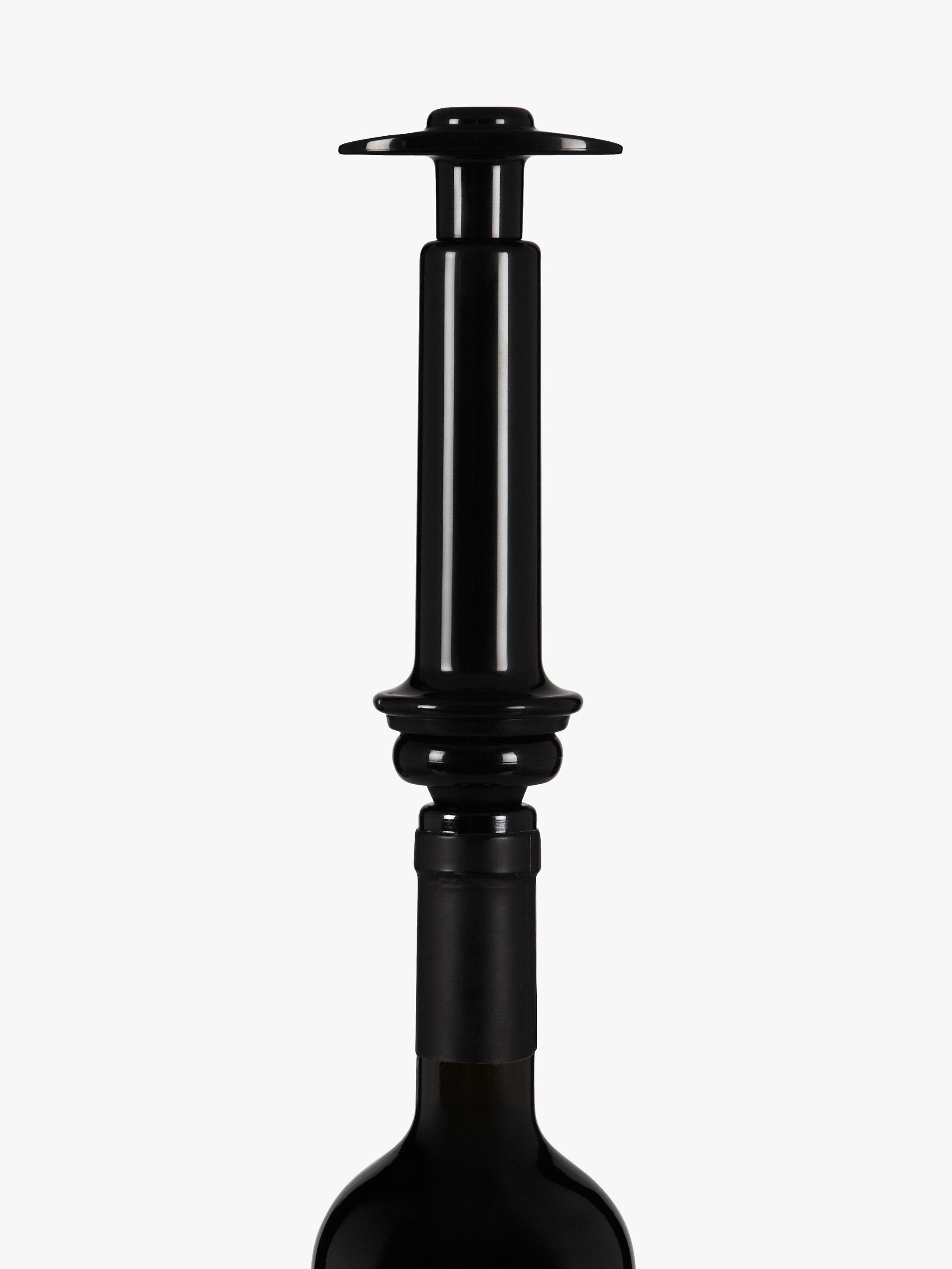 Firmly push a bottle stopper into the top of an open bottle. Place the wine preserver pump on the stopper, holding the pump in place on the bottle, pump the handle up and down until firm resistance is felt. Remove the wine preserver pump leaving the stopper in place. The vacuum created will help to keep the wine fresh. To remove the stopper, press the button on top to release the vacuum. It can also be used as a general bottle stopper. Suitable for use only on glass wine bottles.
