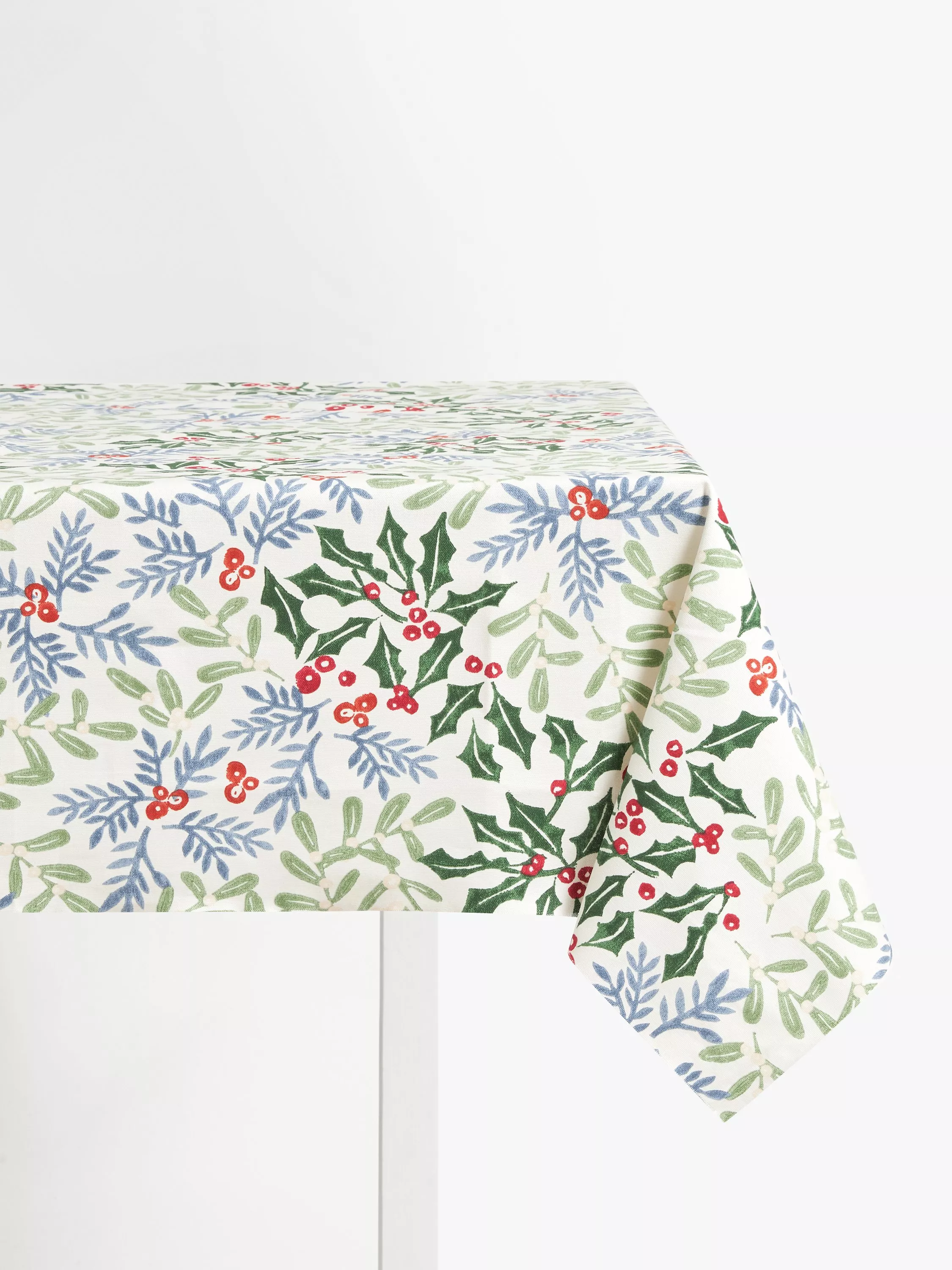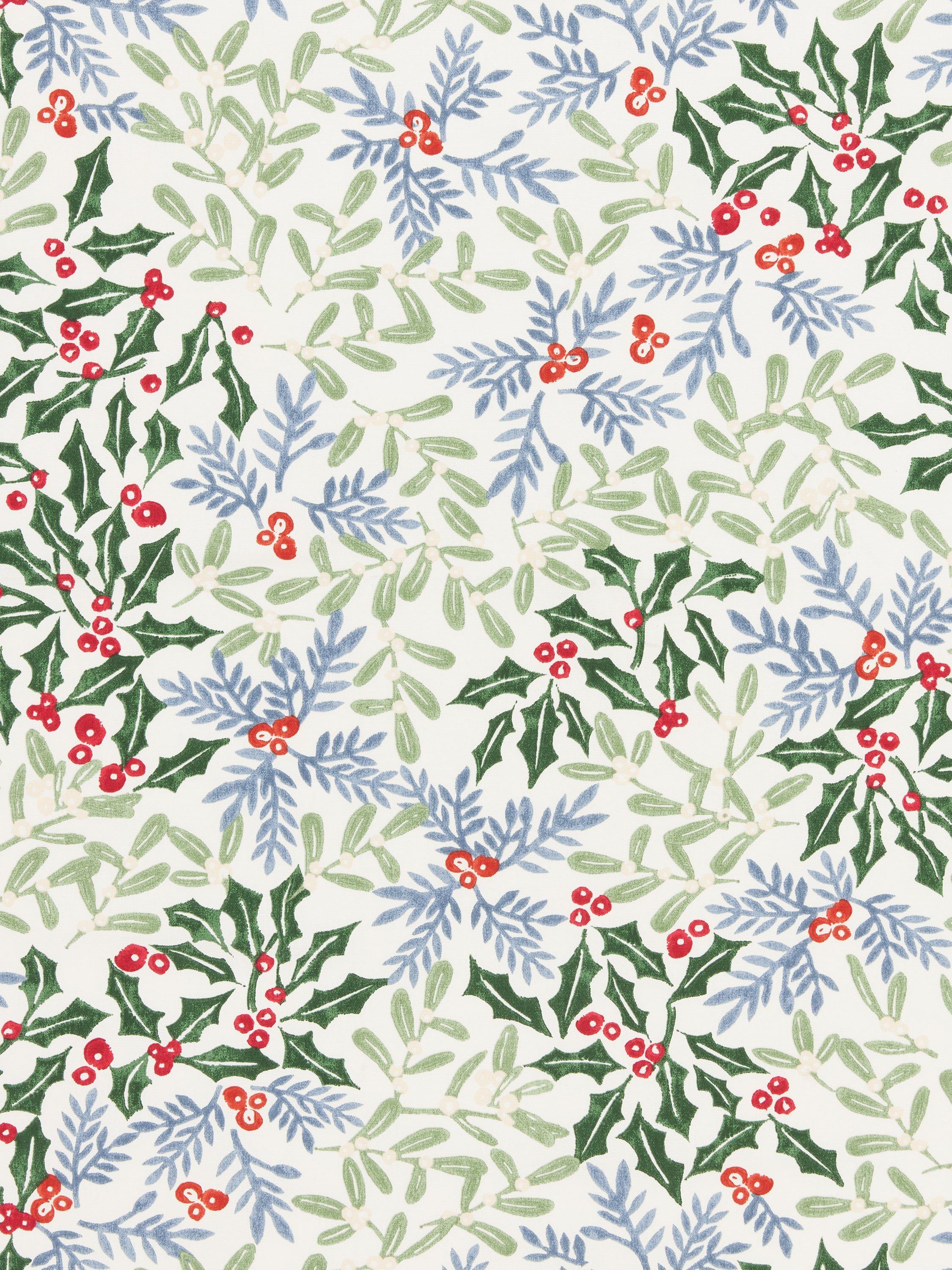 This printed PVC design showcases seasonal holly berries and leaves.