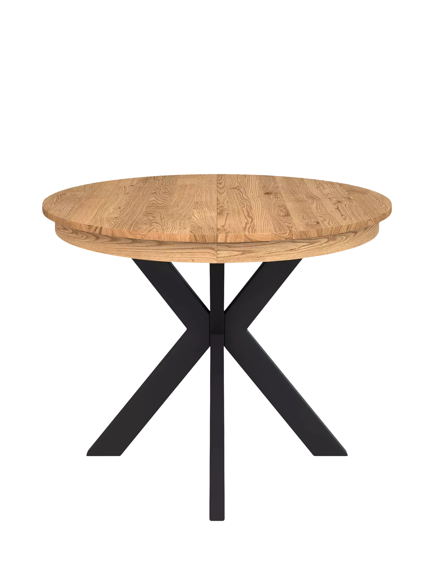 The Woburn table is made of rustic timber, with a straight edge, and features some knots and cracks that come filled with black filler. The base is made of 10 x 4cm metal tube, welded into a cross leg and powder coated.