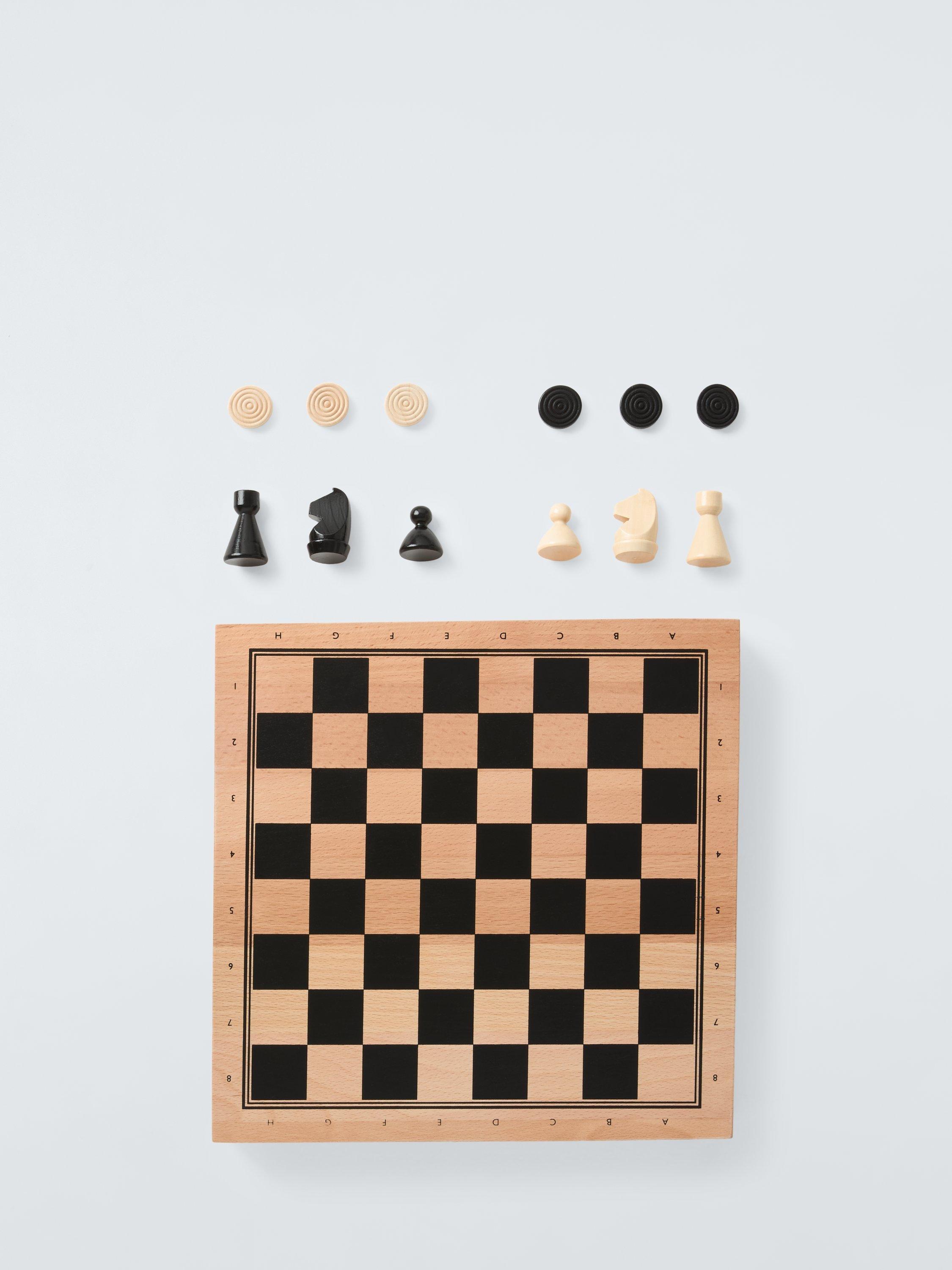 Enjoy a game of draughts or chess with this classic, wooden set.